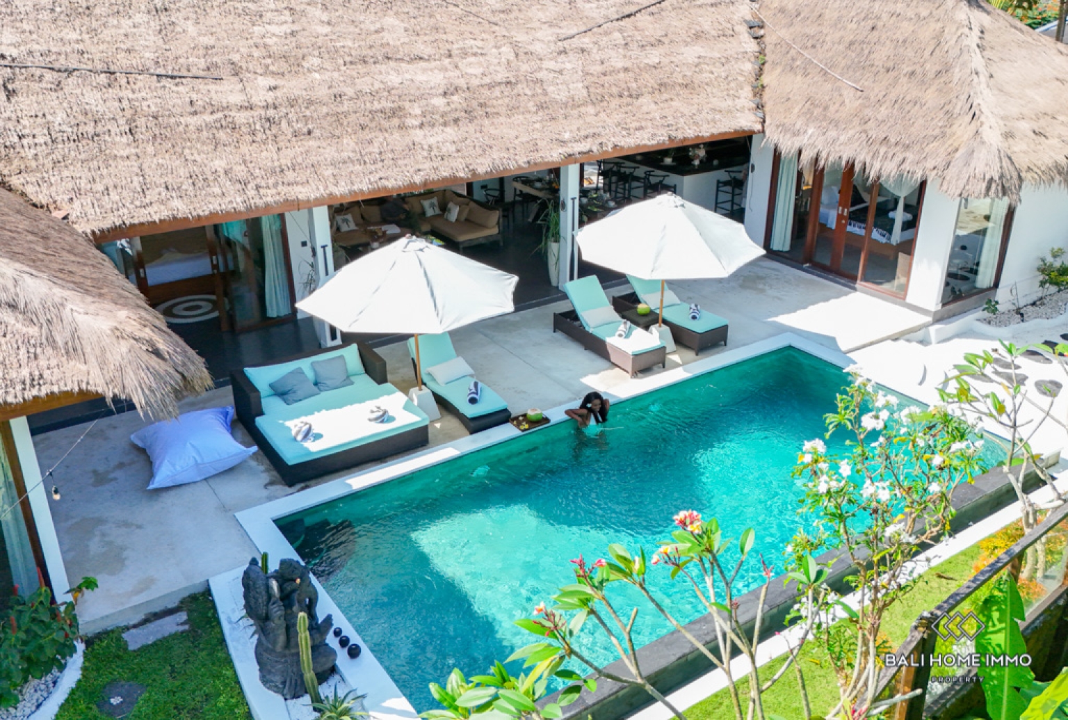The open living and kitchen area seamlessly connects to the lush garden and private swimming pool, creating a bright and airy space ideal for entertaining or family living. Outside, the beautifully landscaped garden includes a cozy sitting area and a hammock overlooking a serene jungle view, perfect for unwinding in complete tranquility. Additional features include an enclosed car park, practical storage space, and a peaceful environment that enhances the villaโs charming appeal, making it an exceptional home for those seeking privacy and convenience in one of Cangguโs most desirable residential locations.