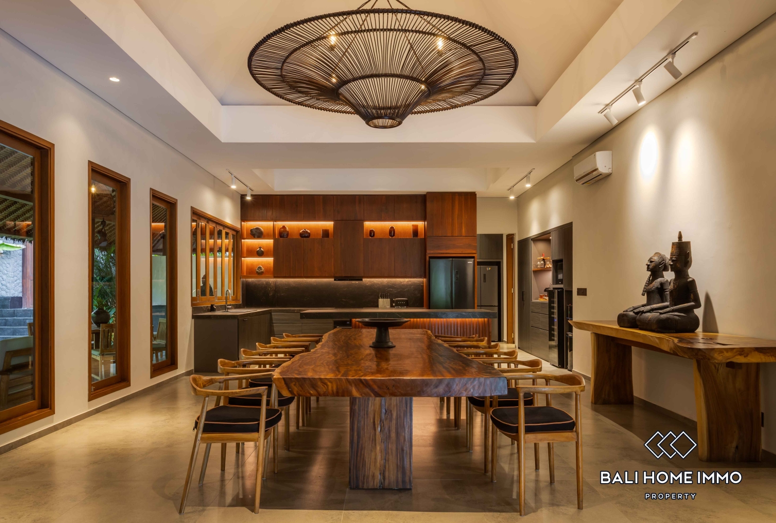 Designed with both elegance and functionality in mind, the villa features six spacious bedrooms, making it ideal for large families or those who enjoy hosting guests. The home includes two distinct living areas, one open concept to embrace Baliโs tropical breeze and one fully enclosed for a cool, comfortable indoor setting. These flexible spaces allow you to enjoy different moods throughout the day, whether relaxing with family or entertaining friends.