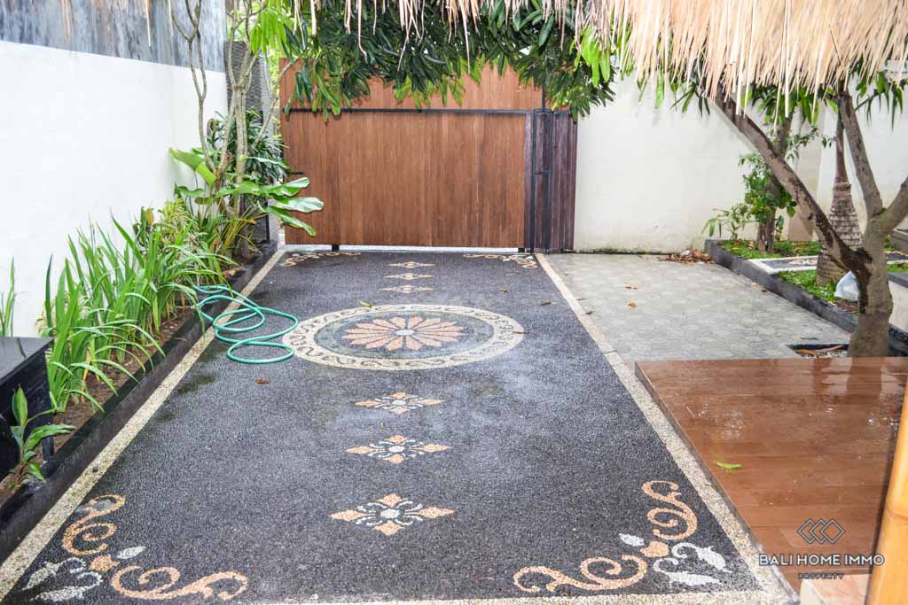 Ideally located in the heart of Kerobokan, you will be only a few minutes drive to Batu Belig Beach and Berawa Beach and ten minutes drive to many international schools like Australian International school. On the ground floor of this one level property, there is a spacious dining room, a bright living room and a modern kitchen where you can cook something to eat if you receive some guests or for your family. On the first floor, there are two bedrooms and two bathrooms for more convenience. Outside you can enjoy an impressive swimming pool which invites you to cool off after an eventful day in the Island of Gods.ย