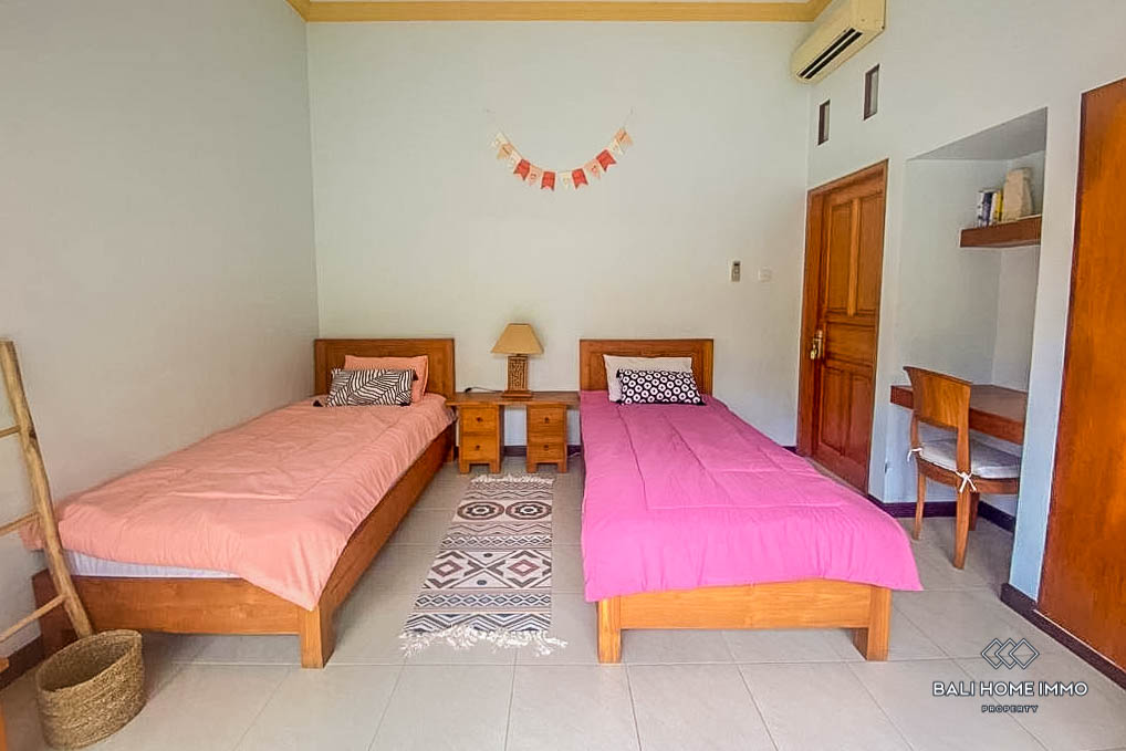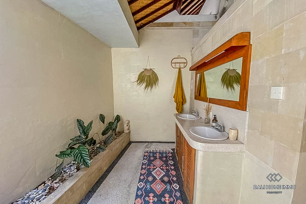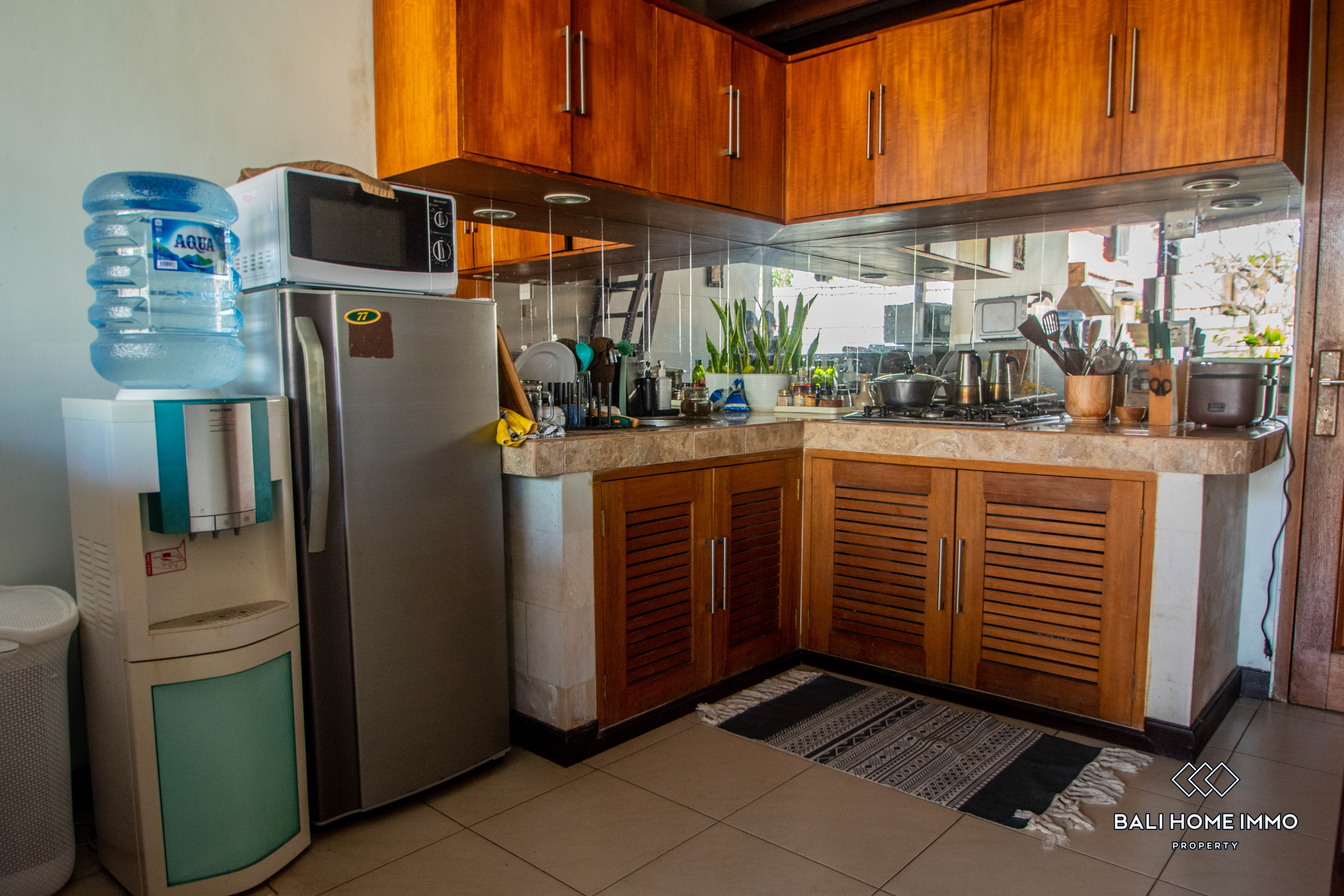 Constructed in 2008, the property showcases a contemporary design aesthetic, with an open living room providing a seamless transition between indoor and outdoor spaces. Featuring two ensuite bathrooms, residents can indulge in privacy and luxury amidst the tranquil surroundings of Kerobokan.