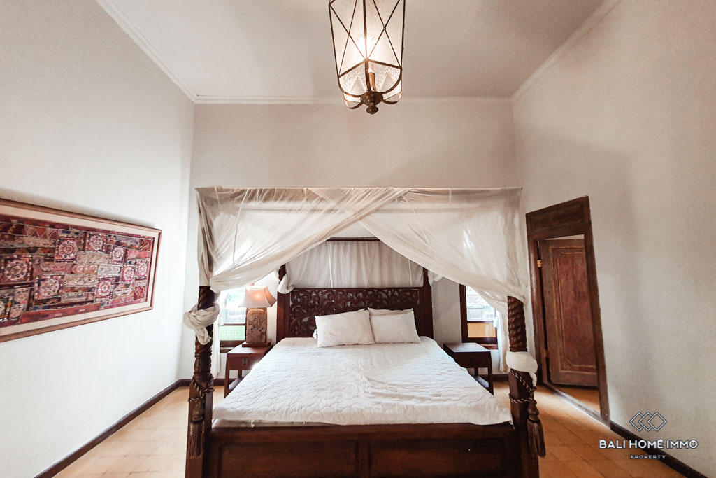 This beautiful villa offers a breathtaking view of the river and jungle. It has two fish ponds at the entrance, a security post which can be turned into a maid room or storage, and a big swimming pool. It’s available for yearly rental. This villa is located in Pererenan, which is a quiet & peaceful area yet only 10 minutes drive to the beach.