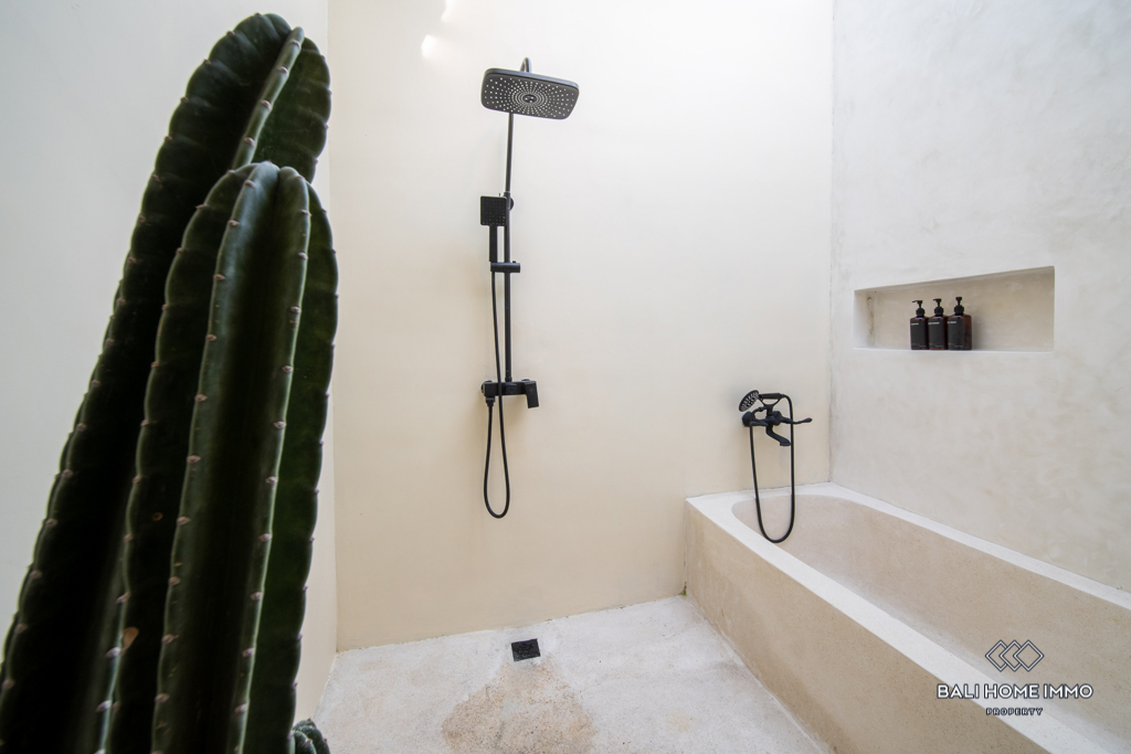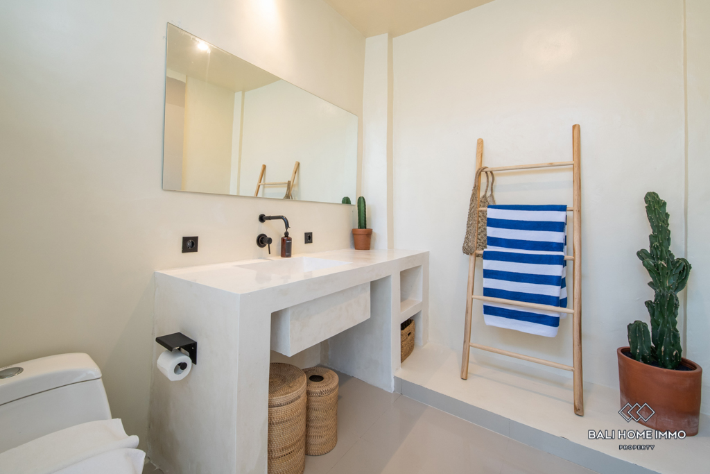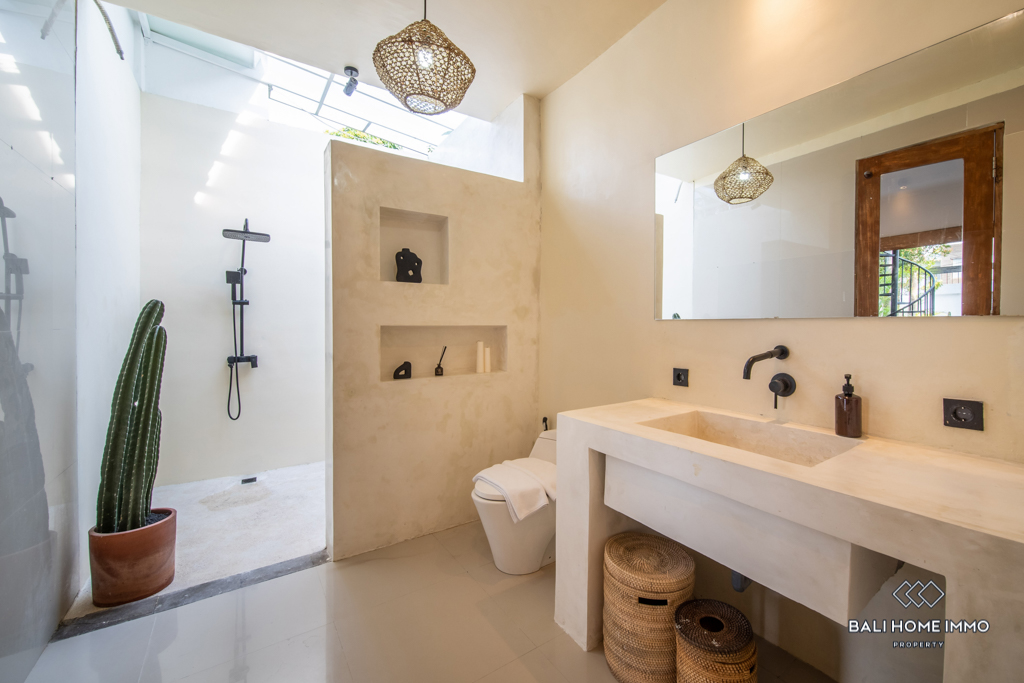 This stunning modern villa is located in the highly sought-after residential area of Pererenan. Situated just a 13-minute drive away from the bustling center of Canggu, this villa offers the perfect balance of tranquil living and convenience, surrounded by a wealth of amenities. Spread across 2 levels, this beautifully designed villa spans 110 square meters of building space, sitting on a generous plot of 190 square meters of land.