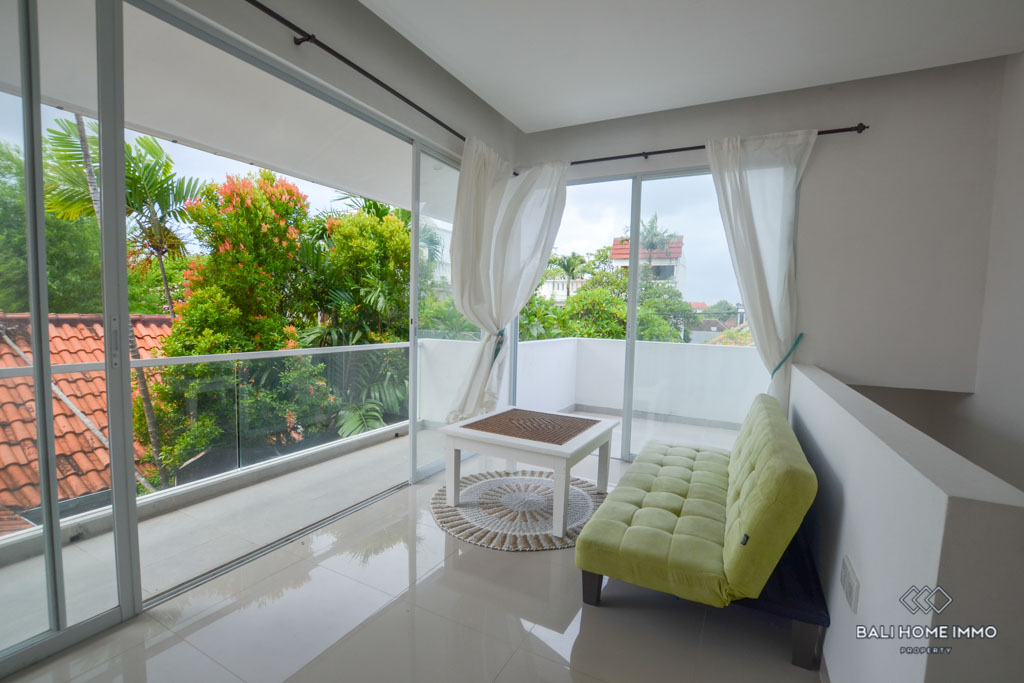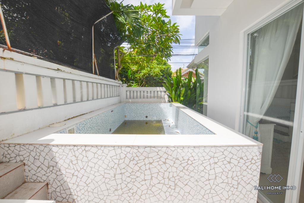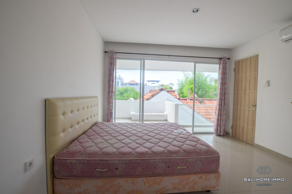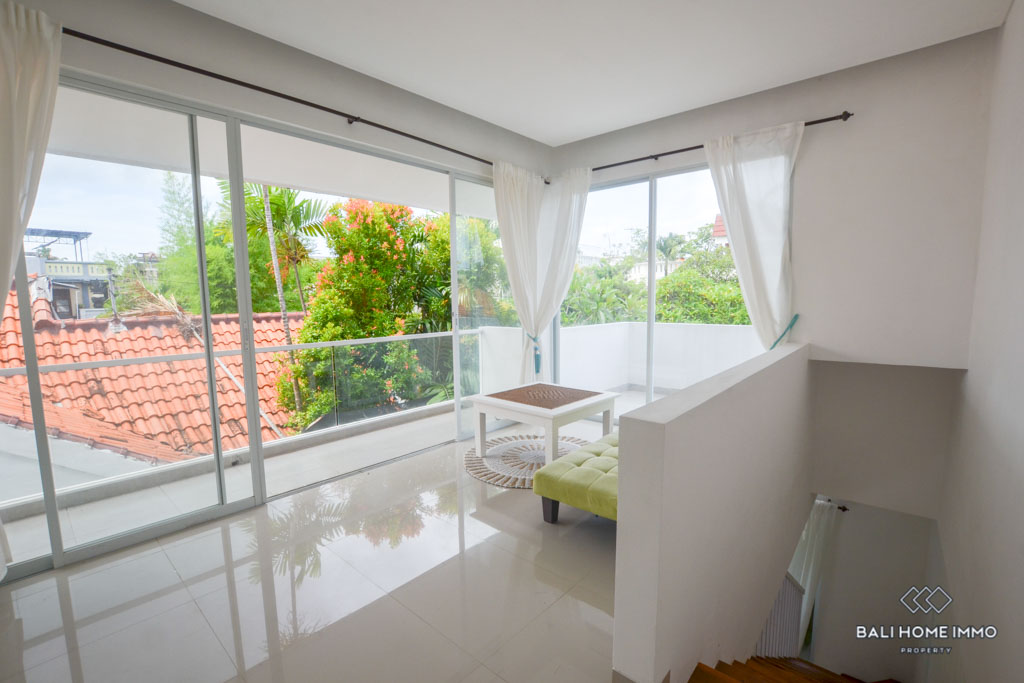 This is a 3 Bedroom Villa located in Petitenget. The villa has an enclosed living room and kitchen. There is one bedroom downstairs, and two bedrooms with a shared bathroom on the second floor. In the outside parts, there is a private swimming pool and a balcony which you can relax and enjoy the day with your favorite wine since the location is in the quiet gang, and surrounded by nice restaurants and famous night clubs around. It takes only 5 minutes to Seminyak area and 10 minutes to Berawa area.ย