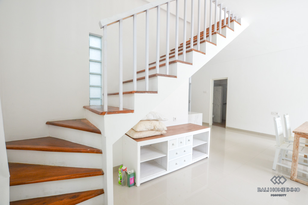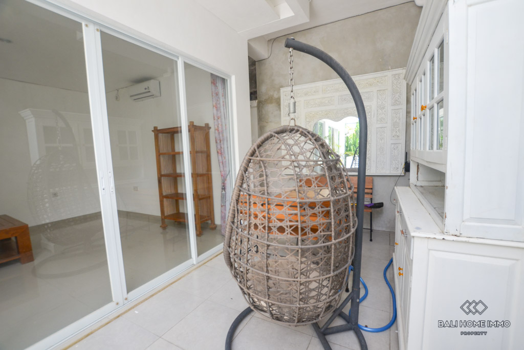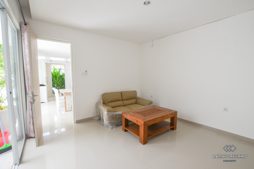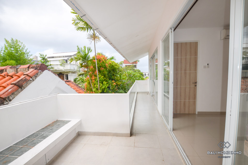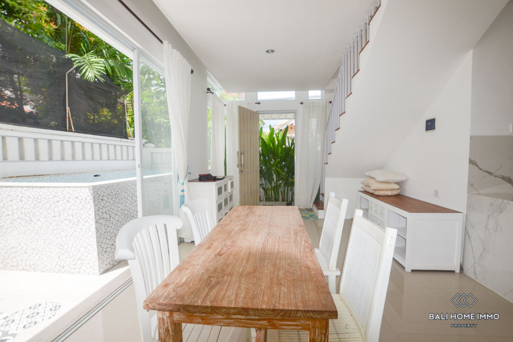 This is a 3 Bedroom Villa located in Petitenget. The villa has an enclosed living room and kitchen. There is one bedroom downstairs, and two bedrooms with a shared bathroom on the second floor. In the outside parts, there is a private swimming pool and a balcony which you can relax and enjoy the day with your favorite wine since the location is in the quiet gang, and surrounded by nice restaurants and famous night clubs around. It takes only 5 minutes to Seminyak area and 10 minutes to Berawa area.ย