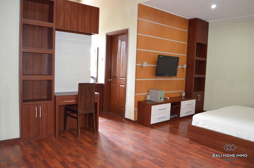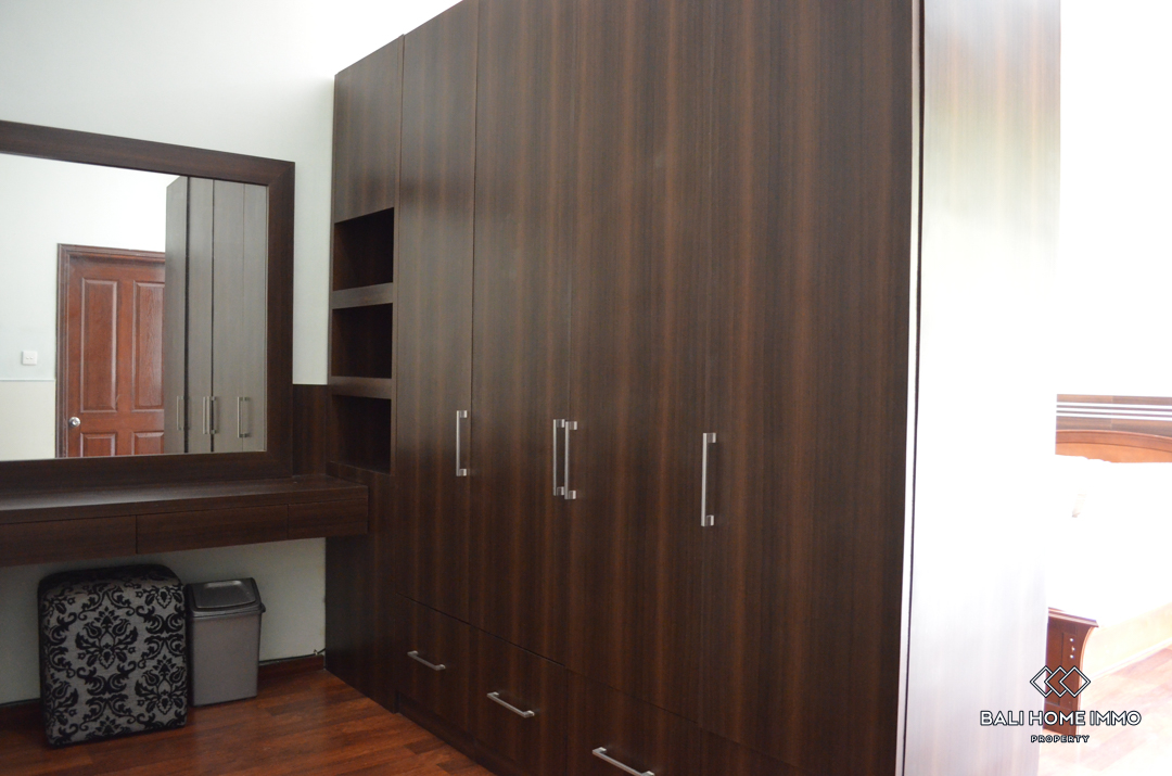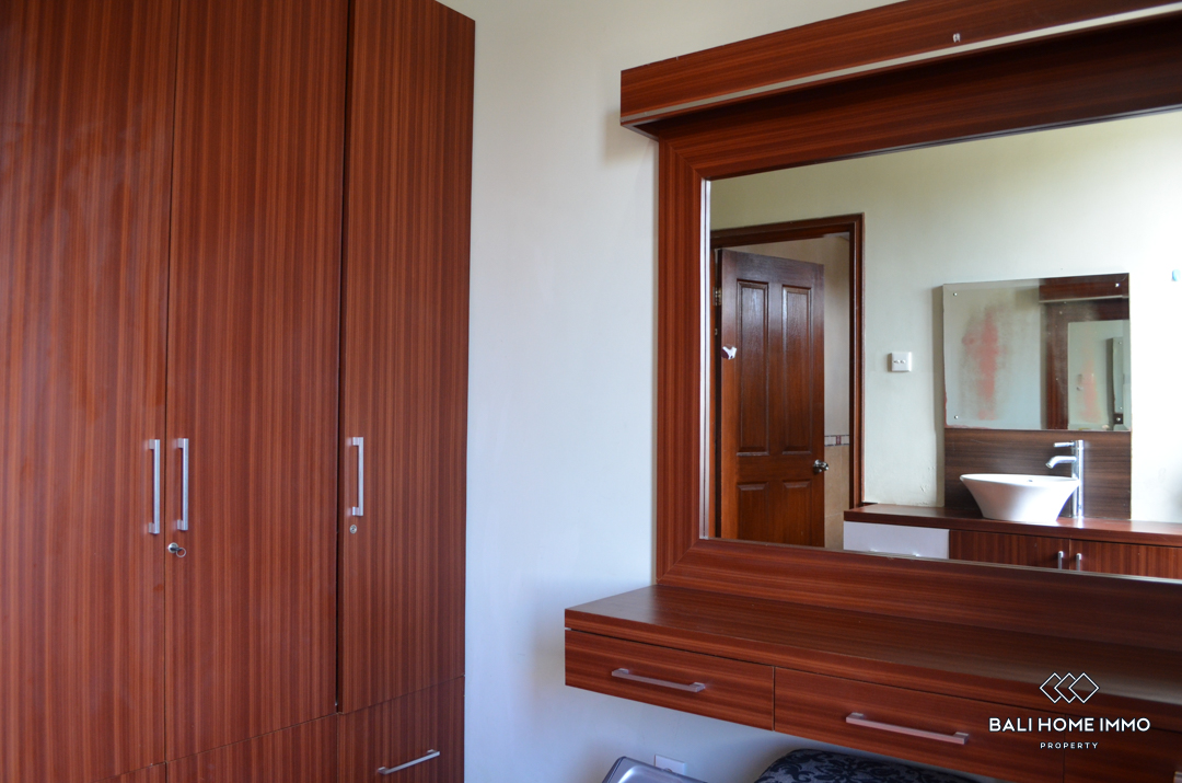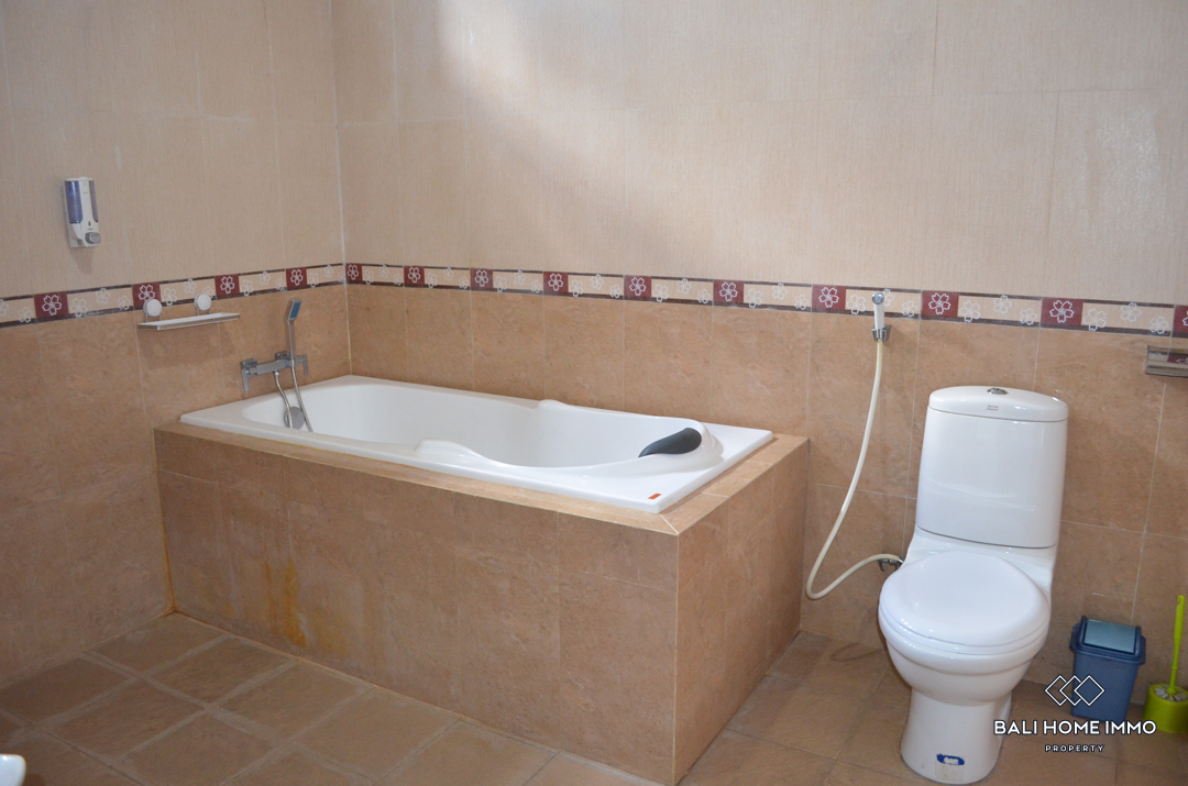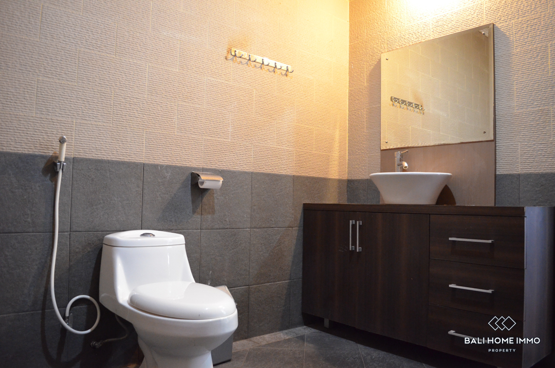 The villa is composed of 2 floors of 180m2, fully furnished with tasteful furniture in a modern style. The living area is open on the outside to enjoy the sweet atmosphere of Bali. 2 huge bedrooms have their en-suite bathroom with bathtub and 2 large dressings. An extra room is available in the property.