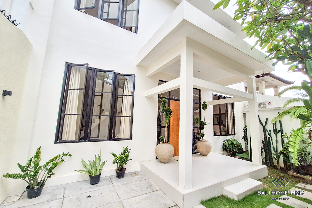 Outside, a charming mini garden adds a touch of greenery to the sleek, modern faรงade. The villaโs prime location in Umalas places you just minutes away from Cangguโs vibrant cafes, fine dining restaurants, and world-class beaches. It is also conveniently located near top international schools, making it an ideal home for families. Whether you're looking for a peaceful home, a holiday retreat, or a smart rental investment, this villa is an exceptional choice. ย