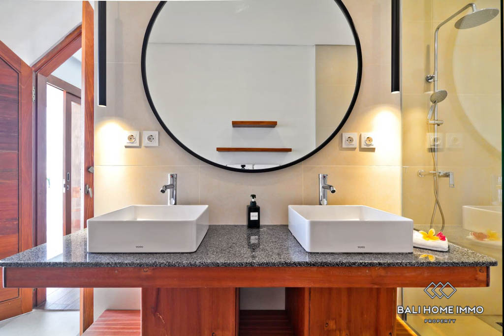 Outside, the villa boasts a private swimming pool paired with a neat outdoor area, ideal for enjoying Baliโs tropical climate in complete privacy. Located in the peaceful yet strategic neighborhood of Umalas, the property is close to cafรฉs, restaurants, international schools, and easy access to both Seminyak and Canggu. This villa offers the perfect blend of comfort, convenience, and tranquility, making it an excellent choice for anyone seeking a quality home in Umalas.