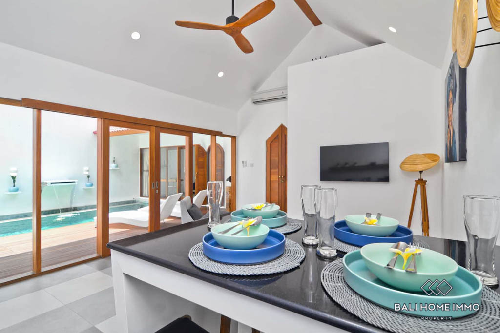 This cozy 2-bedroom villa for rent in Umalas offers a comfortable and stylish home in one of Baliโs most popular residential areas. Fully furnished and move-in ready, the villa features an enclosed living room that provides a cool, private space perfect for relaxing or entertaining. The modern kitchen, spacious bedrooms, and well-designed layout create a warm and inviting atmosphere suitable for couples, small families, or long-term residents.