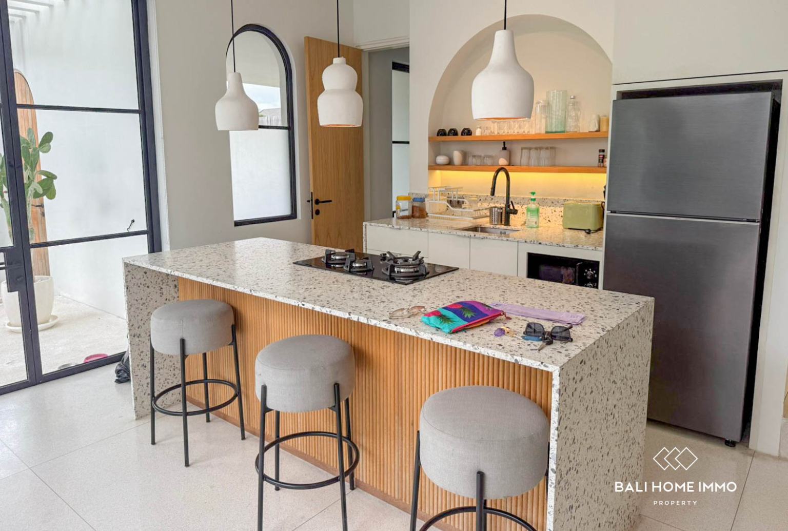 This modern three-bedroom villa in Umalas offers the perfect balance of comfort, style, and convenience. Ideally located just 15 minutes from the beach, the villa sits within a secure residential area surrounded by trendy cafรฉs, restaurants, and fitness centersโmaking it an excellent choice for those who value both tranquility and accessibility. Umalas is known for its peaceful environment while remaining close to vibrant neighborhoods like Canggu and Seminyak, allowing you to enjoy the best of both worlds.