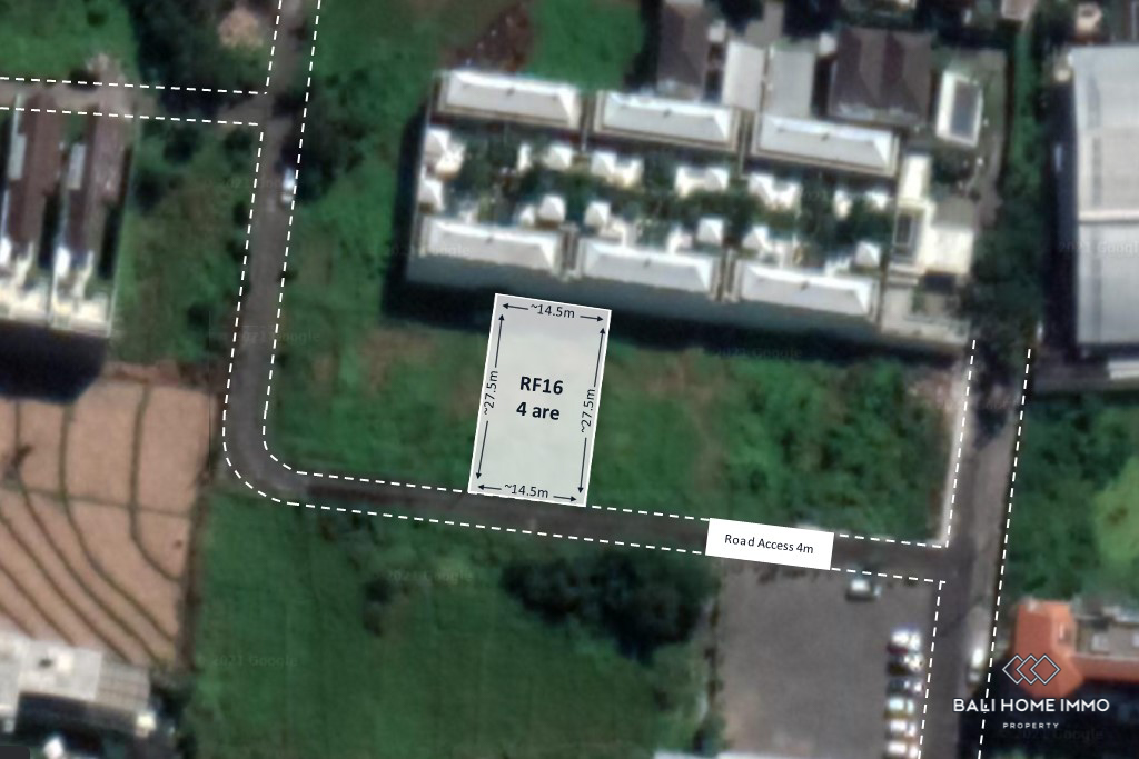 This plot of land is within walking distance from Finns Recreation Club, Canggu Square, and Tamora Square which makes it a prime lot to build a private residence or develop an investment. The lot is in the front of a 4-meter wide asphalt road leading to Jalan Pantai Berawa and surrounded by vacant lots on either side, ensuring quick and convenient access. The land itself requires minimal cleaning as it is mostly covered by wild grass and a few shrubs. You can find a bank, a grocery store, a Starbucks, and various restaurants all within 250 meters from the land.