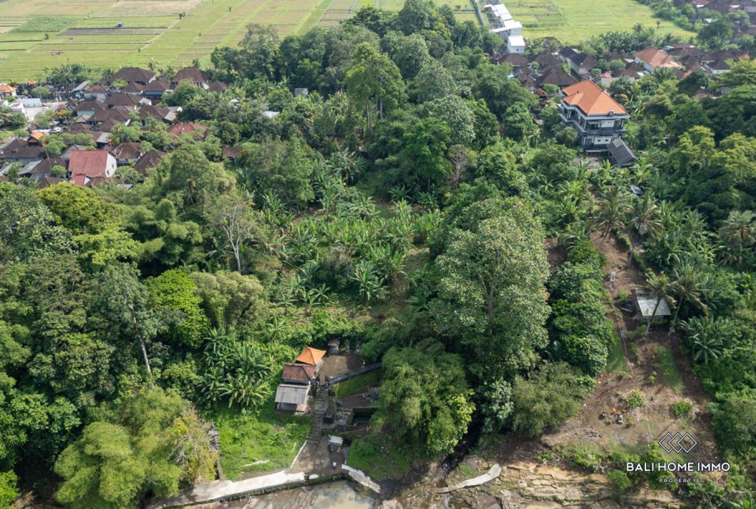 This uniquely shaped plot sits adjacent to a traditional temple and borders a small river, creating a truly distinctive landscape and spiritual ambiance that’s hard to find elsewhere. The land benefits from a 3-meter-wide road access, making it easy for construction and daily transport. It is relatively flat, with an open view over the tropical greenery — ideal for developing a villa or a small wellness retreat that embraces nature and privacy. The peaceful local neighborhood adds to its charm, offering a genuine Balinese village atmosphere that complements the site’s scenic beauty.
