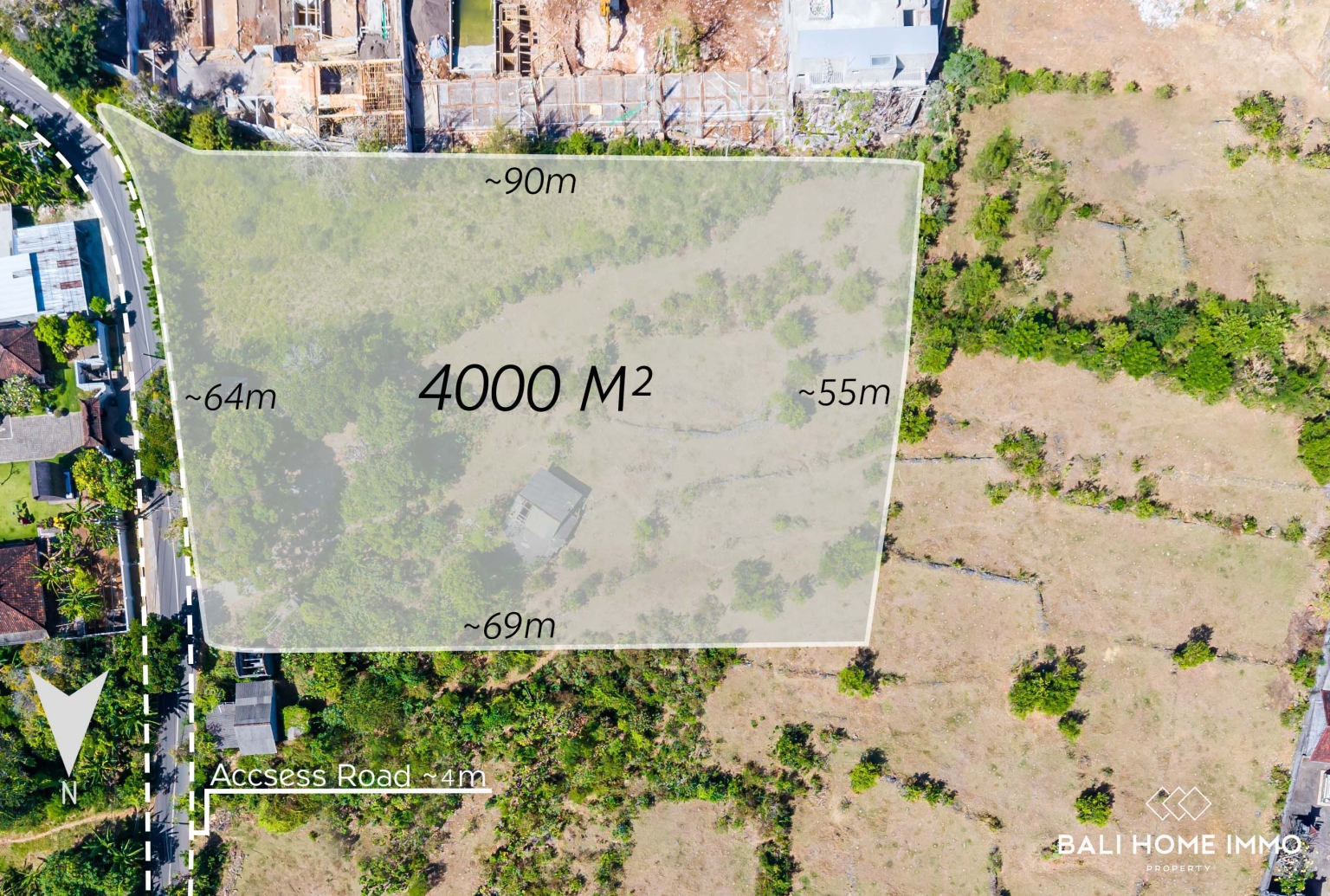Spanning 4,000 m², the land is located in the touristic zone, giving you flexibility for various types of development. The plot enjoys a slightly sloping contour, making it easy to design buildings with elevated views of the ocean. The access road is approximately 4 meters wide, providing convenient entry for construction and future guests.