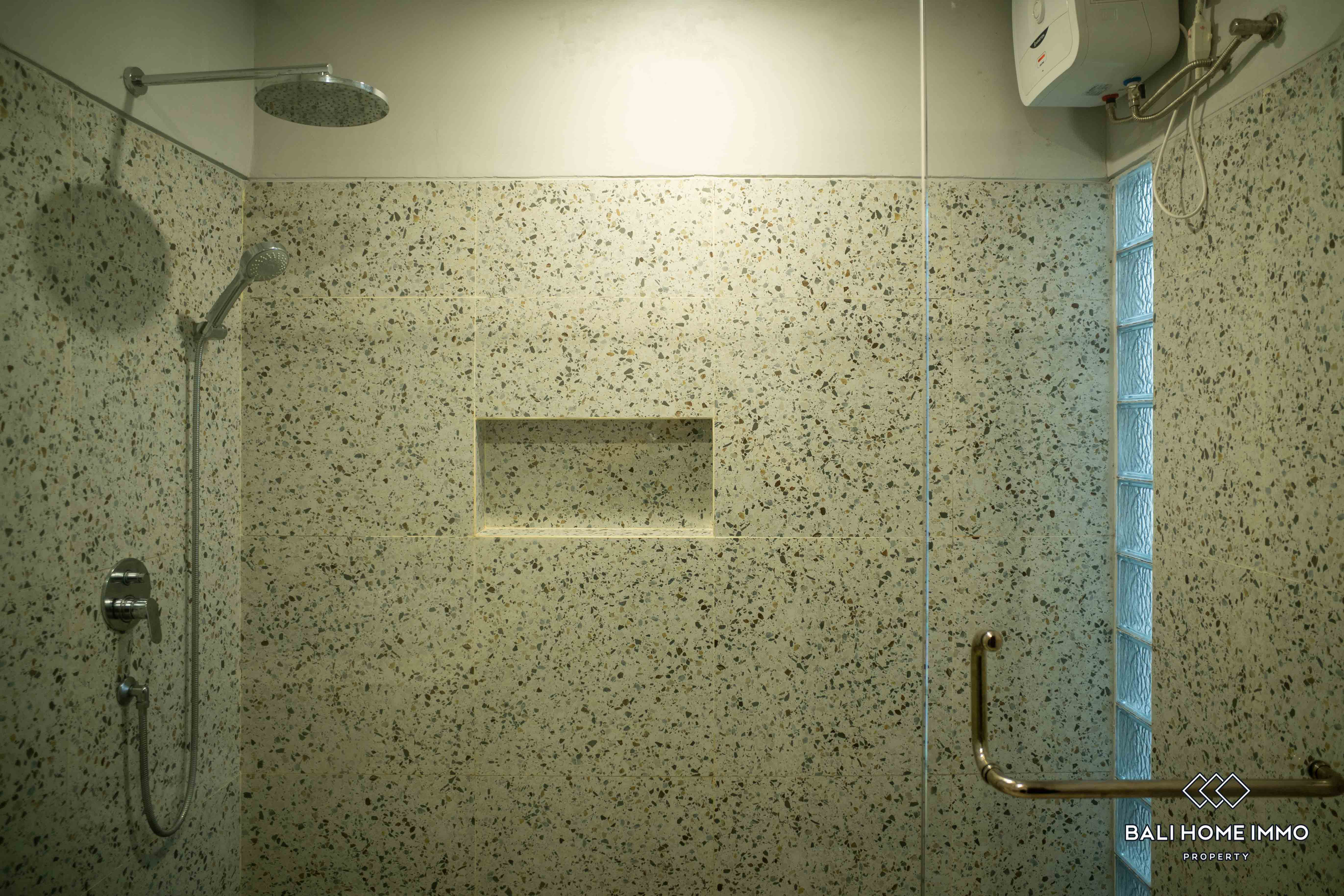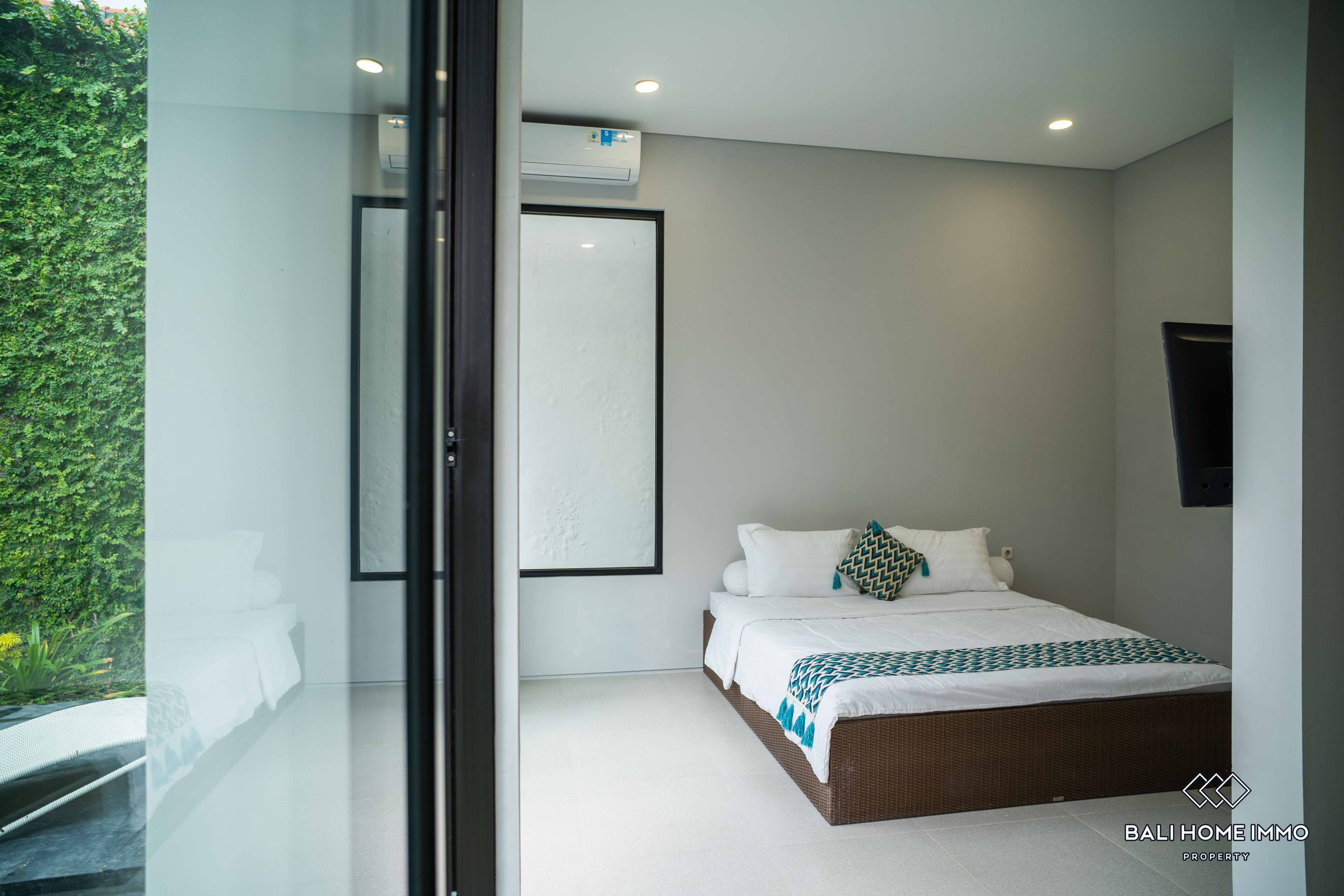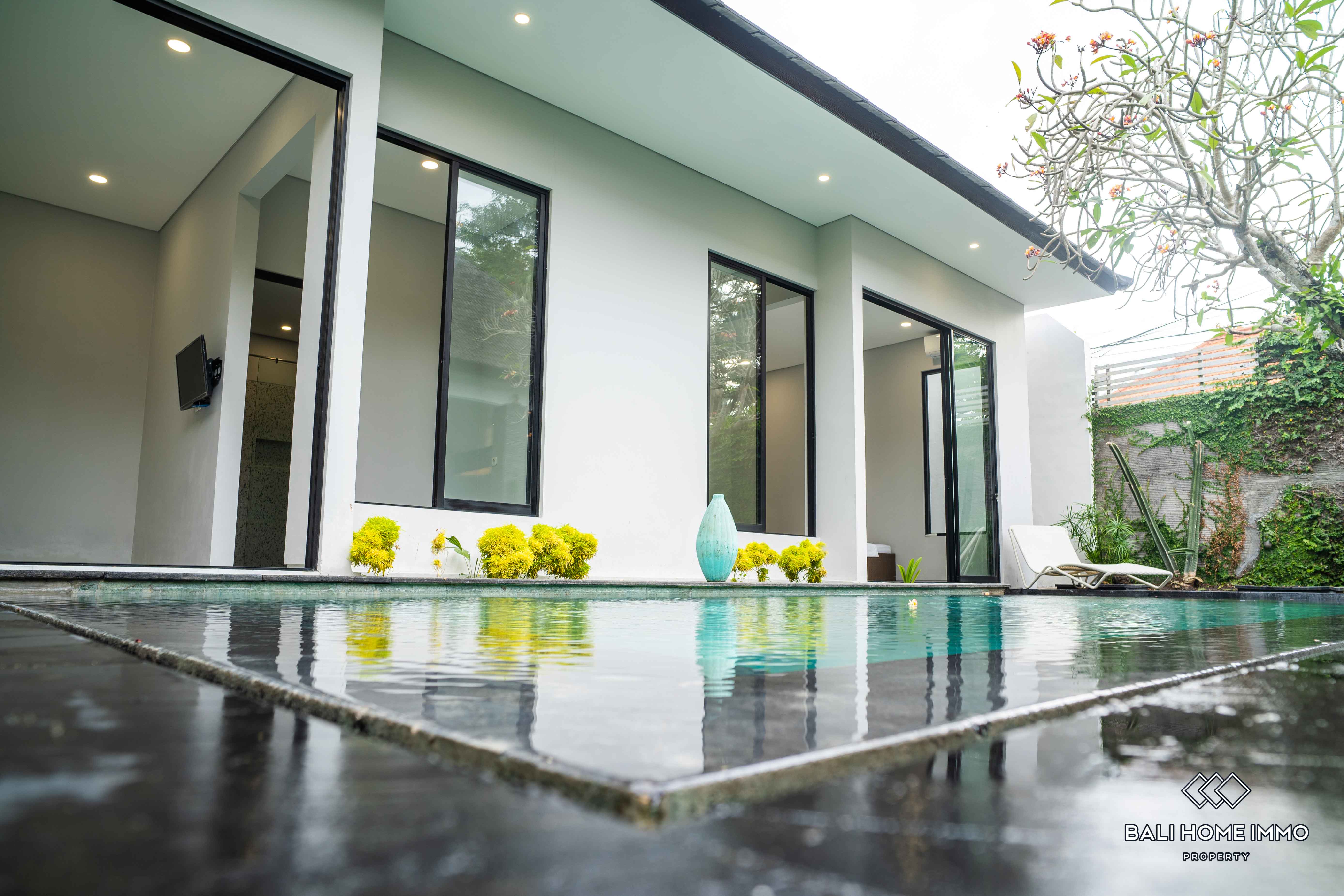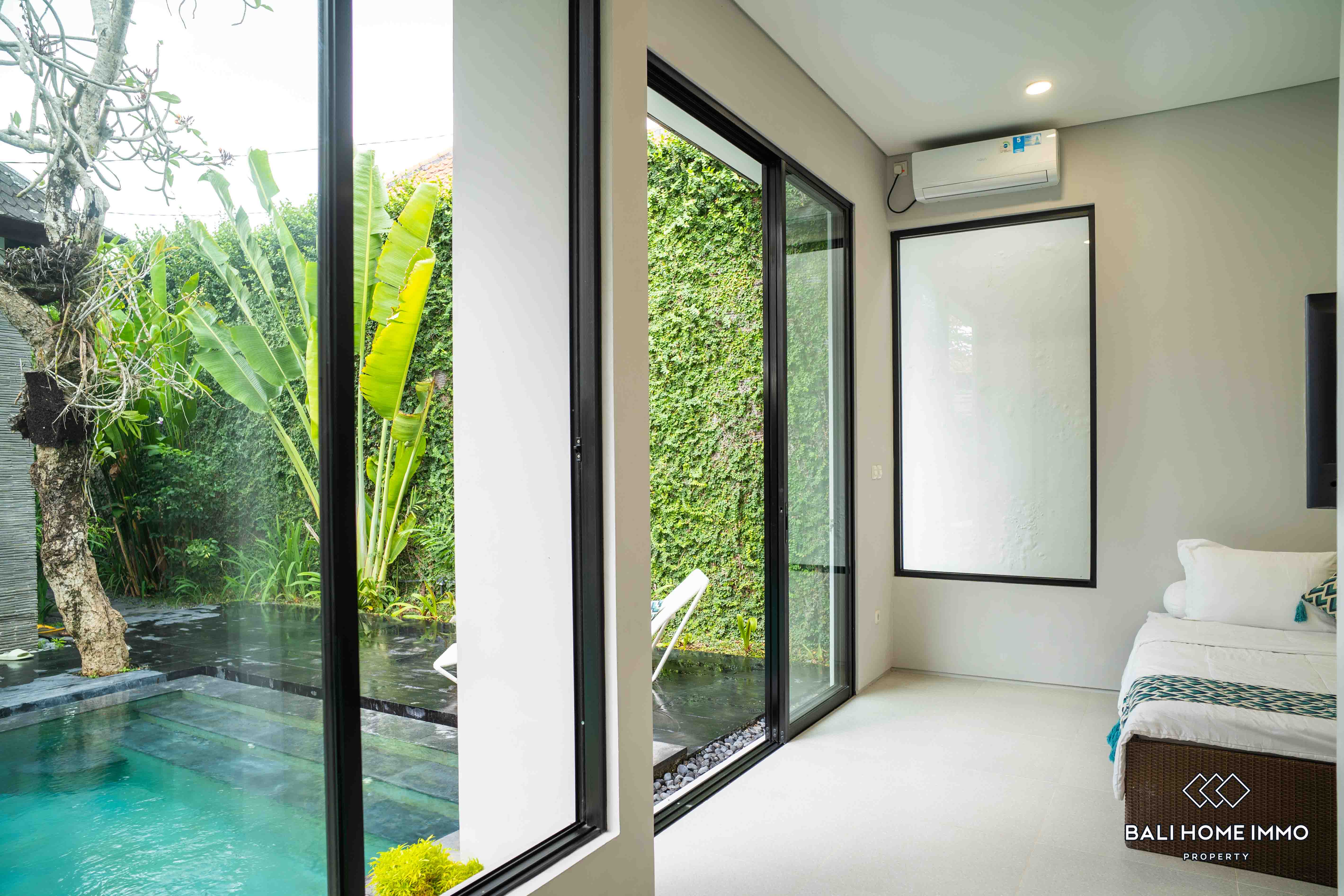Additionally, there are two ensuite bathrooms for added convenience and privacy, along with storage space to cater to practical needs. The outdoor area features a swimming pool, perfect for enjoying refreshing dips on warm Bali days. Furnished with tasteful furniture, the property ensures immediate comfort and convenience for its occupants.