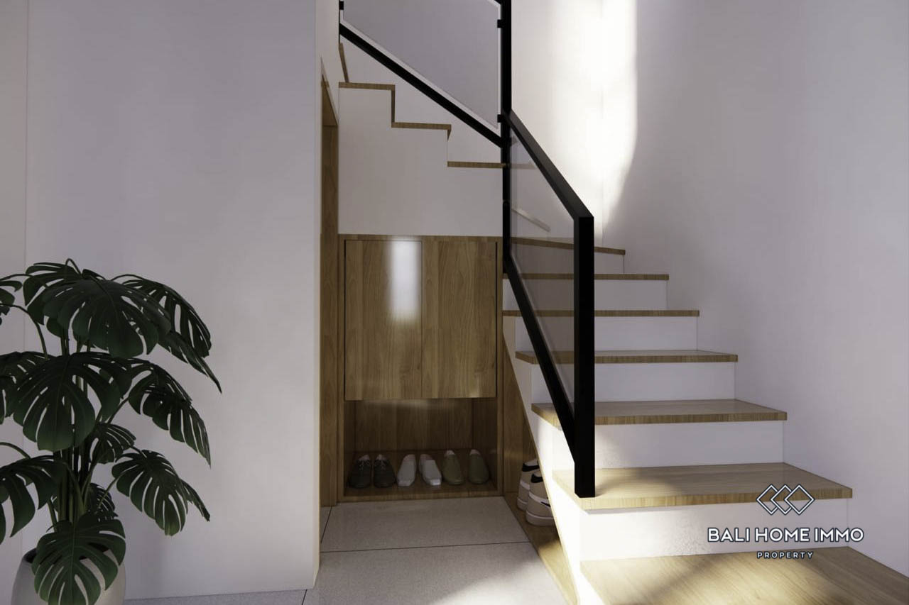 This modern two-story villa in Nusa Dua is situated in a tranquil area, offering peaceful living with beautiful ocean views. Built on 1.14 are of land with a building size of 80 m², the villa provides a private and cozy enclosed living room, perfect for relaxation. The villa includes two bedrooms, each with its own ensuite bathroom, ensuring comfort and privacy. The outdoor area features a swimming pool, ideal for enjoying Bali's tropical atmosphere. While the villa is currently unfurnished, it presents a wonderful opportunity to personalize the space to your style and needs in a serene residential area.