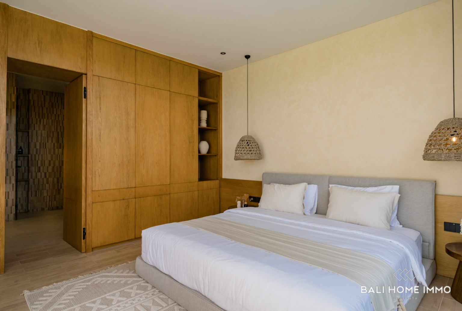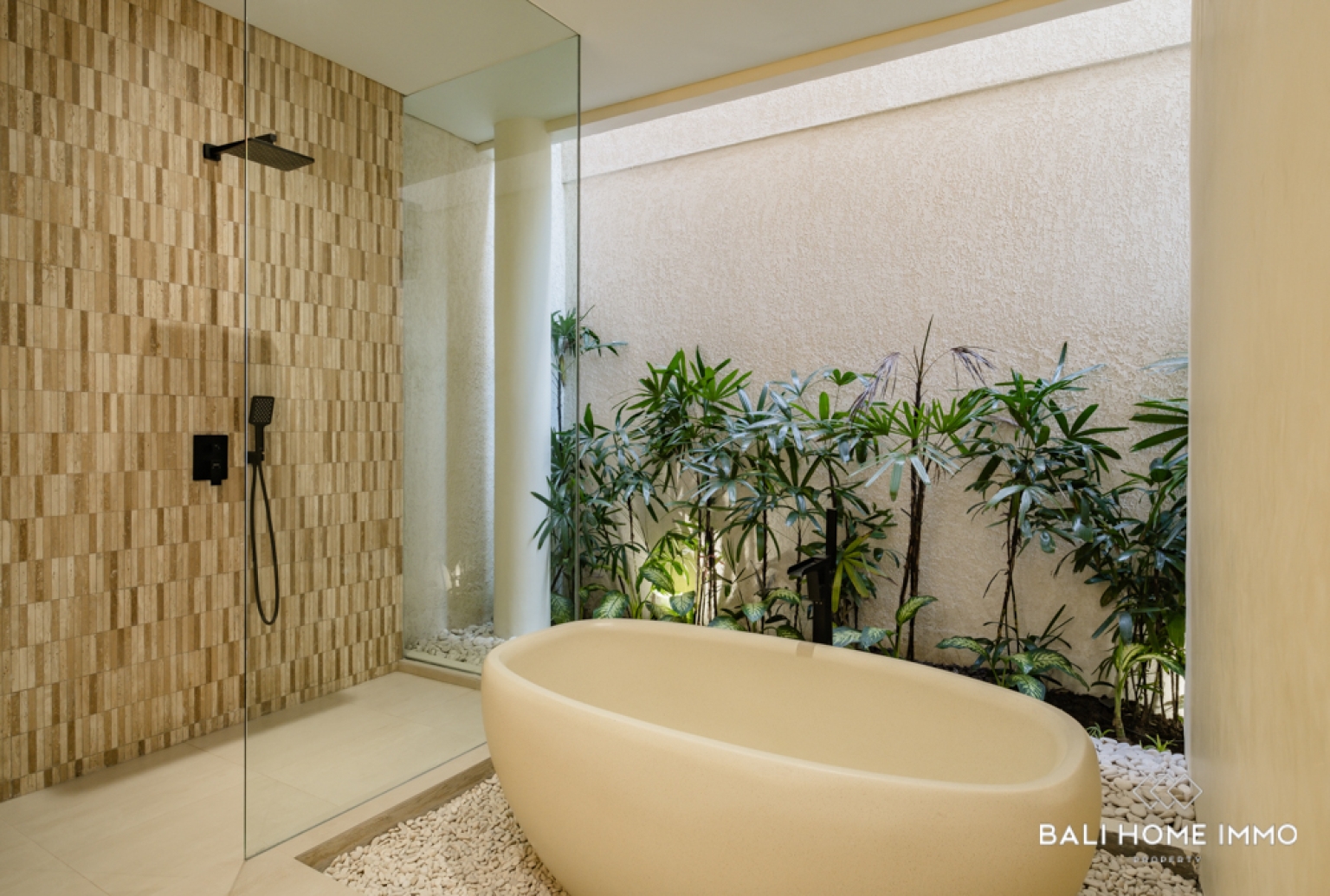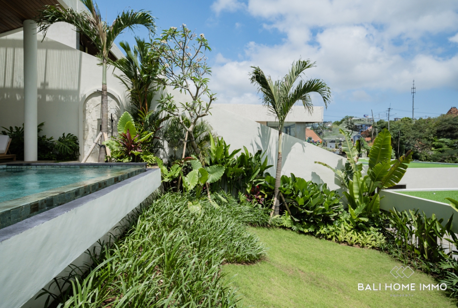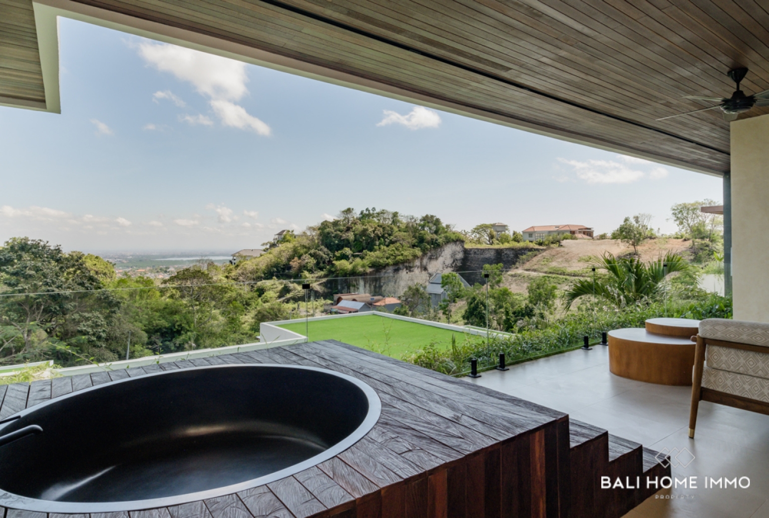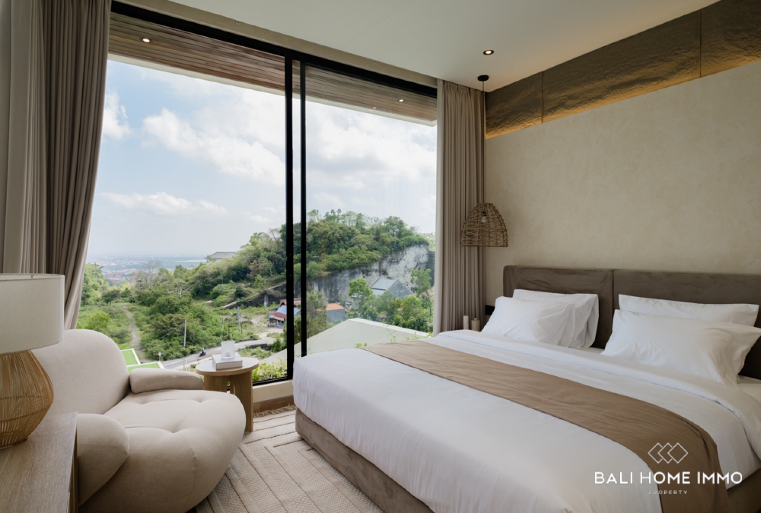 Perched in the peaceful hills of Goa Gong, this newly built two-bedroom villa offers an exceptional opportunity to own a freehold (HGB) property with breathtaking views overlooking Jimbaran Bay. Designed to embrace the natural beauty of the surrounding landscape, the villa features contemporary architecture combined with warm tropical elements, creating a serene and luxurious atmosphere. From the moment you arrive, the elevated position of the property captures sweeping ocean views and refreshing sea breezes.