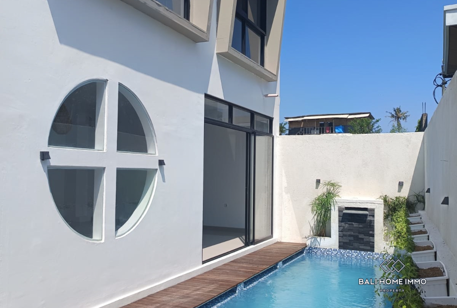 A standout feature is the private 2.5 x 5 meter swimming pool, seamlessly integrated with the indoor-outdoor flow of the villa. Floor-to-ceiling glass doors open up to the pool deck, bathing the interior in natural light throughout the day. Thoughtful details like the circular accent window and high ceilings create a sense of spaciousness and modern appeal. Each villa comes unfurnished, making it the perfect canvas for owners or investors to furnish to their taste or market preference. Whether you're looking to create a stylish residence or a high-yield Airbnb listing, these properties are ideal for both short-term and long-term rentals in Baliโs growing Tabanan region.