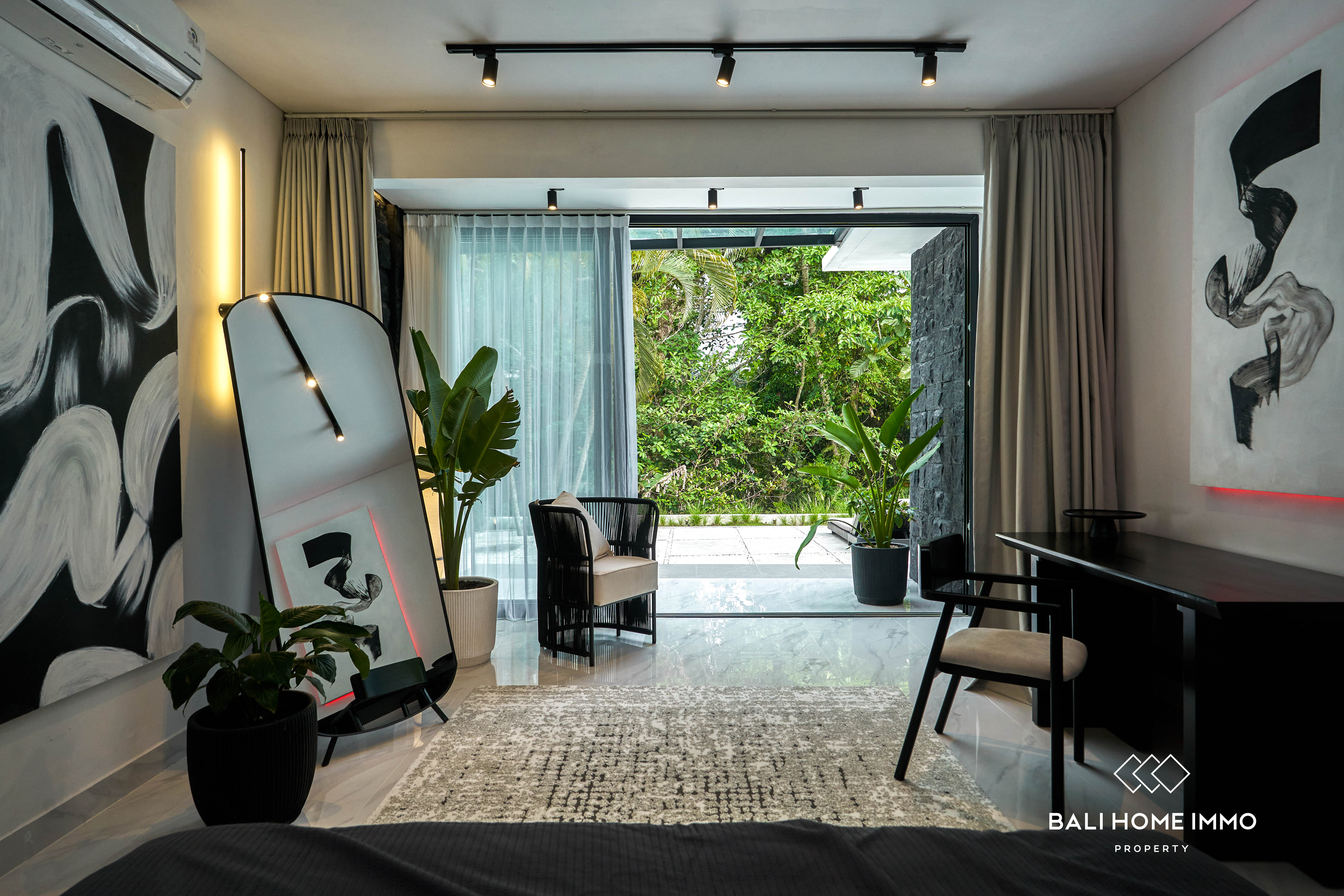 The second floor features the master bedroom with ensuite bathroom, as well as an additional living room and a private balcony. From here, you can relax and enjoy the peaceful jungle vistasโperfect for morning coffee or sunset moments.