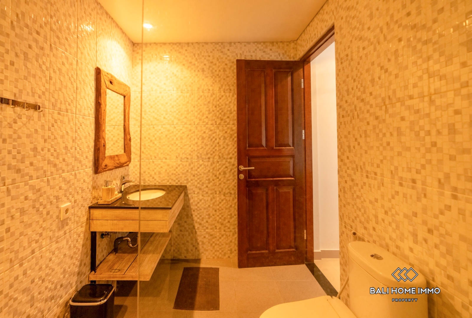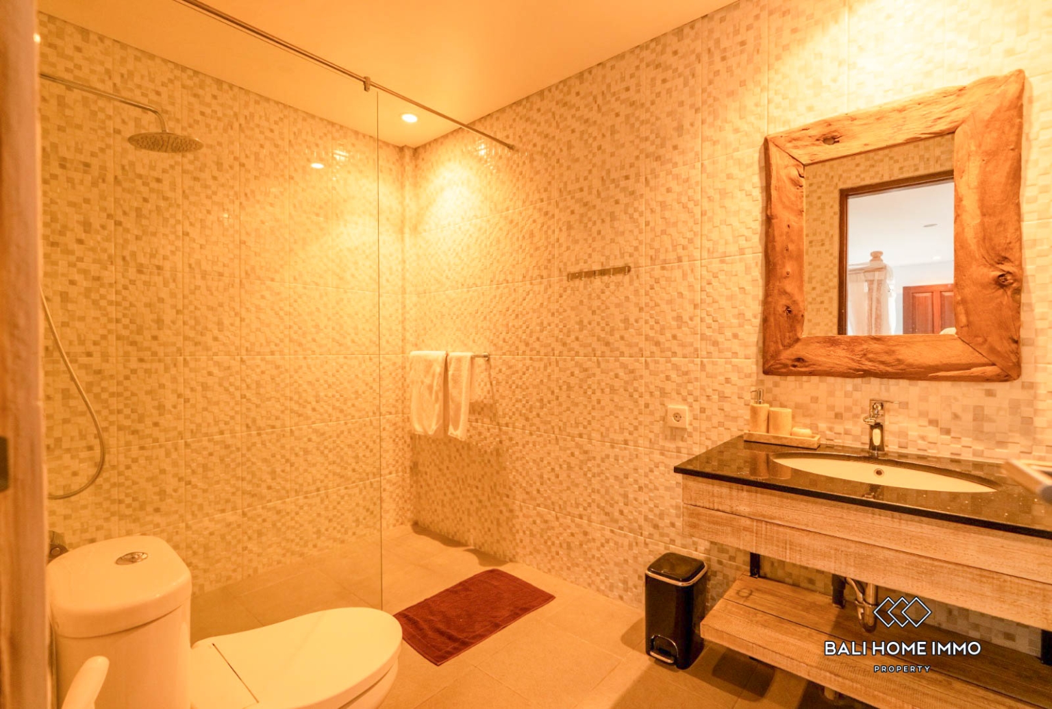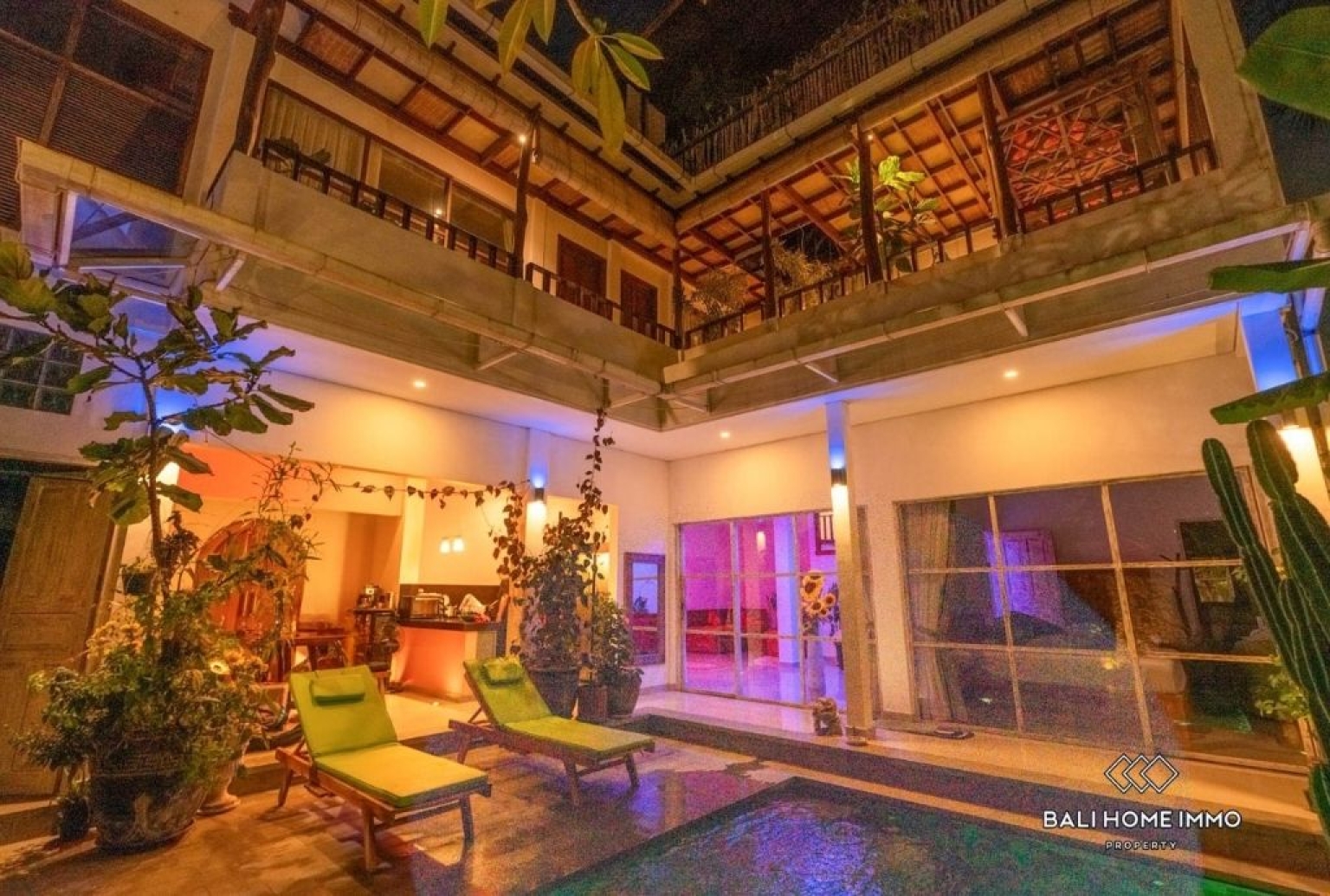 The outdoor area is designed for the tropical lifestyle, featuring a fully equipped kitchen and dining space that overlooks a private swimming pool, all maintained by a professional daily cleaning service. For those who work remotely, the villa provides a dedicated workspace with a private balcony, while the expansive rooftop terrace offers breathtaking panoramic views of the surrounding mountains.