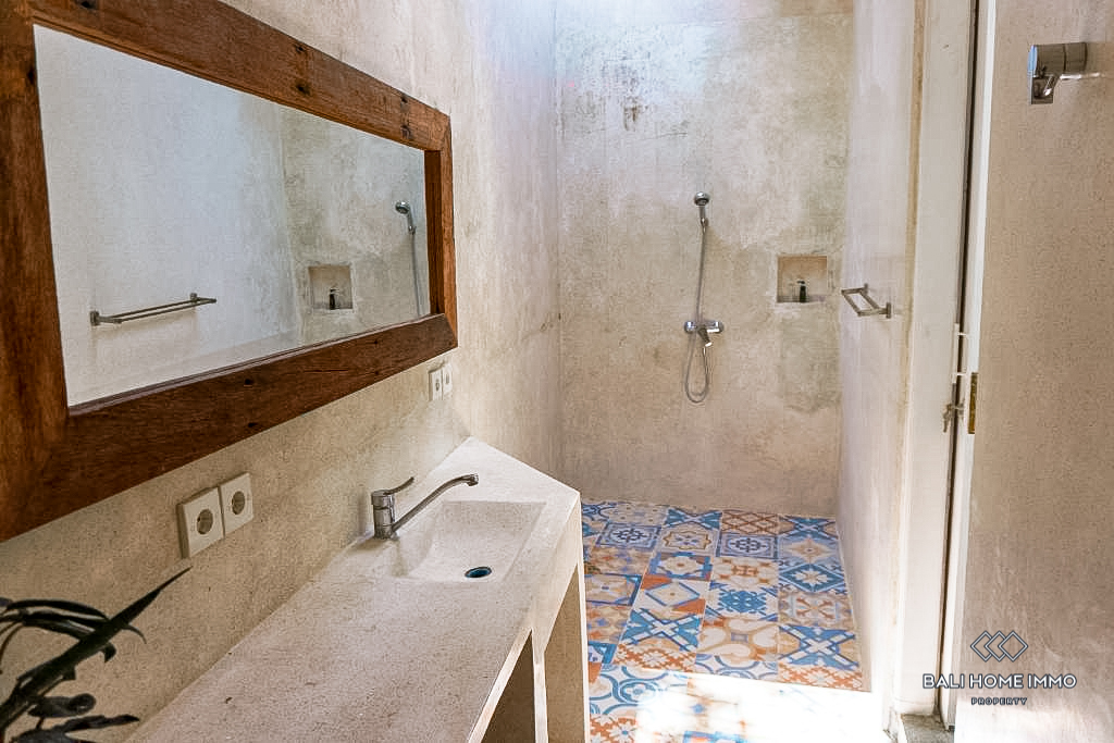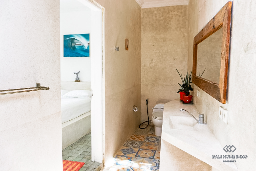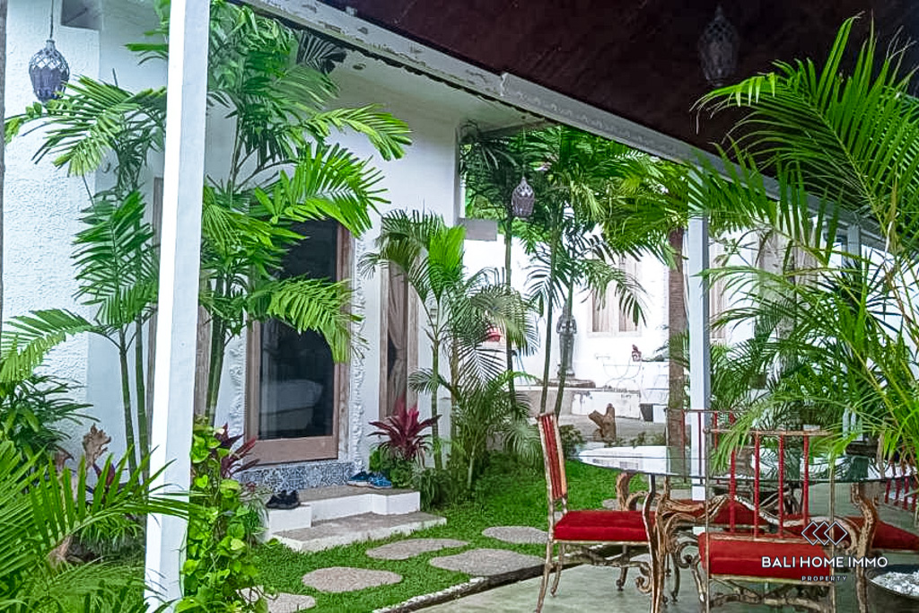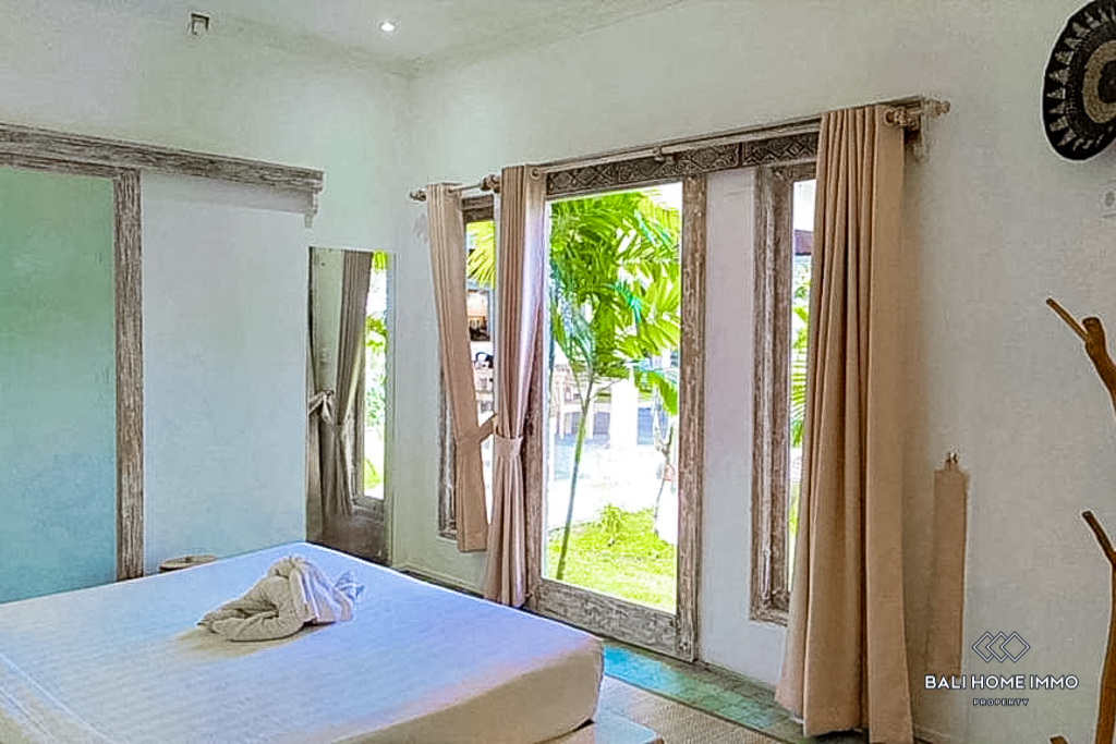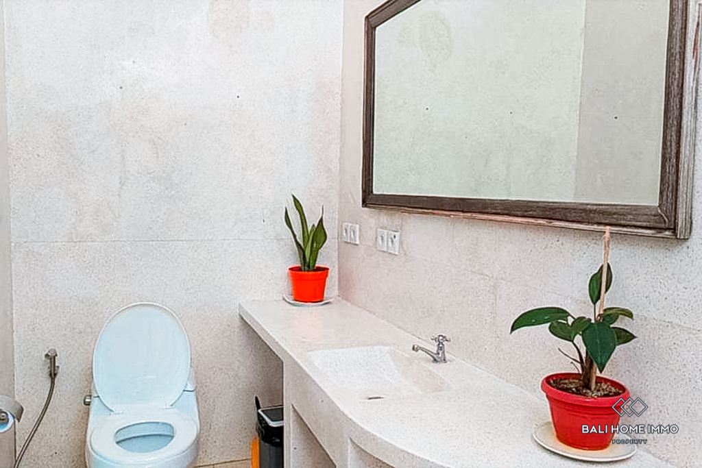 The villa features a total of nine bedrooms, each with its own ensuite bathroom, ensuring maximum comfort and privacy. Additionally, there is a guest toilet for convenience. The open kitchen and dining area is perfect for entertaining guests or enjoying family meals. The living area is also open, allowing natural light to flood the space and creating a welcoming ambiance. A terrace provides an ideal spot for relaxation, where you can bask in the beautiful Balinese weather and enjoy panoramic views of the surroundings. The villa also boasts a luxurious swimming pool surrounded by a well-maintained garden, adding a touch of greenery and tranquility to the overall atmosphere.