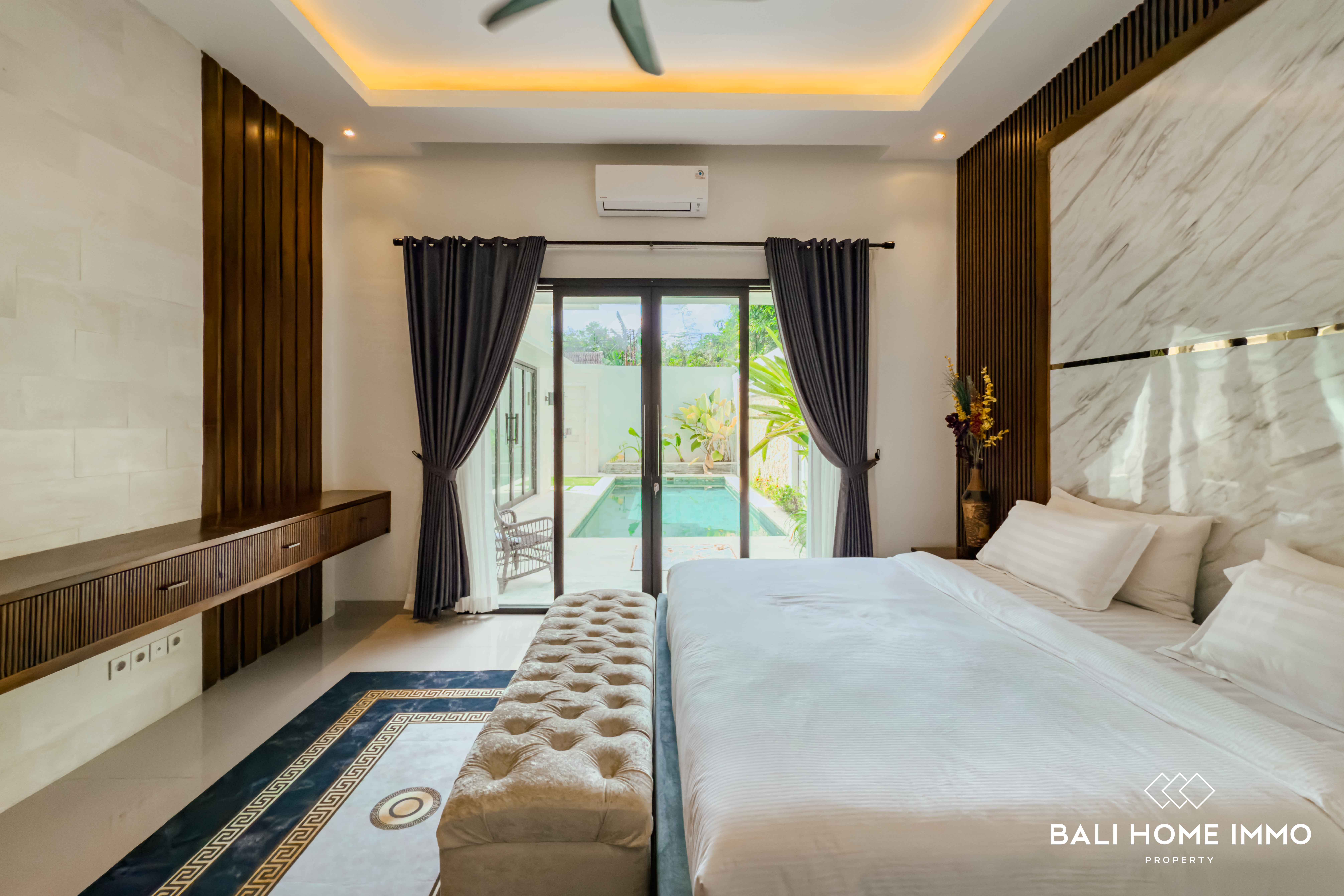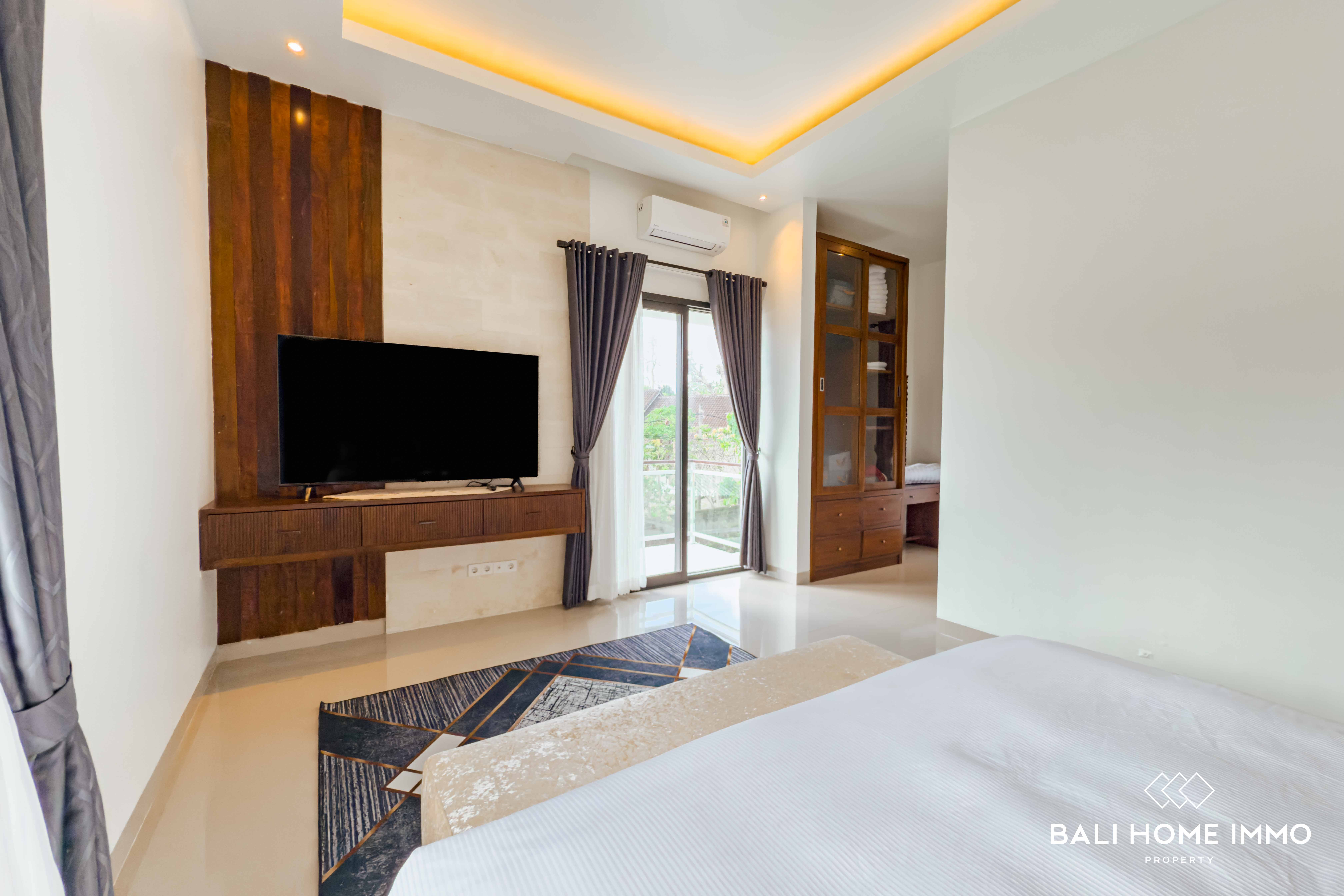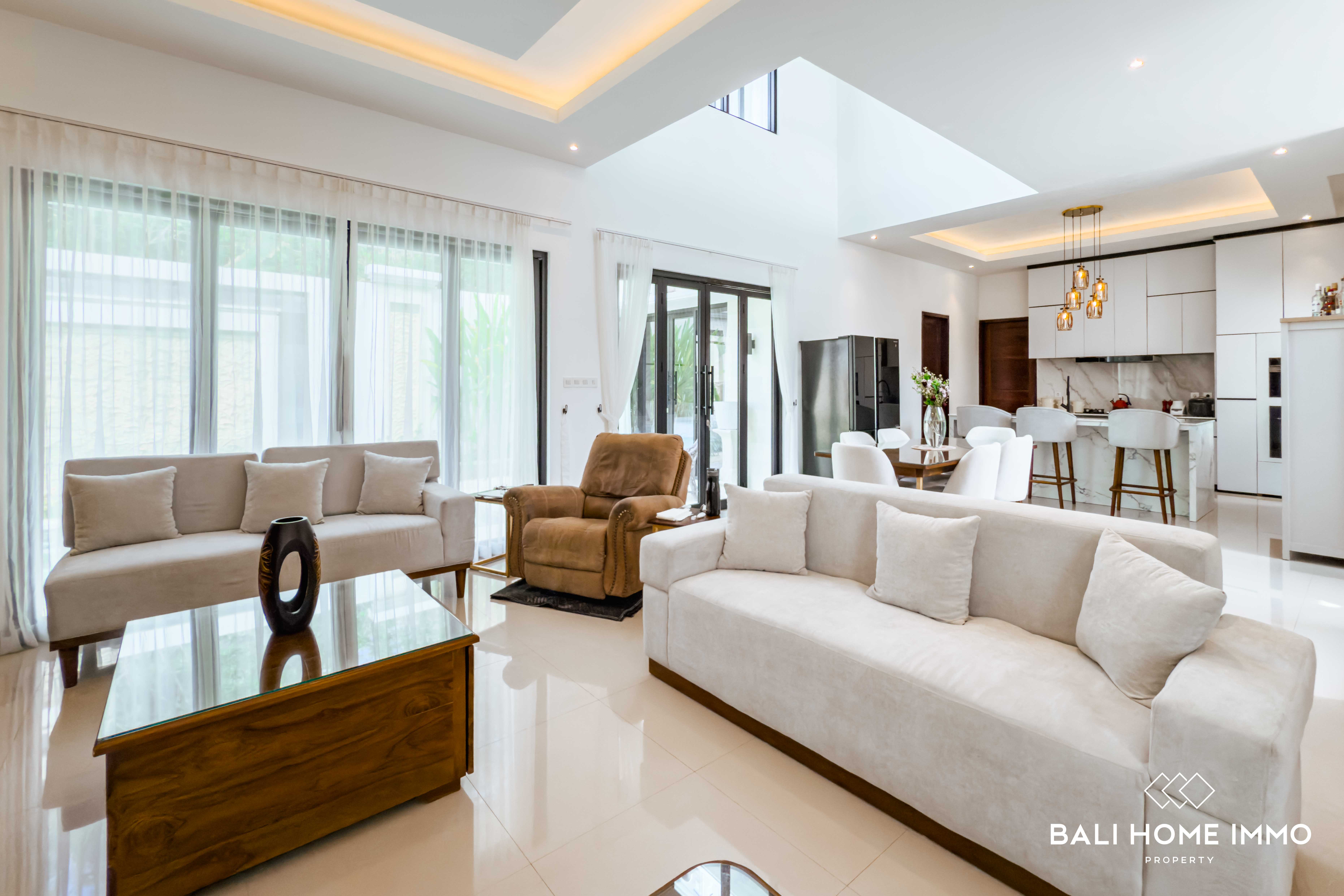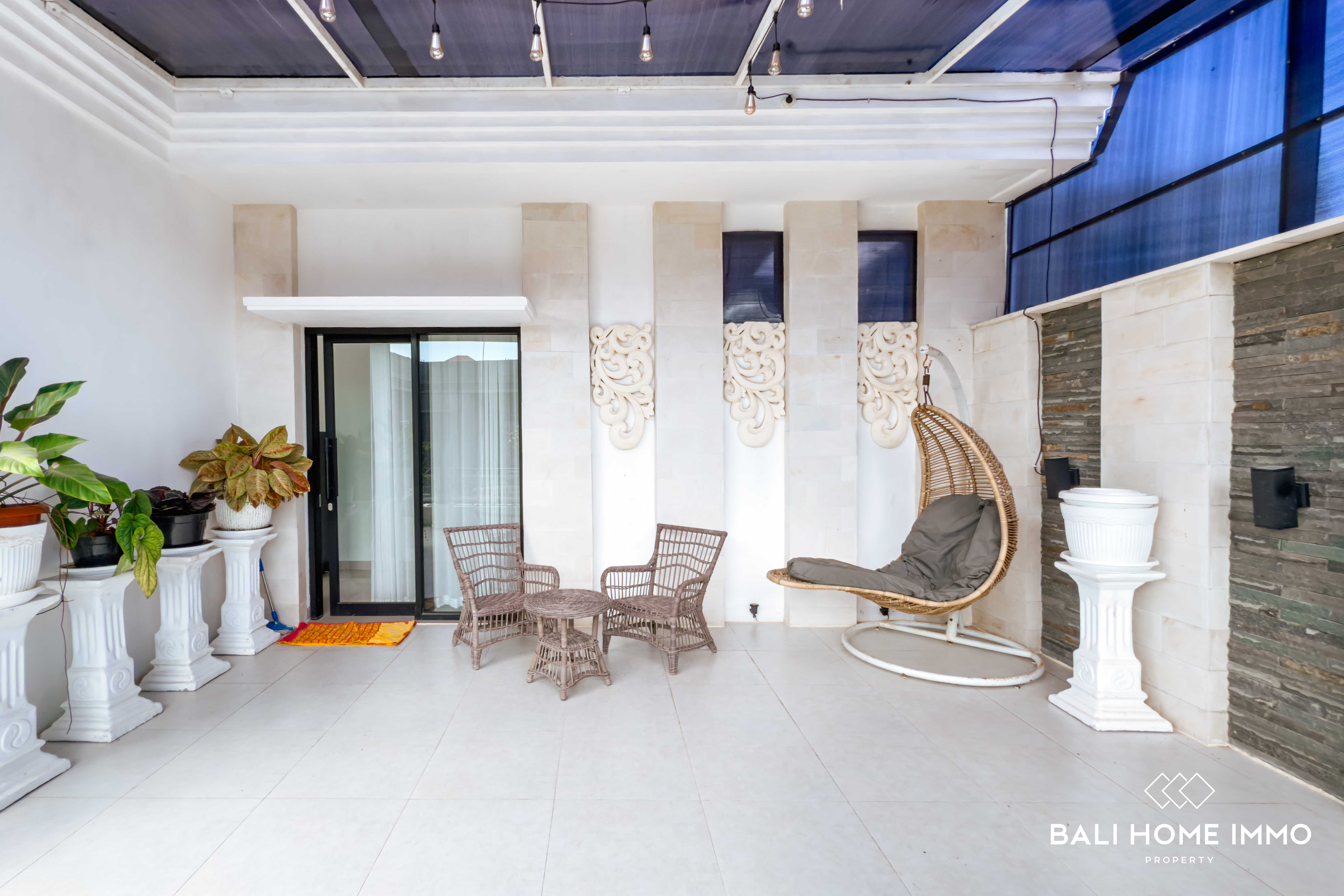 The outdoor area is equally impressive, featuring a lush garden and a spacious swimming poolโperfect for enjoying Baliโs year-round sunshine. A dedicated maid's room with its own bathroom ensures comfort and practicality for daily living. The property is securely located within a one-gate system, offering peace of mind and a sense of community.