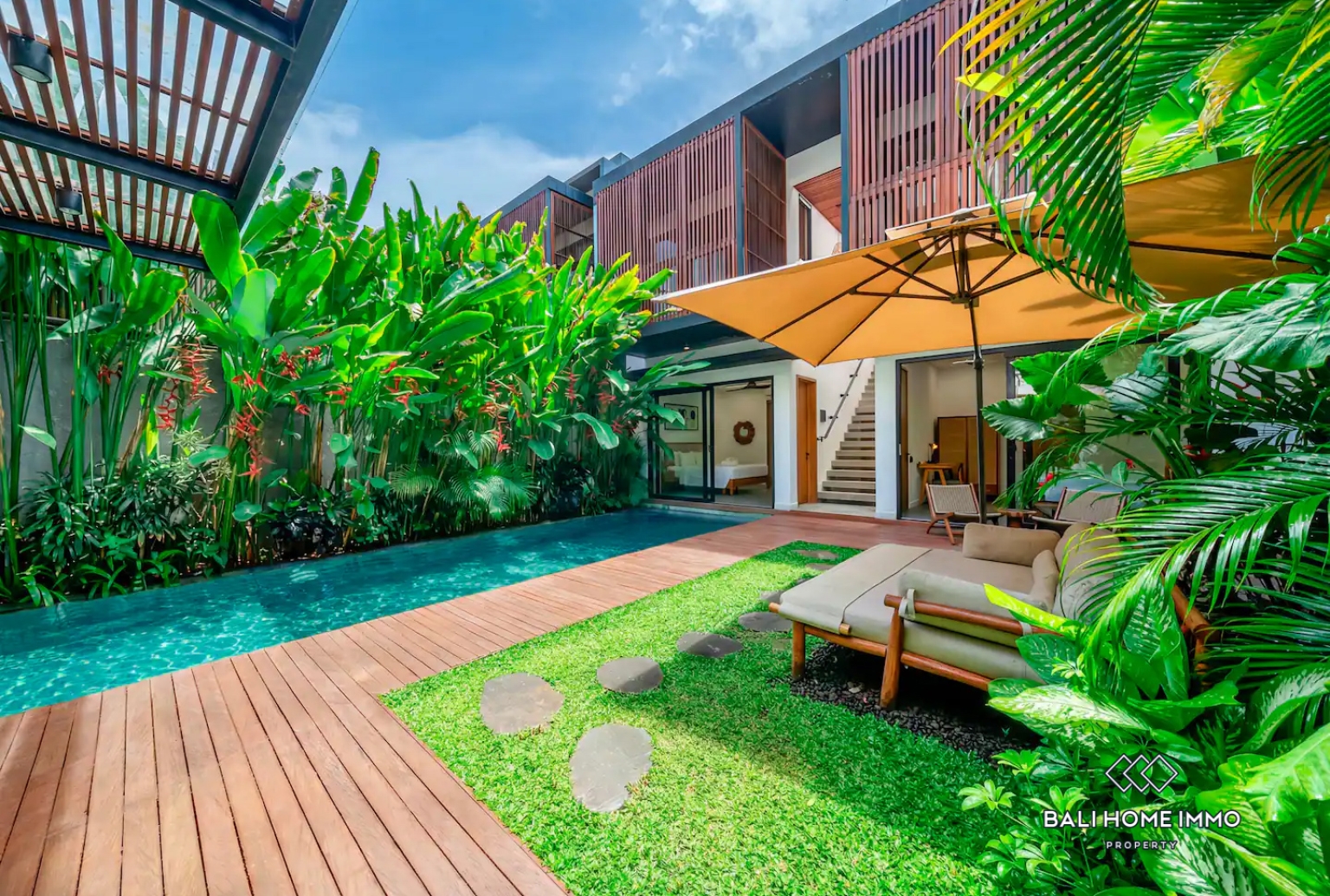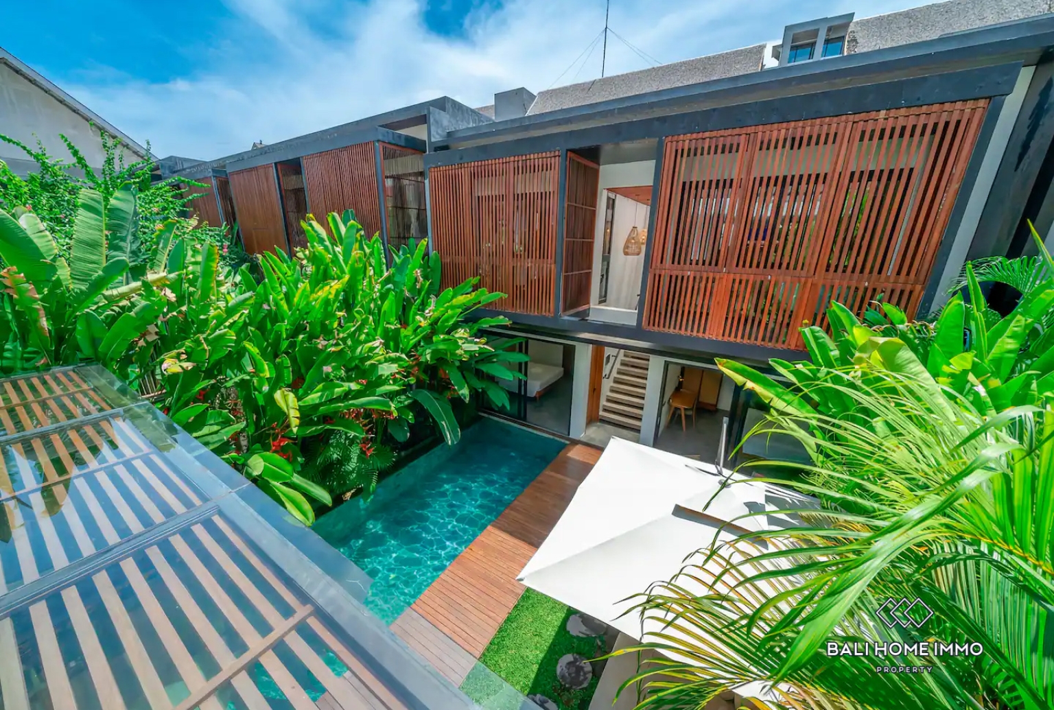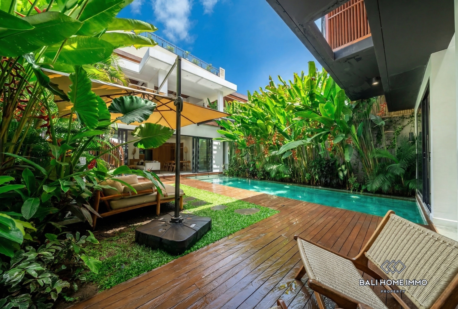 Designed for both functionality and comfort, the villa consists of two standalone buildings, allowing for flexibility and privacy within the same property. It includes a private 9x3.5m swimming pool, an enclosed living room, a rooftop terrace, and four generously sized bedrooms of approximately 20 sqm each. The layout provides ample space for family living or for hosting guests, while maintaining a sense of openness and flow between indoor and outdoor areas. The villa is equipped with sound-insulated windows, ensuring peace and quiet even in a lively neighborhood. Its contemporary minimalist architecture is enhanced by Balinese design elements, seamlessly blending modern elegance with natural warmth. Every corner of the villa reflects a thoughtful design approach—practical, stylish, and timeless.