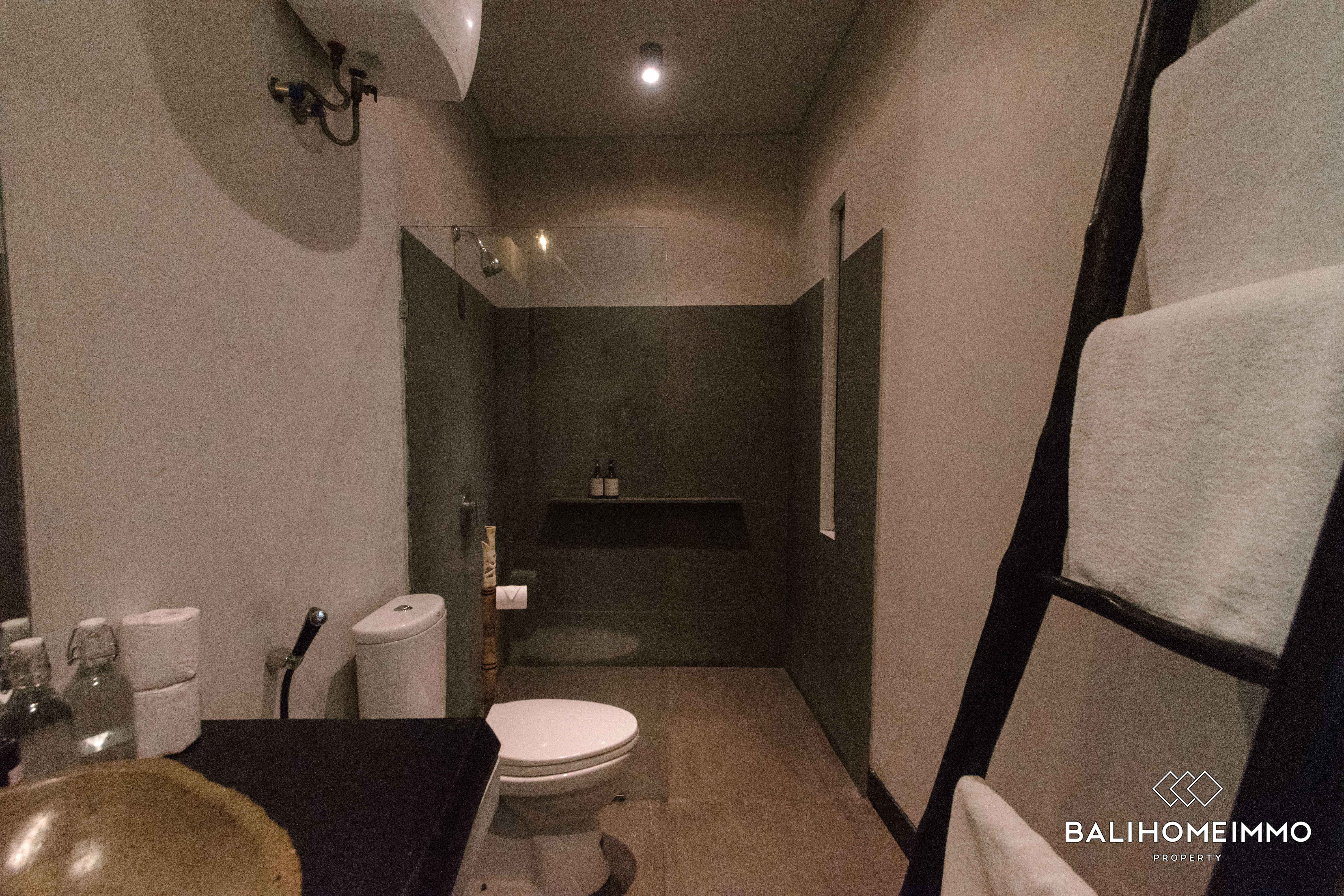 The outdoor area features a refreshing swimming pool, inviting residents to relax and unwind in a tranquil setting. The property is situated in a touristic area, providing easy access to the vibrant attractions, cafes, and lifestyle offerings that Canggu has to offer.