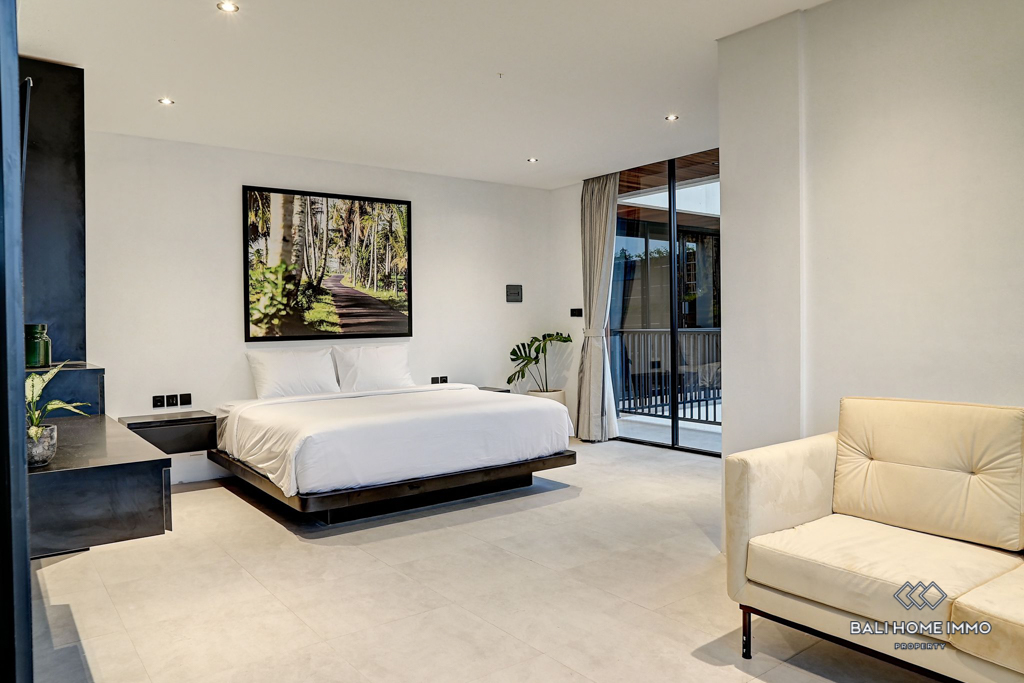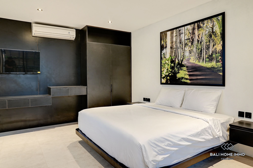 This modern apartment located in Canggu boasts a contemporary design and comfortable living space measuring 54 square meters. It is just an 8-minute drive away from the stunning beach and surrounded by various amenities such as restaurants, cafes and beach clubs, providing convenience for its residents.