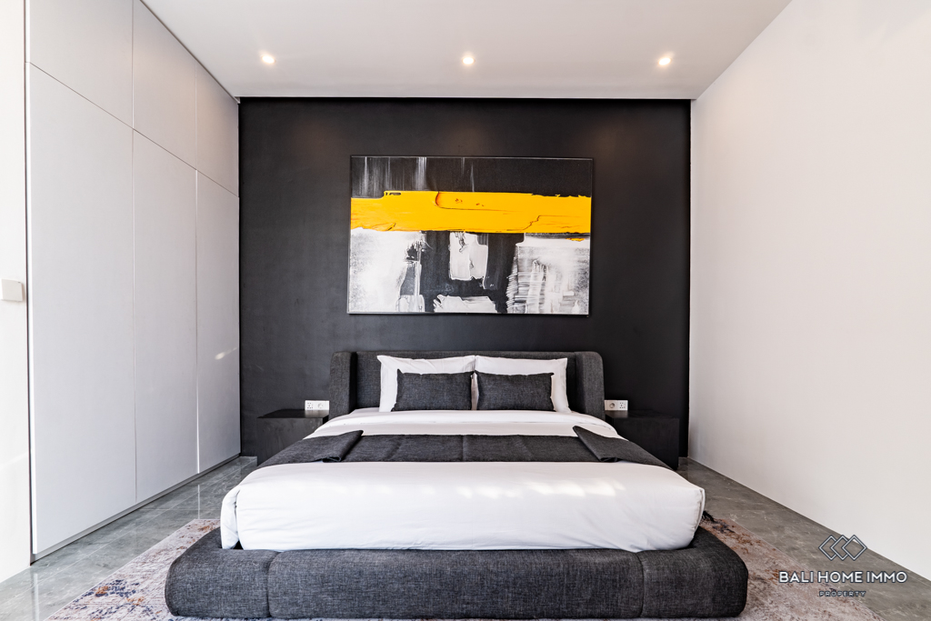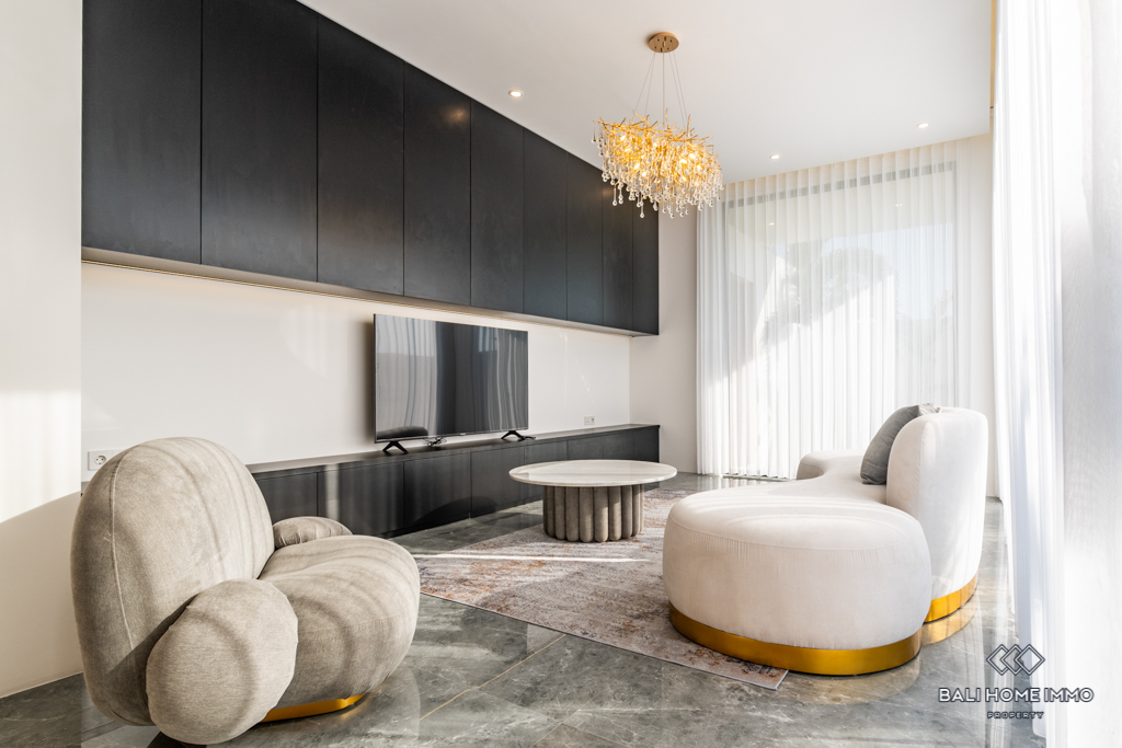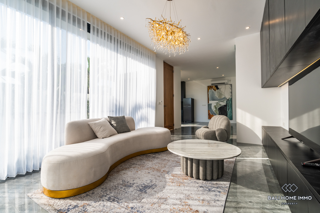 This modern villa, situated in the serene neighborhood of Canggu, offers a peaceful retreat with contemporary design elements. Built in 2024, the property spans 148 mยฒ on a 1.51 Are plot, ensuring ample space for comfortable living. The villa's enclosed living room creates a cozy and private atmosphere, perfect for relaxation and entertaining.
