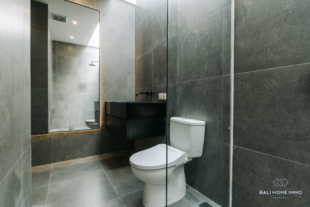 The property includes two ensuite bathrooms, designed to provide both convenience and privacy. The outdoor area is highlighted by a beautifully designed pool, ideal for cooling off and enjoying the tranquil surroundings. With high-quality furnishings throughout, this villa is fully furnished and ready for immediate occupancy. Located in a quiet residential area, it offers a serene lifestyle with the added security of a 22-year leasehold period. Perfect for those seeking a blend of modern living and tranquility in the heart of Canggu.