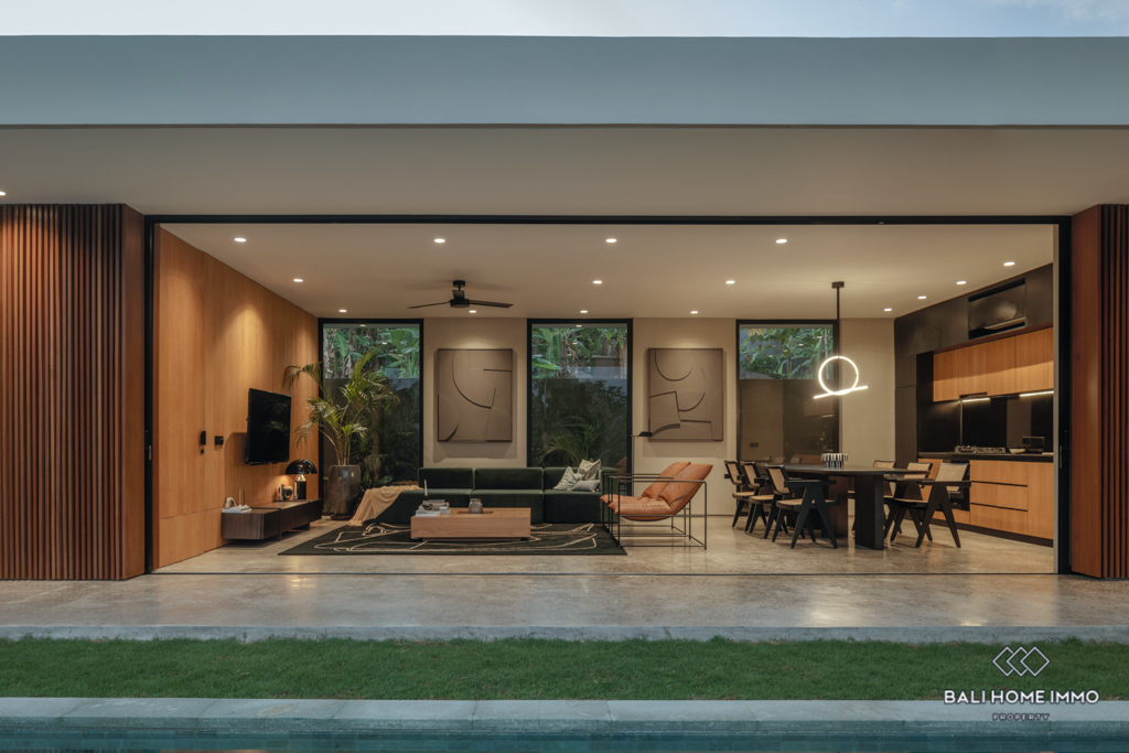Positioned within a residential area, the property ensures a peaceful living environment while being just a 15-minute drive from the nearest beach and renowned beach clubs. This strategic location allows residents to enjoy the vibrant atmosphere of Canggu while having a retreat-like space to call home.