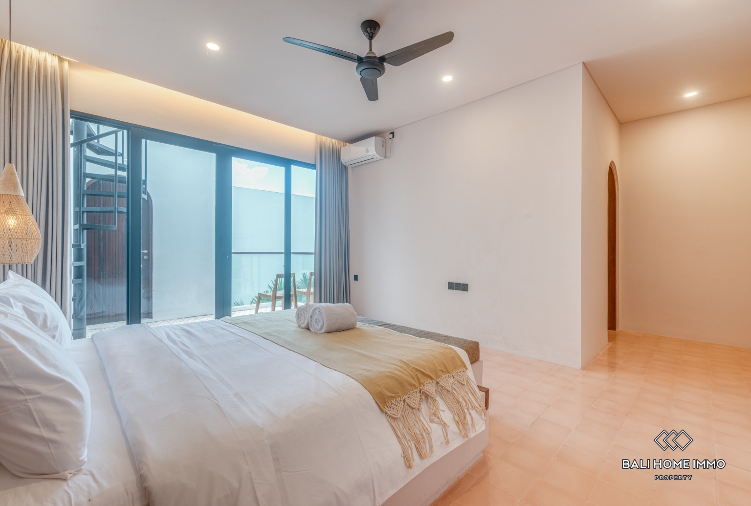 This stunning two-story villa, plus rooftop, is a masterclass in contemporary tropical design, maximizing its 84.78sqm plot with an incredibly smart and spacious layout. The ground floor opens from a common parking area into a sleek, modern kitchen and a stylish sunken living room that faces a sparkling private pool. A guest bedroom with its own ensuite bathroom is also located on this level, offering direct pool access and a seamless indoor-outdoor feel. Ascending the architectural staircase, you will find the grand master suite, which features a luxurious ensuite bathroom, a dedicated walk-in closet, and a private balcony terrace. This terrace cleverly connects to a professional small office roomโperfect for remote workโwhile every interior space is fully air-conditioned for maximum comfort. The crowning jewel of the home is the expansive rooftop terrace, providing an open-air sanctuary to enjoy the Balinese breeze and surrounding neighborhood views.