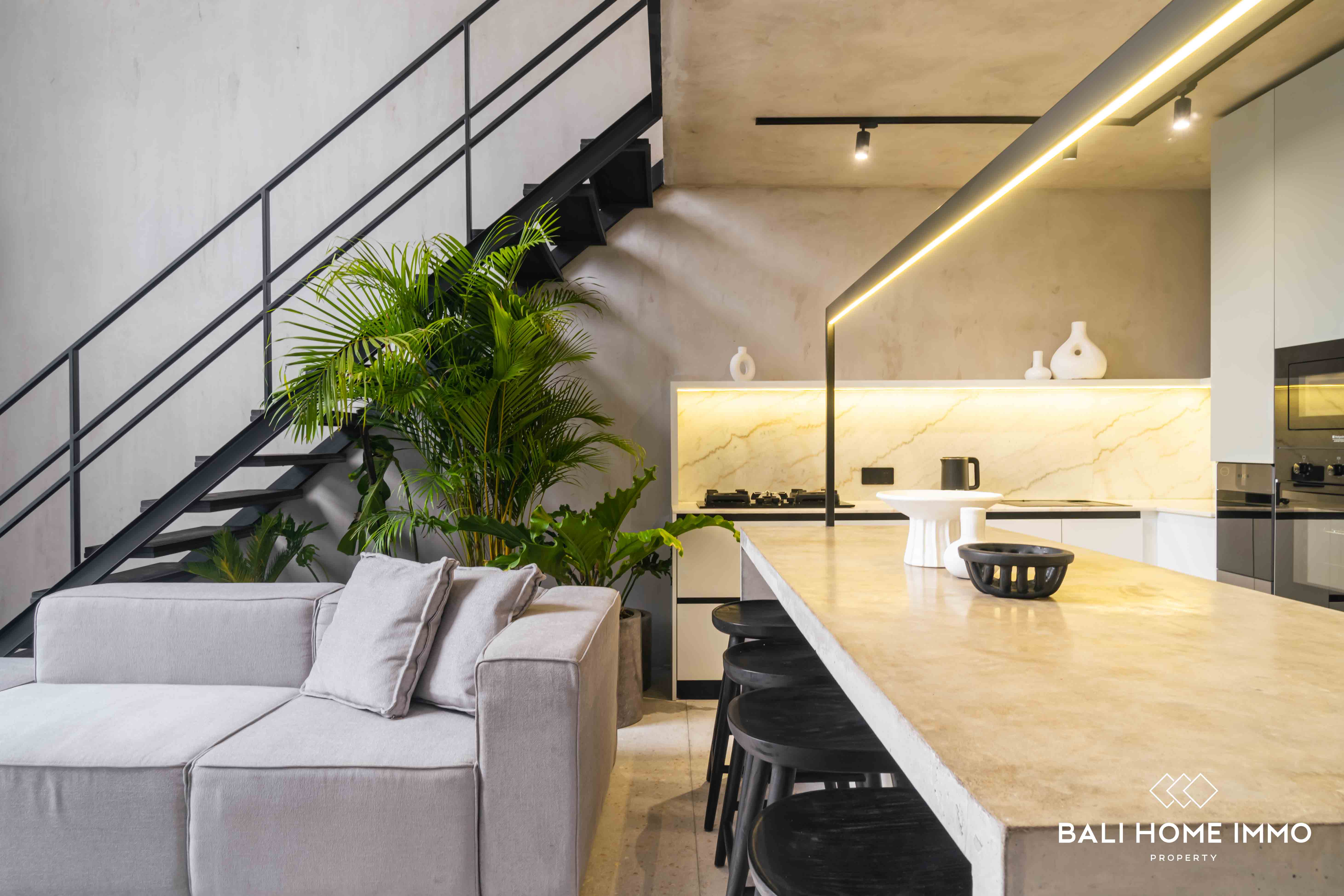 Located on the residential side of Canggu, this modern two-story property offers a comfortable and stylish living experience. With a 15-minute drive to the nearest beach, residents can enjoy both the serenity of a residential area and easy access to the coastal delights.