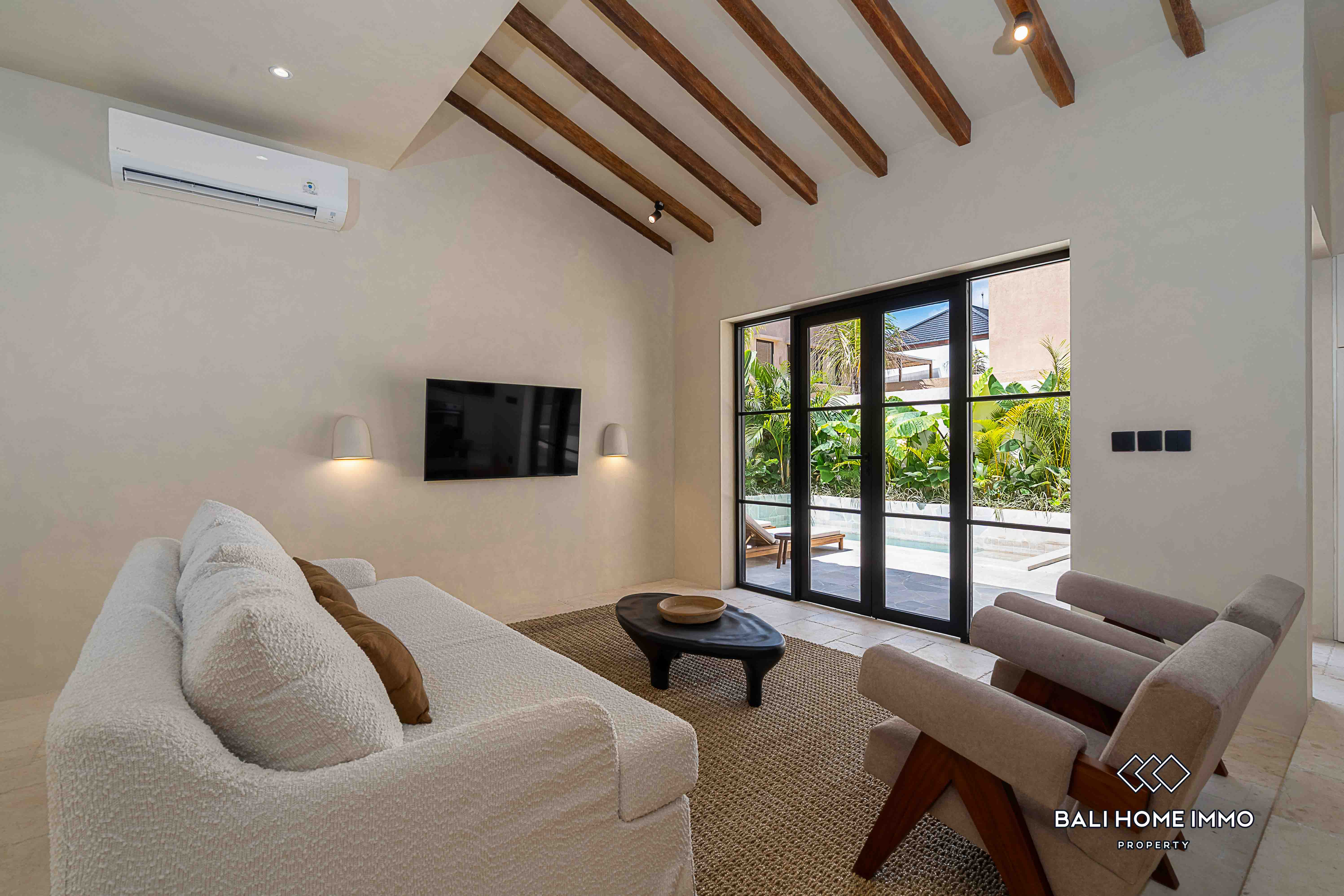 Step into the open or enclosed living room, where natural light dances through modern architectural elements. With two ensuite bathrooms, each elegantly designed, the property offers privacy and convenience. Embrace the tropical lifestyle with a refreshing swimming pool offering a picturesque view. The stylish furnishings, included with the property, complement the modern design, creating a turnkey investment opportunity.