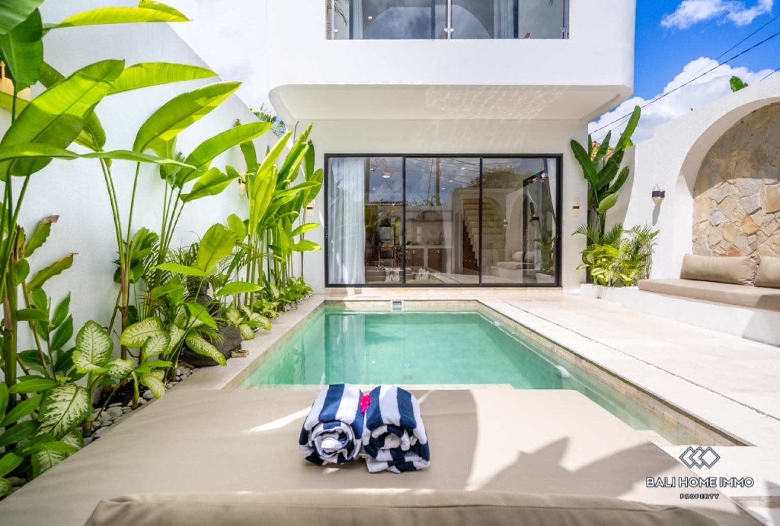 Step outside to enjoy your own private pool, complemented by an outdoor shower that adds a tropical touch to the villa experience. The upper level boasts a charming balcony, perfect for unwinding or enjoying the surrounding views. Additional features include a dedicated outdoor parking area suitable for bikes, ensuring convenience and practicality. Located in the sought-after area of Berawa, this villa offers easy access to popular cafes, shops, and the beach, making it an excellent choice for those seeking a stylish and well-appointed home in a vibrant neighborhood.