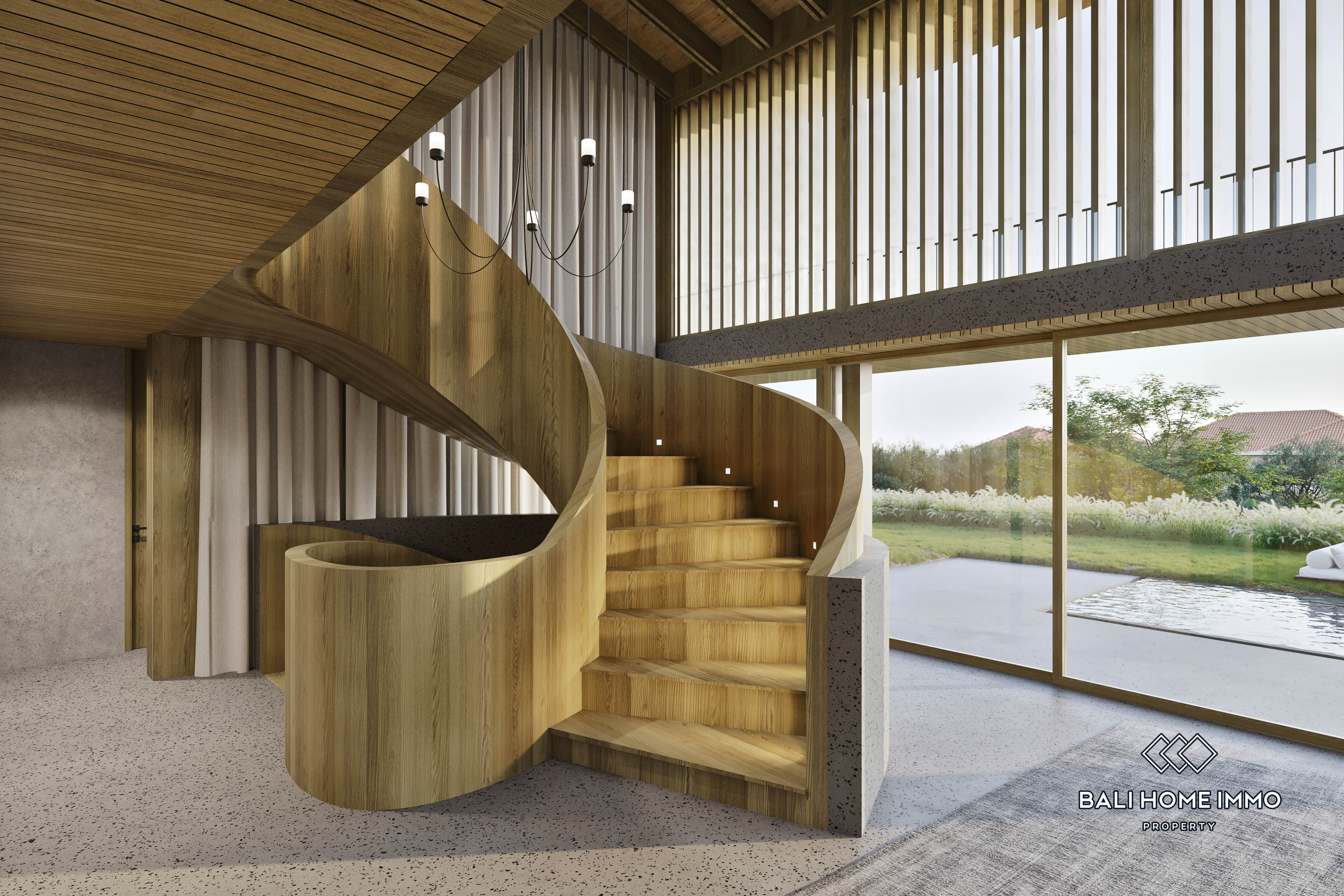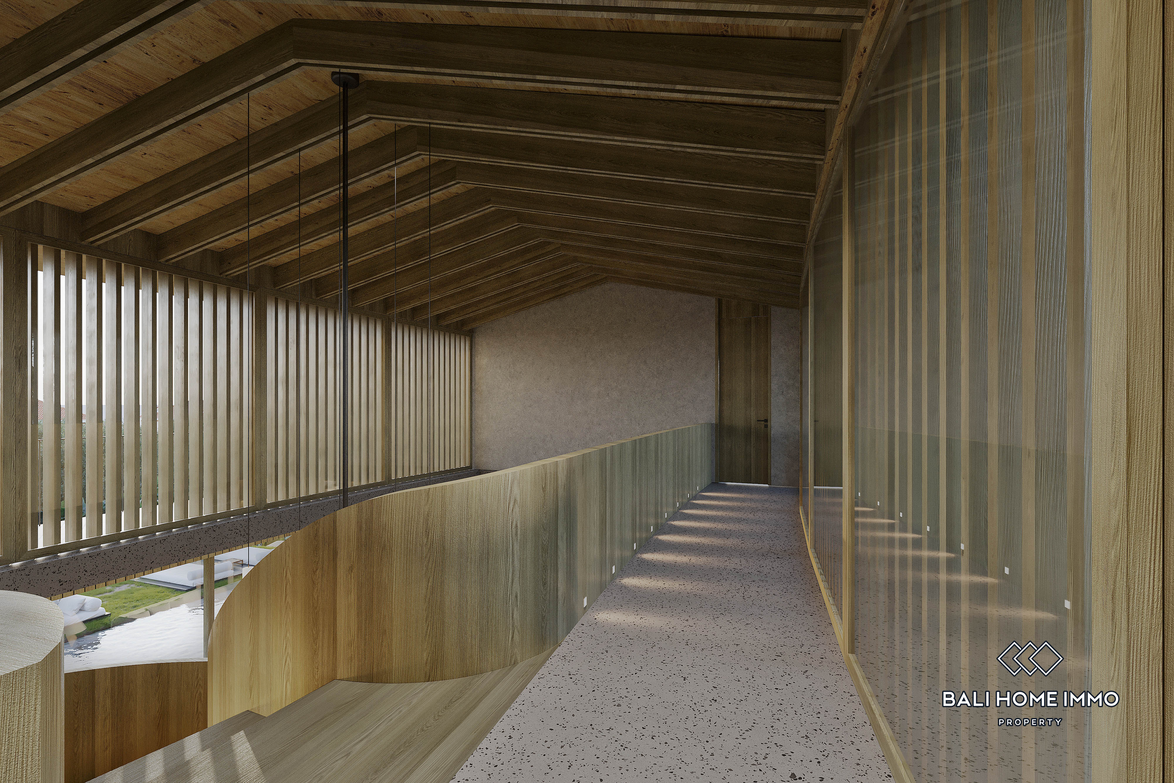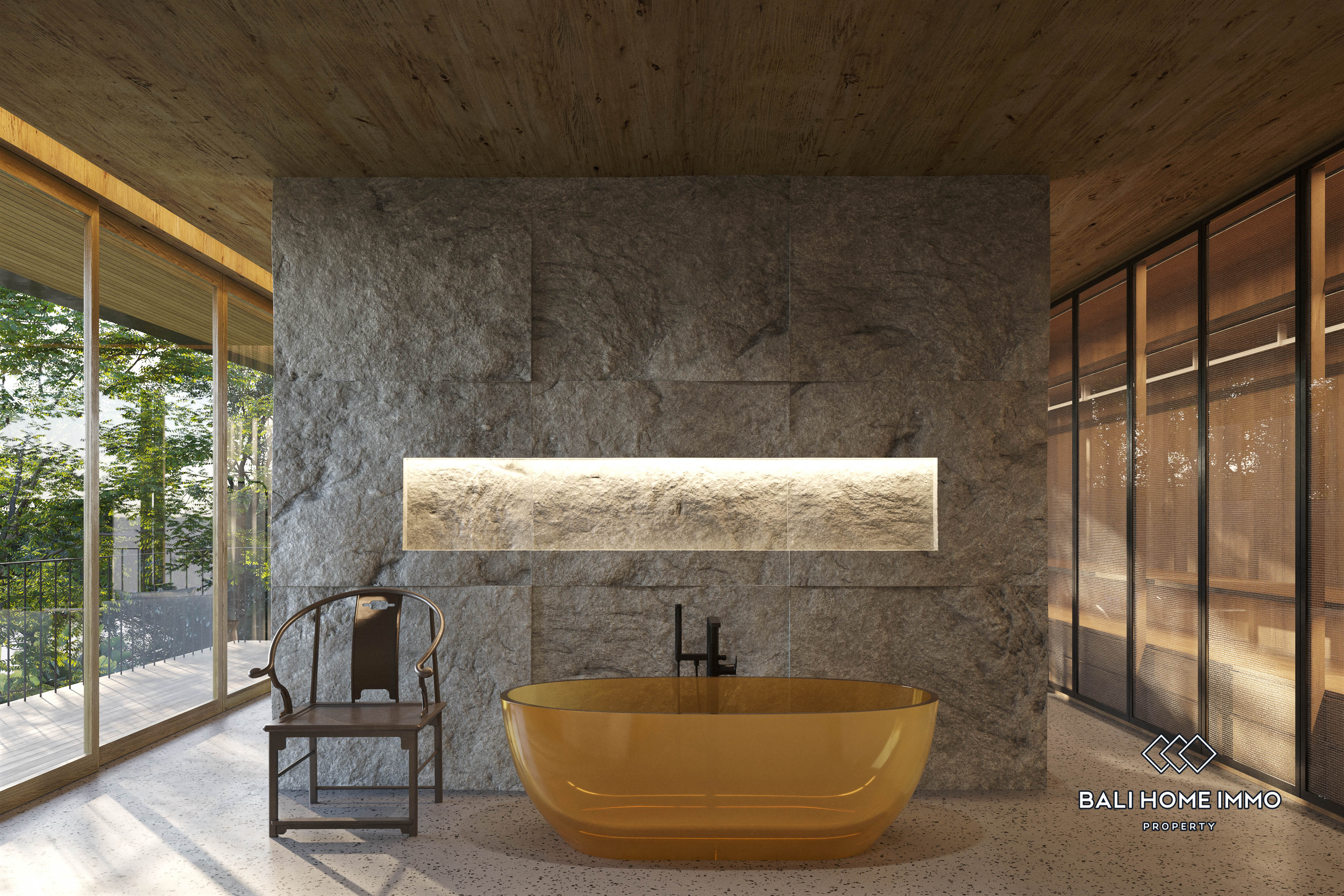 The property will span three-story with 5 bedrooms and 5 en-suites. The rustic design provides an ambiance that blends seamlessly with the surrounding nature, yet it will still be fully equipped with modern convenience. The lush green backyard overlooking the river will also provide ample space for the 18 x 3.5 m private pool and landscaped garden. The bold curved design and generous high-ceiling window arrangement will ensure an excellent view of the serene temple and flowing river from most areas of the villa. The magnificent villa will be further supported with a private parking space, gym studio, home office, laundry room, staff quarters, and storage room.