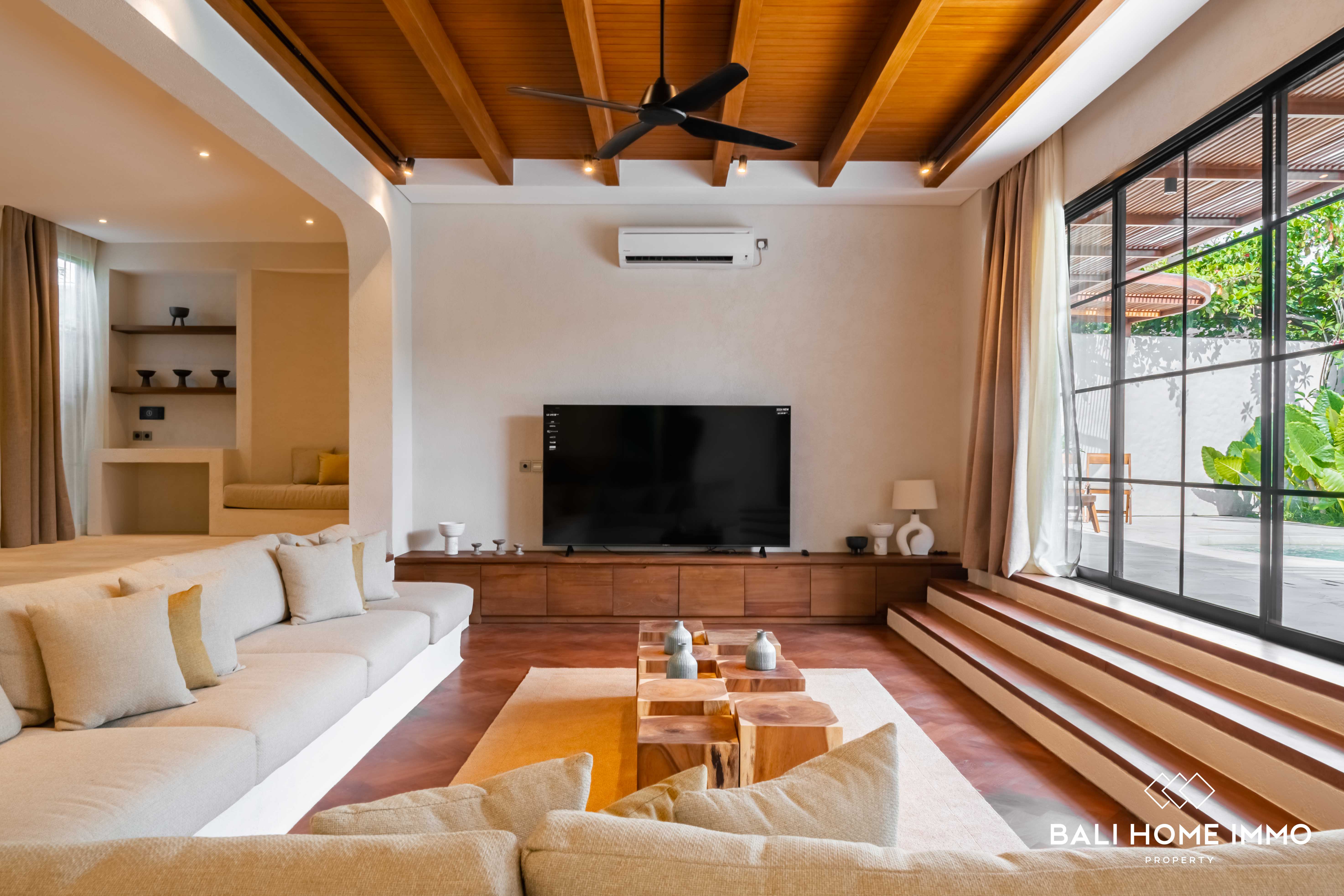 Located inside an exclusive community serviced with 24/7 security, reception, as well as cleaning and maintenance staff for common facilities, merely steps away from Canggu Community School and Finns Recreation Club. Tenants also enjoy free VIP access to Finns during their stay, which includes access to beach club, bowling alley, indoor trampoline park, fitness center, water park, tennis court, spa, co-working space, and many other exclusive perks.