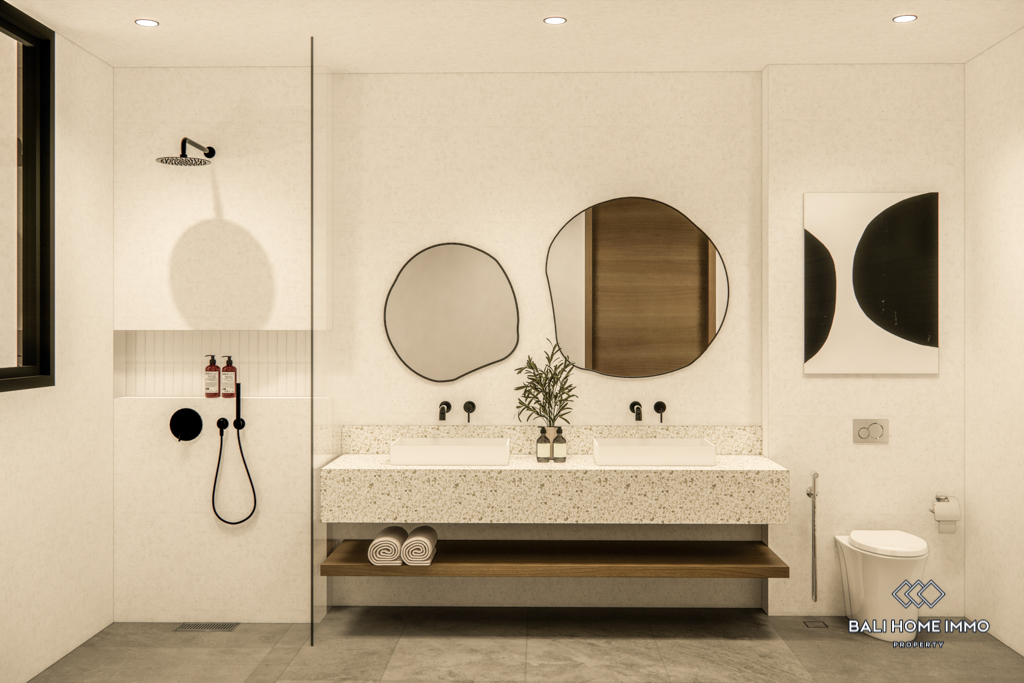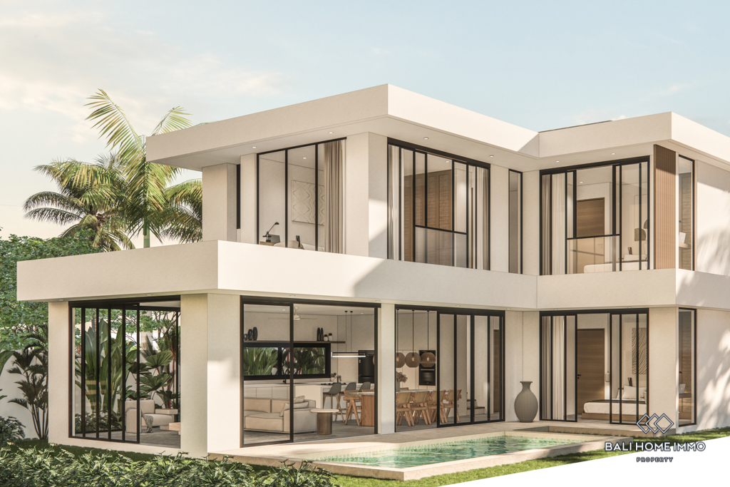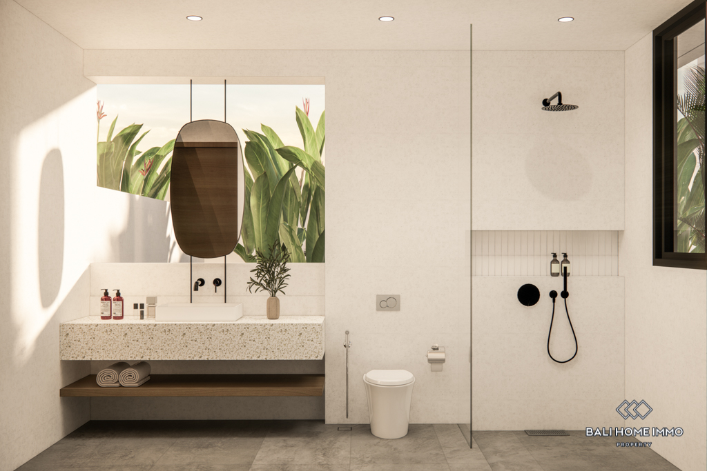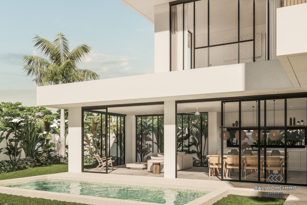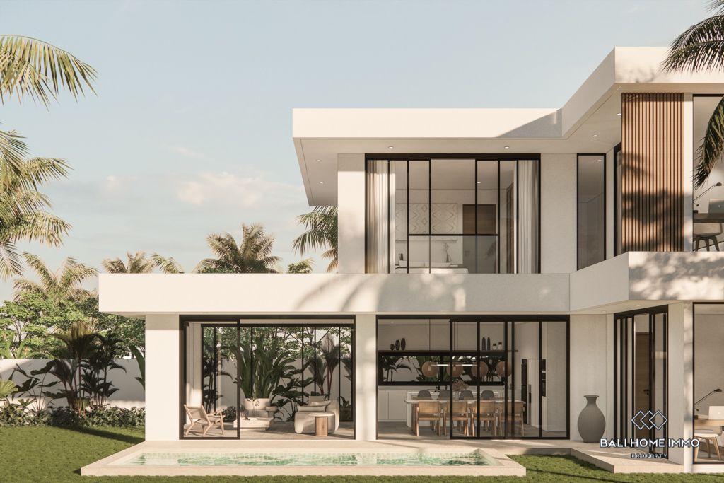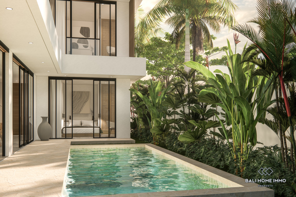 For sale under leasehold, this off-plan gem in the heart of Canggu's residential area promises a modern haven. Positioned just a 10-minute drive from the nearest beach, this two-story residence offers a blend of accessibility and convenience.