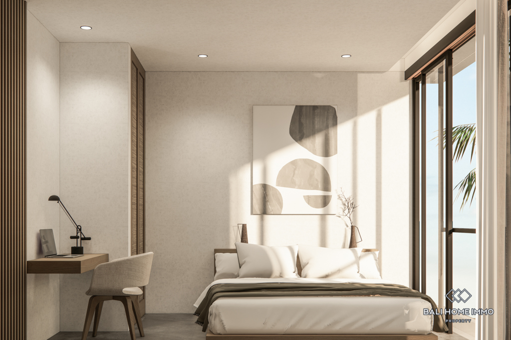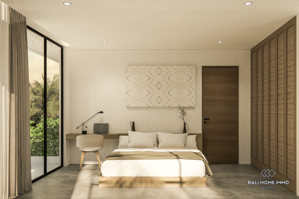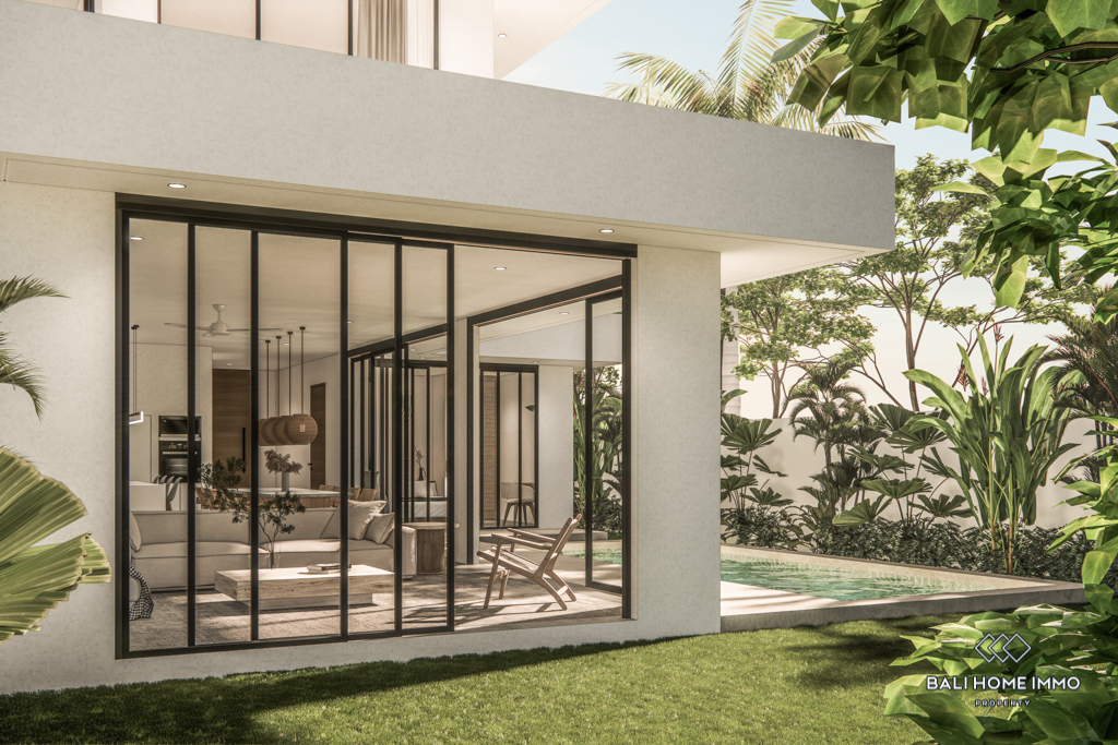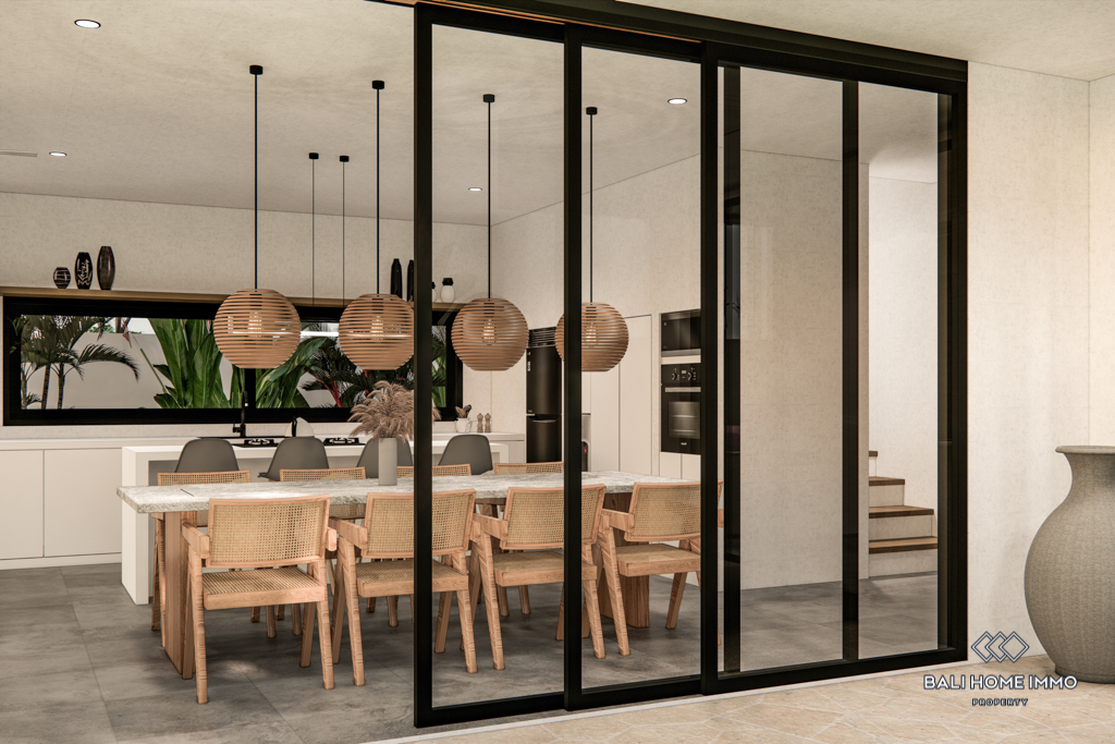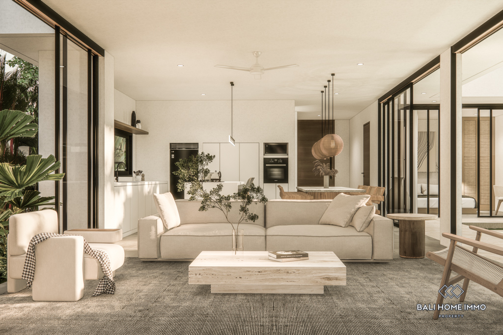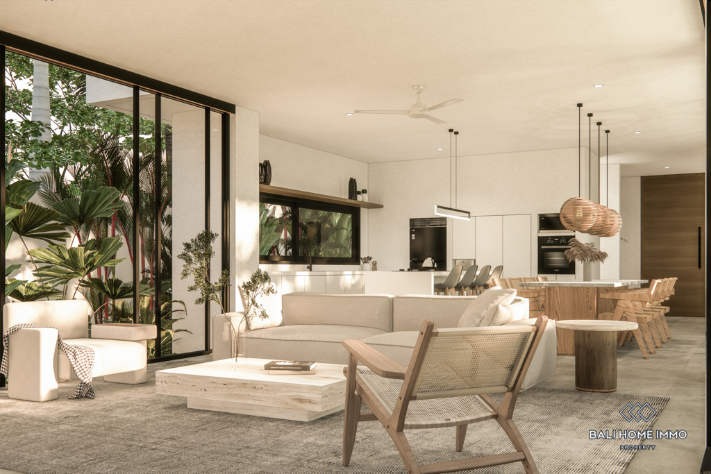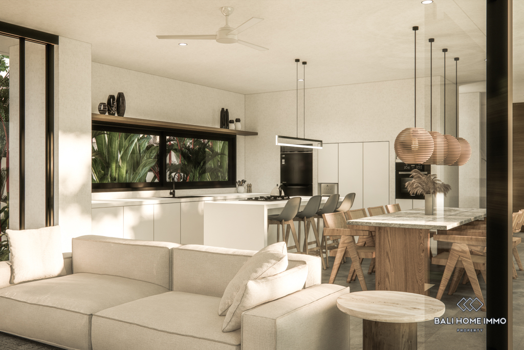 For sale under leasehold, this off-plan gem in the heart of Canggu's residential area promises a modern haven. Positioned just a 10-minute drive from the nearest beach, this two-story residence offers a blend of accessibility and convenience.