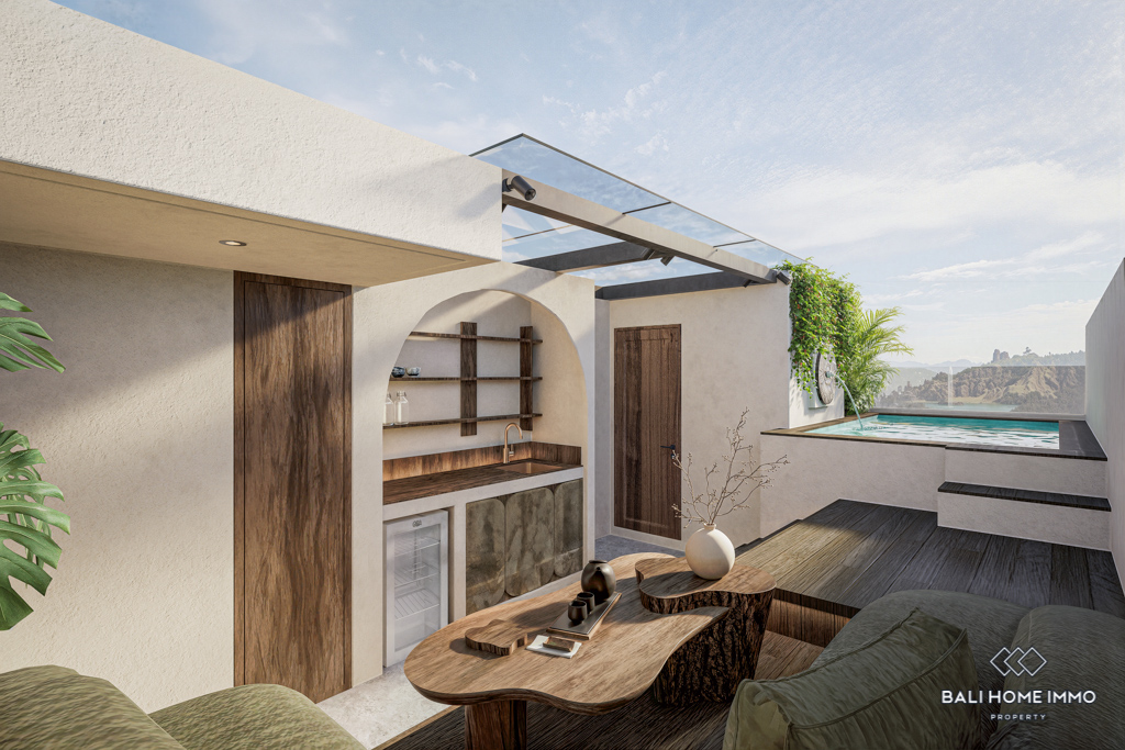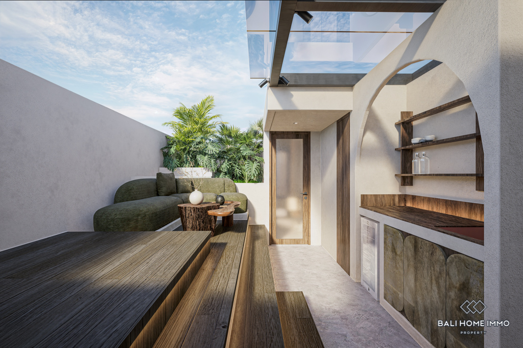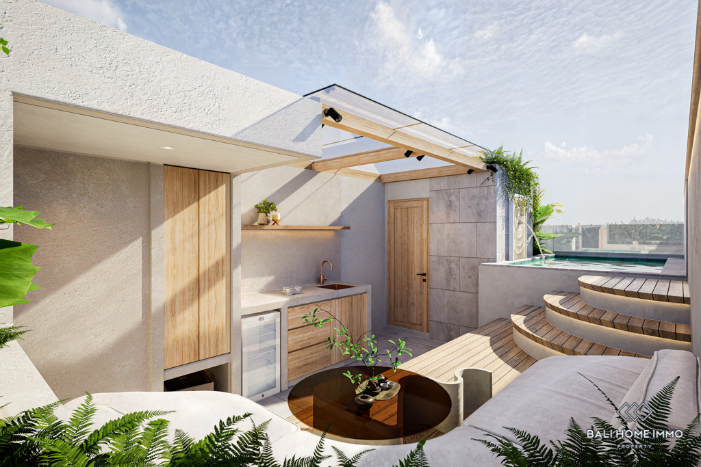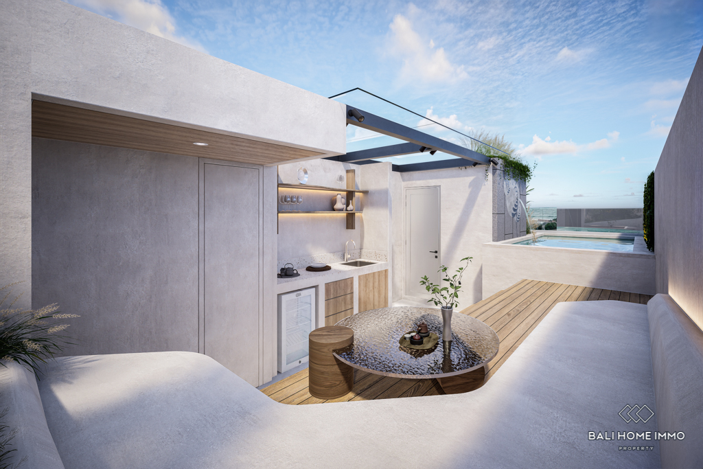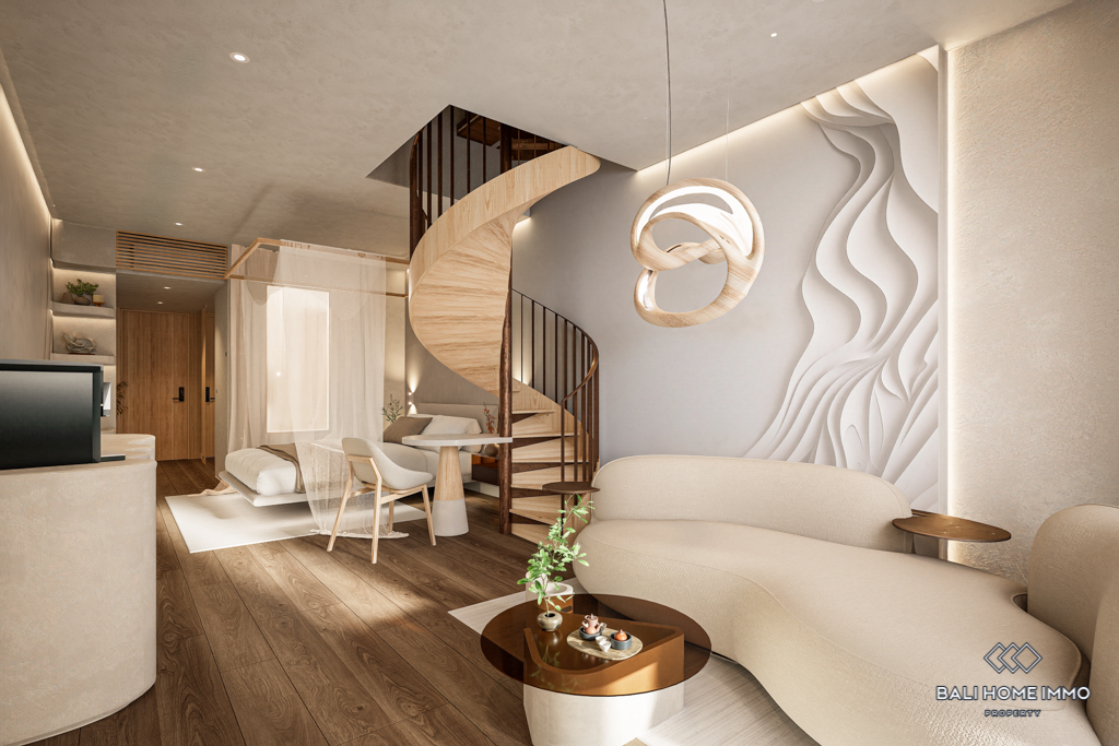 This off-plan 1 bedroom apartment in the heart of Canggu, Batubolong/Echo Beach, presents a rare opportunity to secure a modern home in one of Baliโs most desirable areas. Currently under construction, the project promises high quality finishes with enclosed living and kitchen areas designed for comfort and style. Each unit is fully furnished, featuring a spacious bedroom with ensuite bathroom, providing both privacy and convenience. The clean lines and contemporary design make these apartments ideal for both personal living and investment.