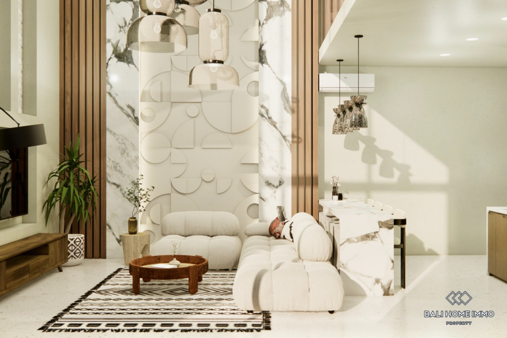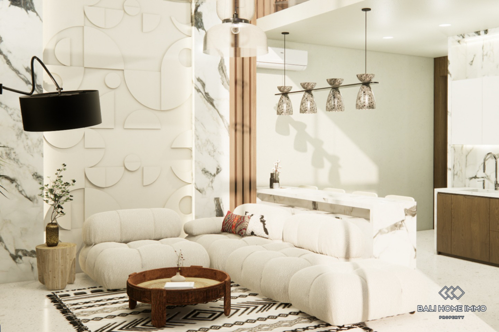 This elegant two-bedroom off-plan villa is a modern two-level residence currently under construction, thoughtfully designed to offer both style and comfort. Featuring an enclosed living and kitchen area, the villa provides a seamless indoor living experience with a clean, contemporary design and high-quality finishes throughout. Both bedrooms are generously sized, each offering privacy and comfort ideal for a couple, small family, or those seeking a functional yet stylish Bali retreat. The villa will come fully furnished, making it a hassle-free, move-in-ready investment.