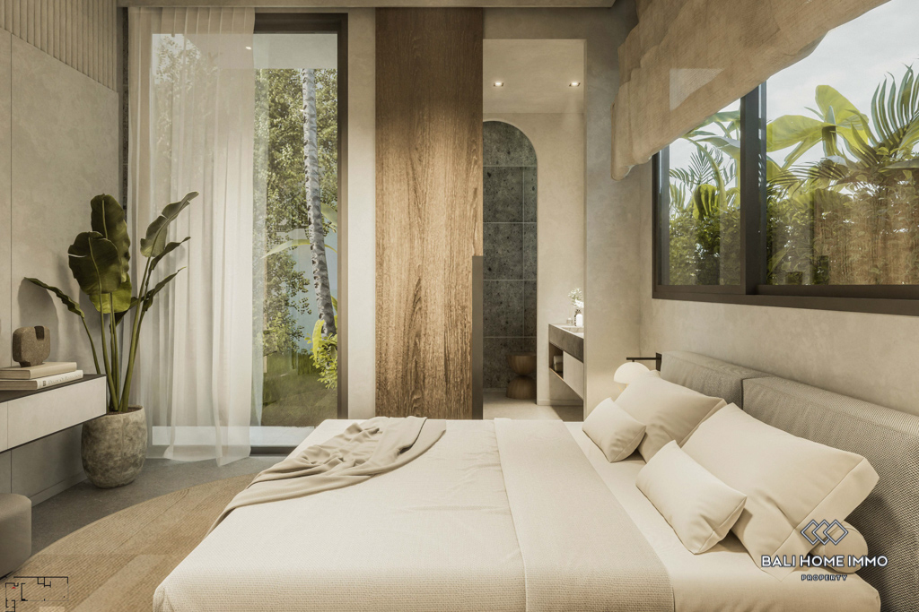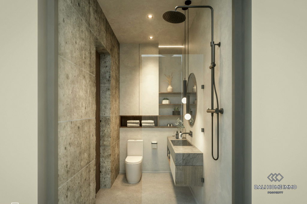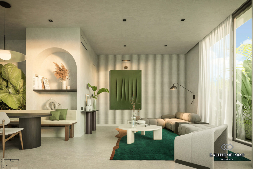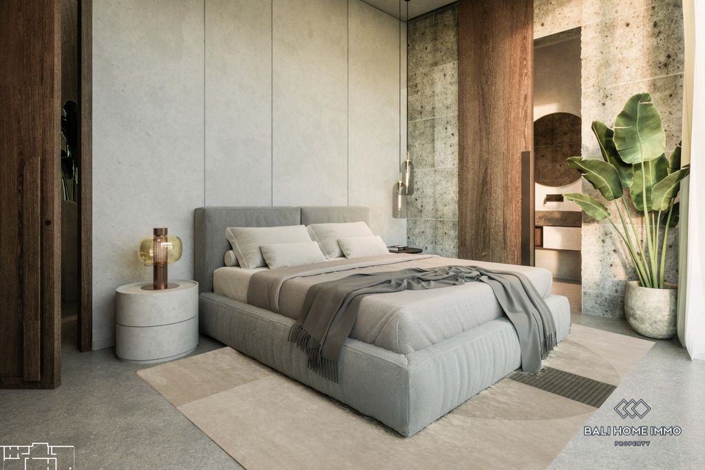This off-plan property, estimated to be completed in December 2024, is a contemporary gem located on the residential side of Canggu. Offering a harmonious blend of modern design and functionality, it is strategically positioned with a 5-minute drive to local amenities and a mere 10-minute drive from the nearest beach.