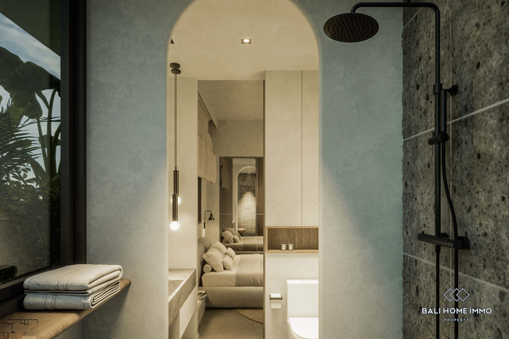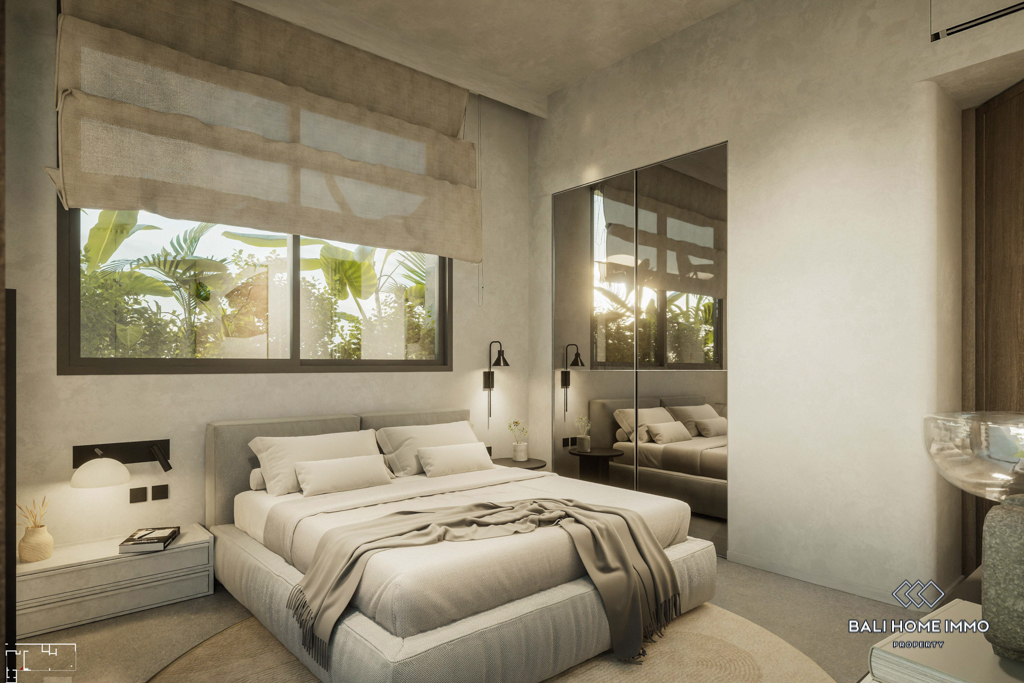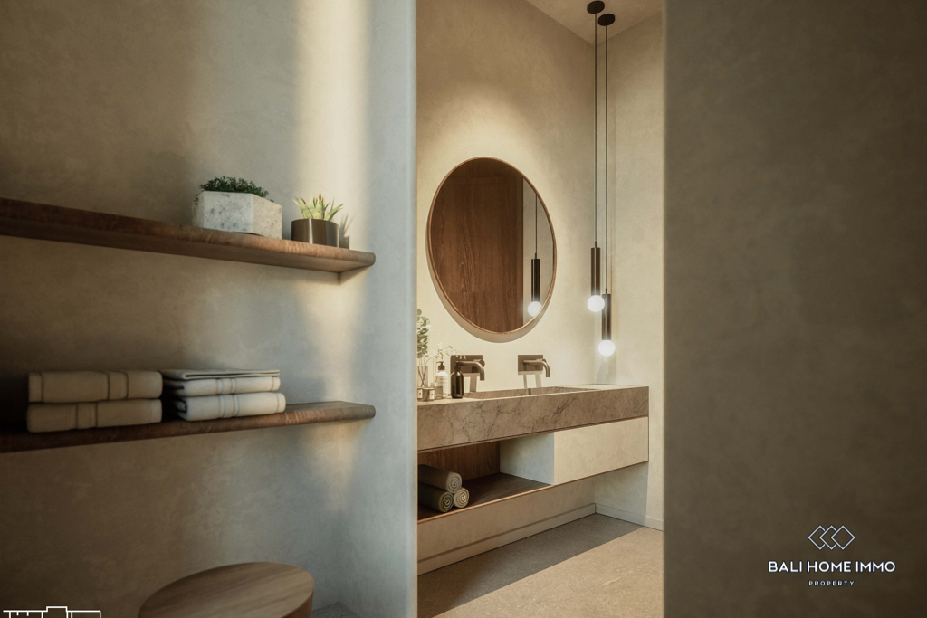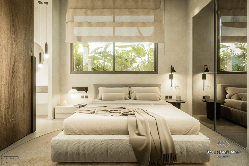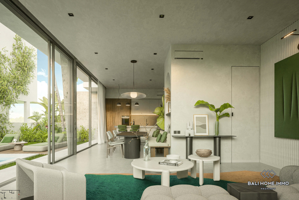 This off-plan property, estimated to be completed in December 2024, is a contemporary gem located on the residential side of Canggu. Offering a harmonious blend of modern design and functionality, it is strategically positioned with a 5-minute drive to local amenities and a mere 10-minute drive from the nearest beach.