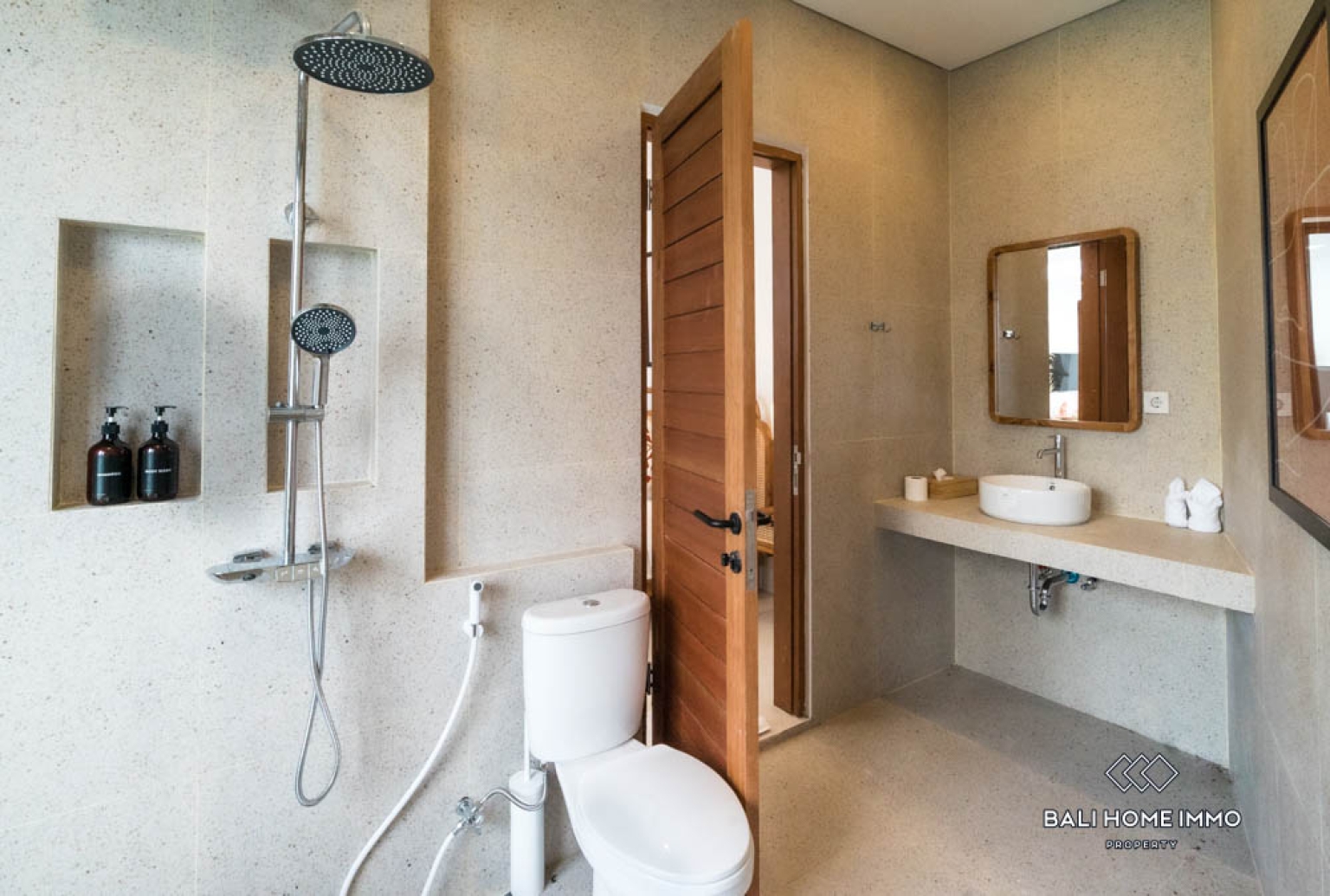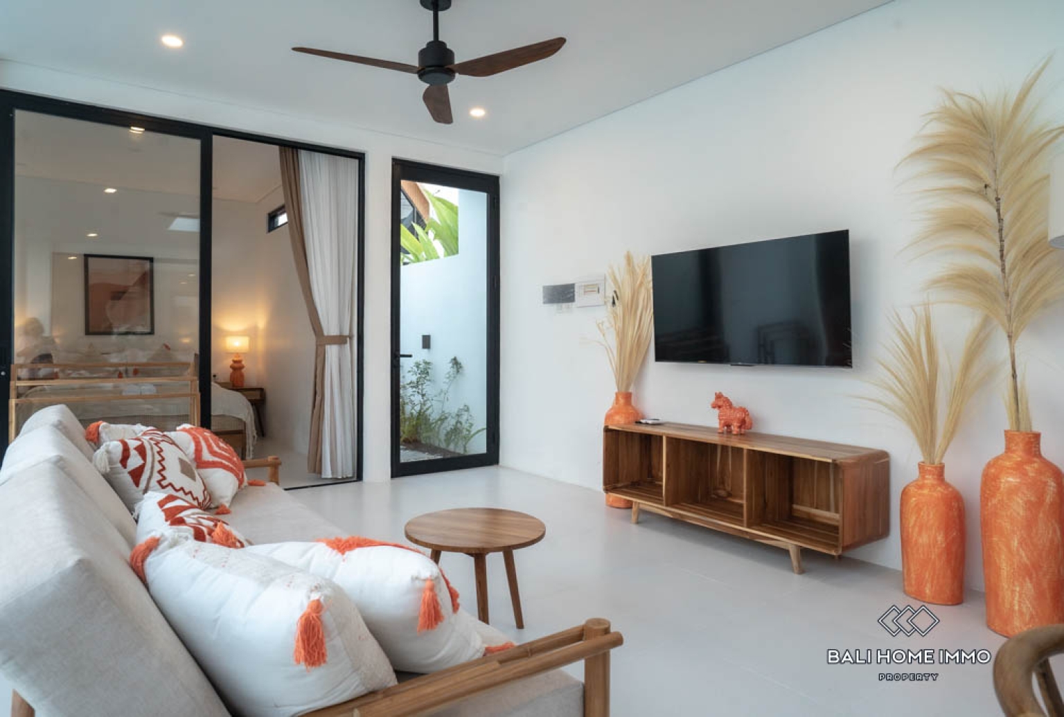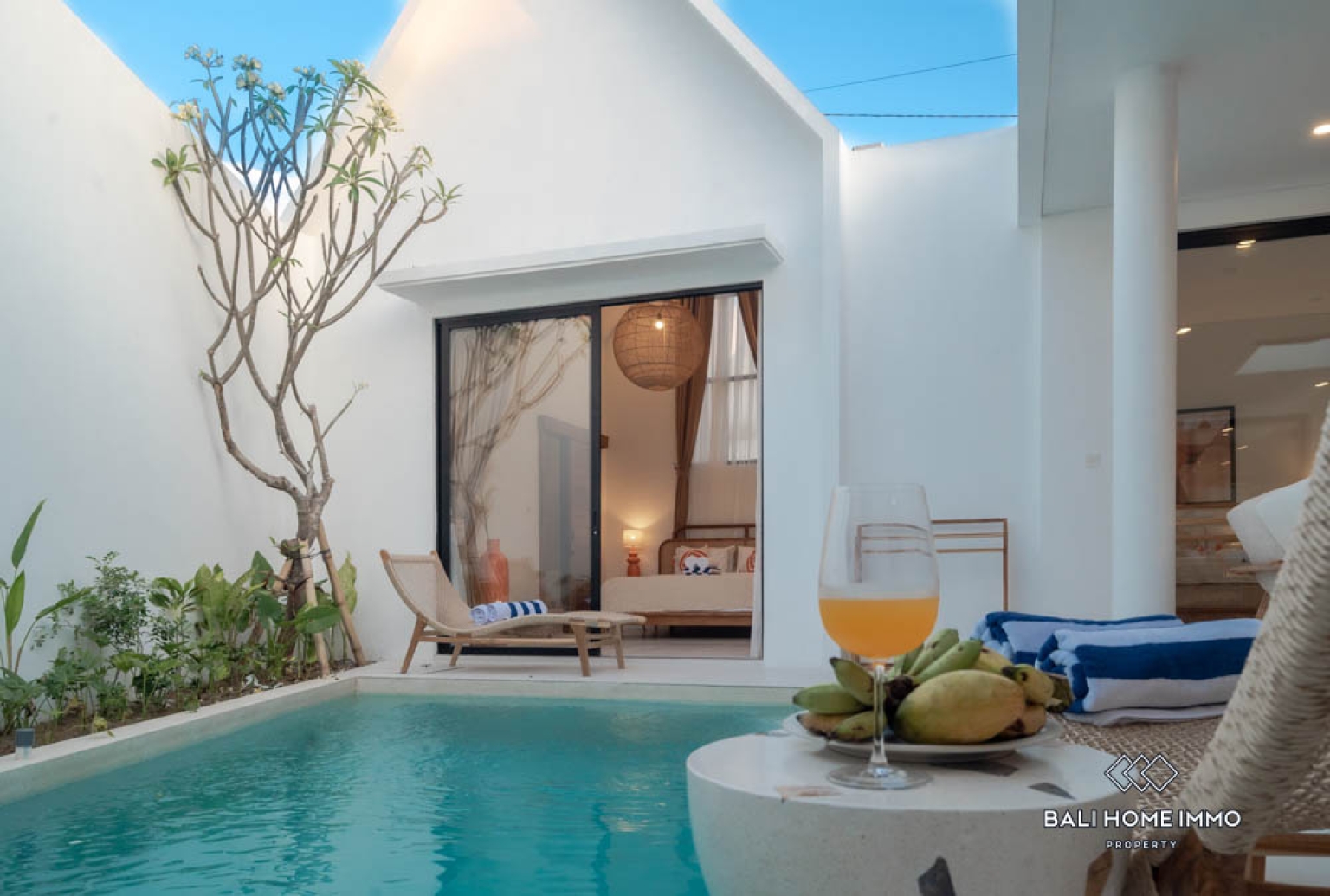 The villa features two well-appointed bedrooms, each designed with contemporary furnishings and soothing color palettes that promote relaxation. Both bathrooms are sleek and modern, reflecting a clean and refreshing design. The open kitchen is fully equipped and complemented by wooden finishes that enhance the homeโs tropical-modern charm. With two air-conditioning units installed, residents can enjoy cool comfort in every room. The open living and dining area provides a stylish setting for entertaining or relaxing, perfectly suited for Baliโs indoor-outdoor lifestyle.