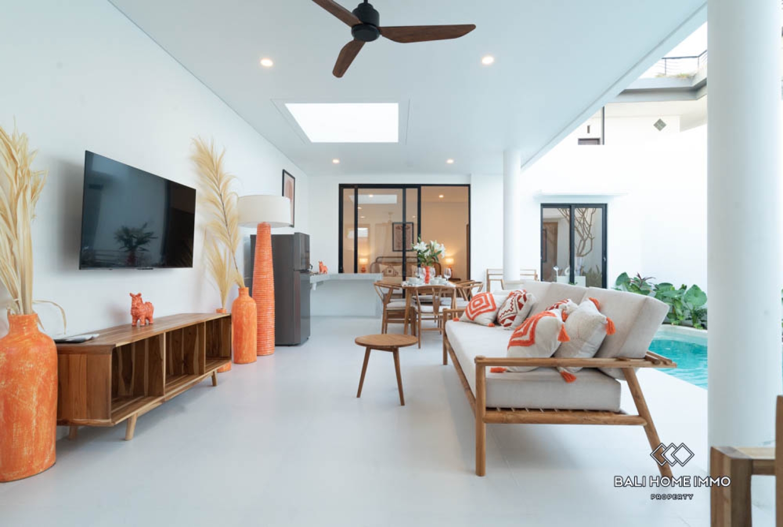 Located in the sought-after area of Kerobokan, this brand-new 3-bedroom villa offers a perfect blend of modern comfort and tropical living. Thoughtfully designed with a bright and minimalist concept, it combines clean architectural lines with natural wood accents and warm tones that create a welcoming atmosphere. The open living area flows seamlessly into the dining space and kitchen, while large openings bring in natural light and a refreshing breeze throughout the day. Ideal for both personal living and investment, the villaโs layout ensures a perfect balance between comfort, functionality, and aesthetic appeal.