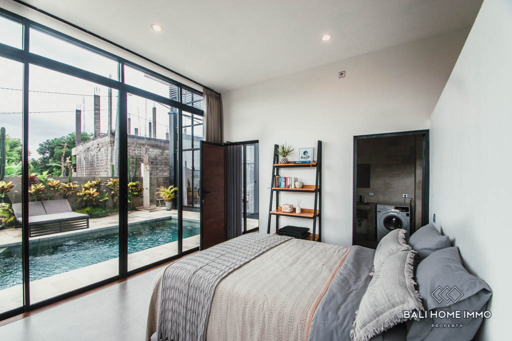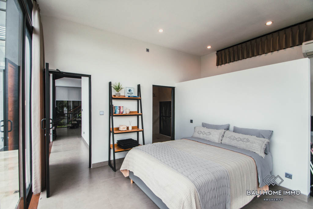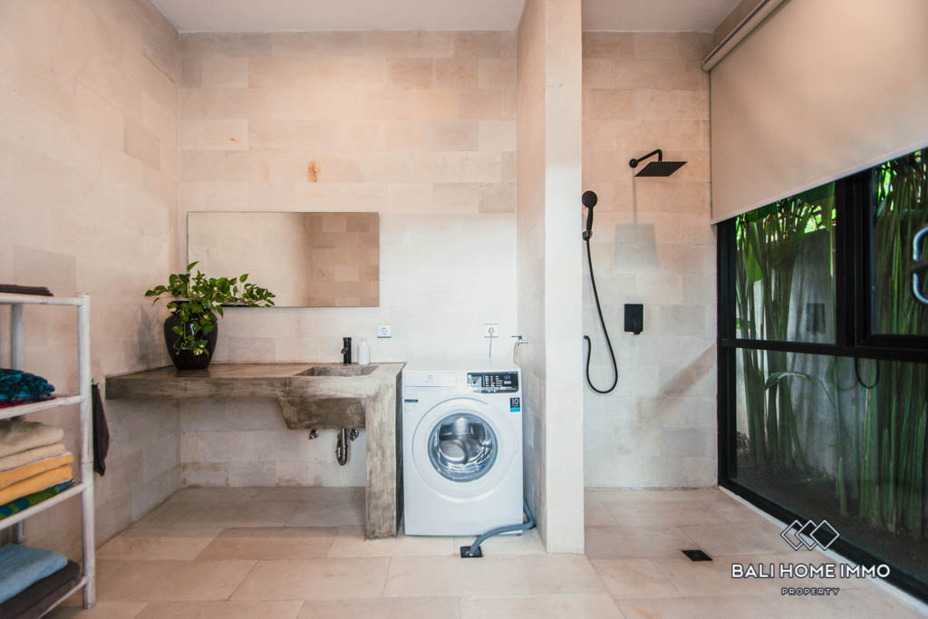 This elegant 2-story villa is tucked away in a residential neighborhood off of Pererenan’s main road, only minutes away from chic eateries such as Passo by Nook, Pescado, Monsieur Spoon, and many more. The location offers a great balance between quietness and accessibility as you can reach essential amenities as well as all of Canggu’s beach clubs and hagnouts in no time.