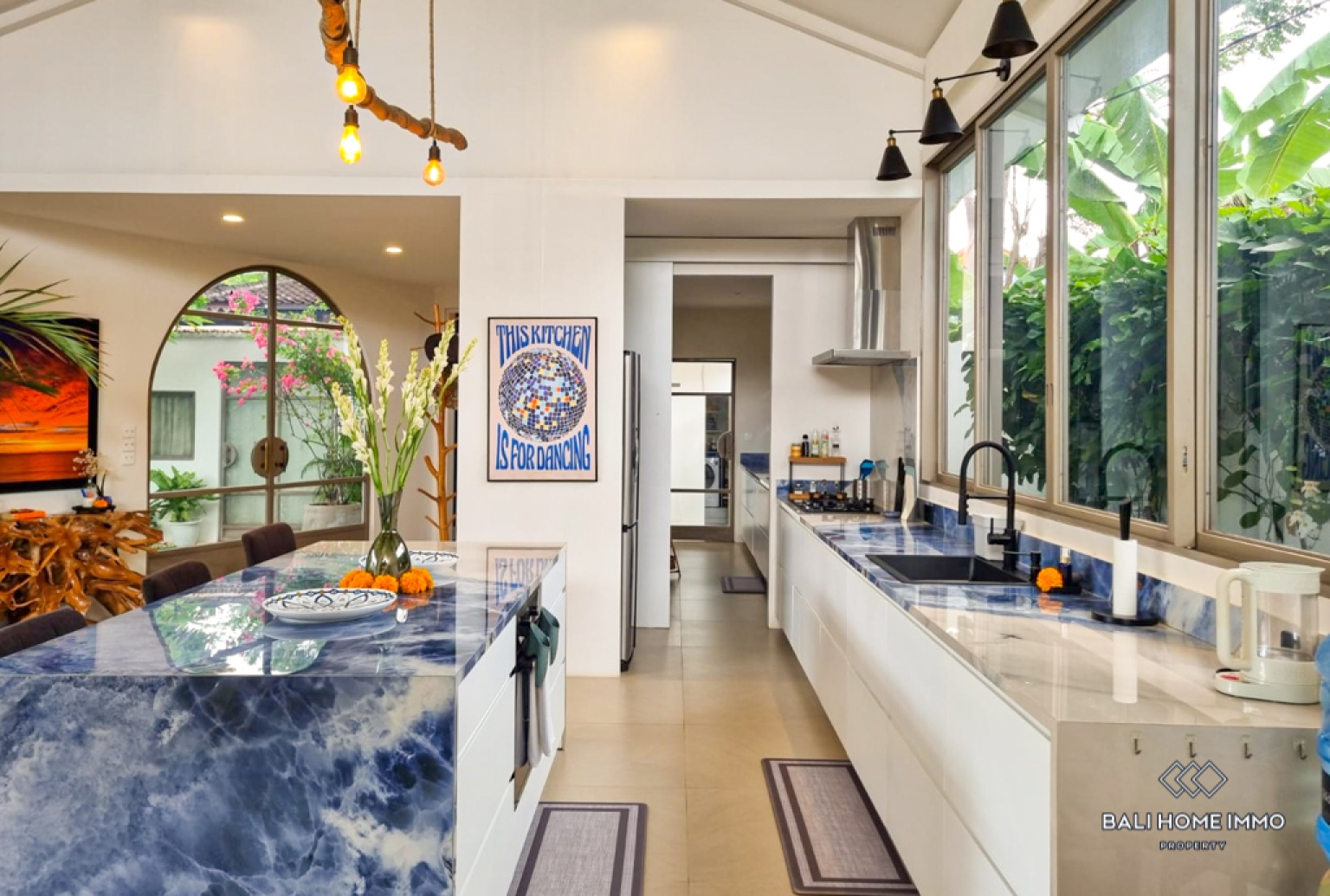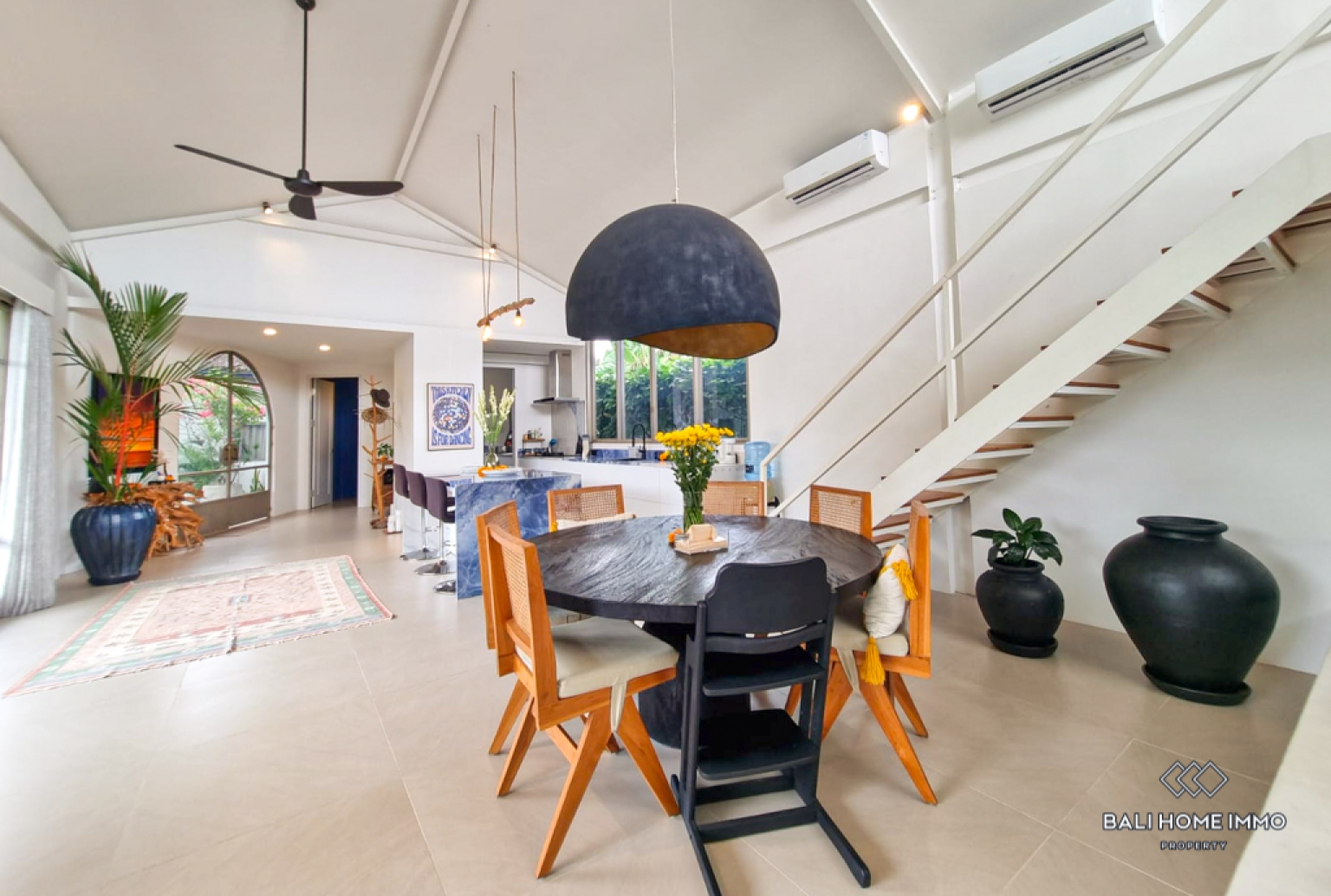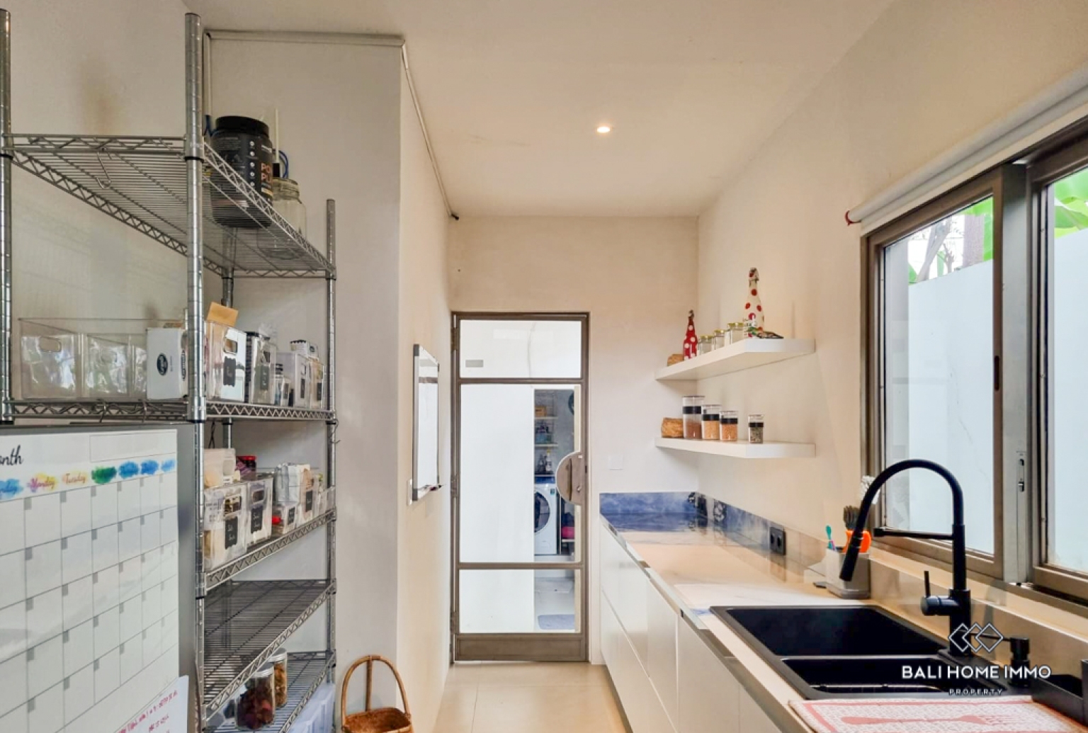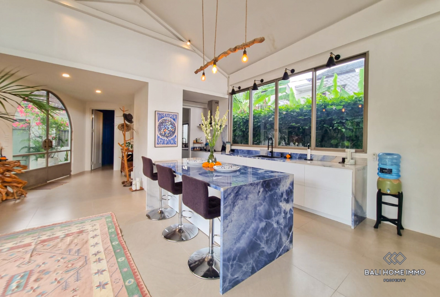 This stunning four-bedroom villa blends modern architectural lines with warm, expressive interior accents, creating a home that feels both sophisticated and uniquely personal. The enclosed living and kitchen area is designed for comfort and style, featuring a sunken lounge with a large TV, eye-catching dรฉcor, and rich textures that add depth to every corner. The space flows effortlessly into a well-appointed pantry and a dedicated laundry room equipped with a clothes dryer, a particularly valuable convenience during Baliโs long rainy season, ensuring comfort and ease in daily living. Three beautifully crafted bathrooms, including two luxurious ensuites, provide comfort and privacy, with two of them featuring relaxing bathtubs. A stylish guest toilet complements the layout, and a full whole-house water filtration system ensures clean, high-quality water throughout.