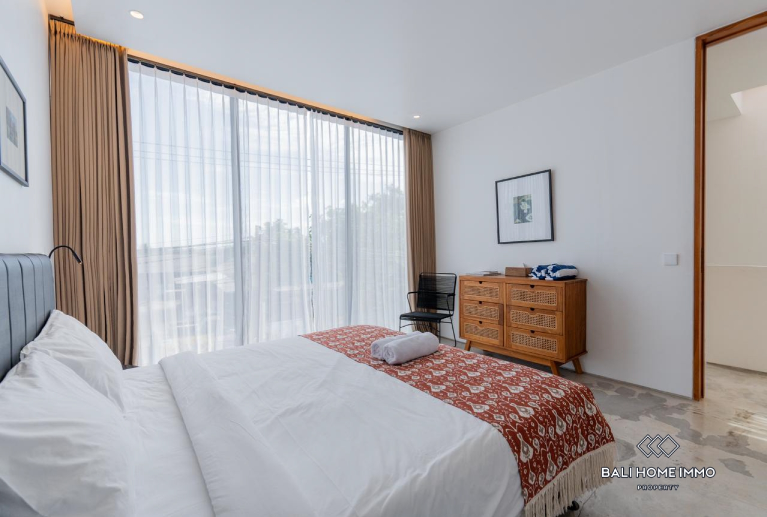 This modern 2-bedroom villa for sale in Pererenan is located in a quiet residential area, offering a comfortable and private living environment. Fully furnished and thoughtfully designed, the villa features an enclosed living area that provides year-round comfort and a well-defined indoor space. Both bedrooms are well-appointed with quality finishes, making the property ideal for a permanent residence or a low-maintenance investment.