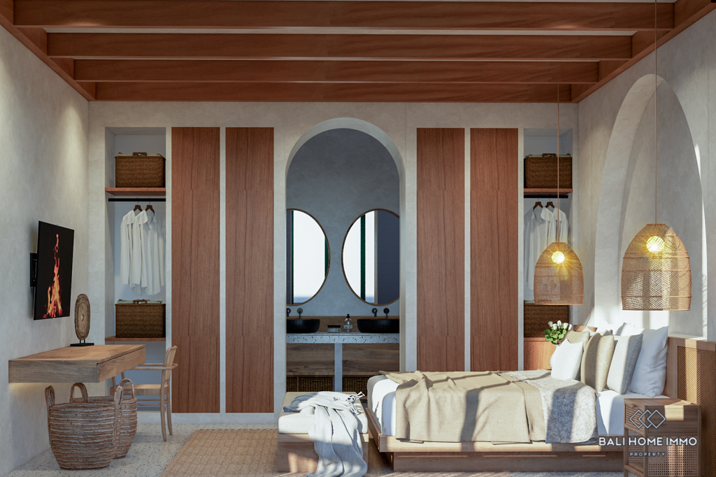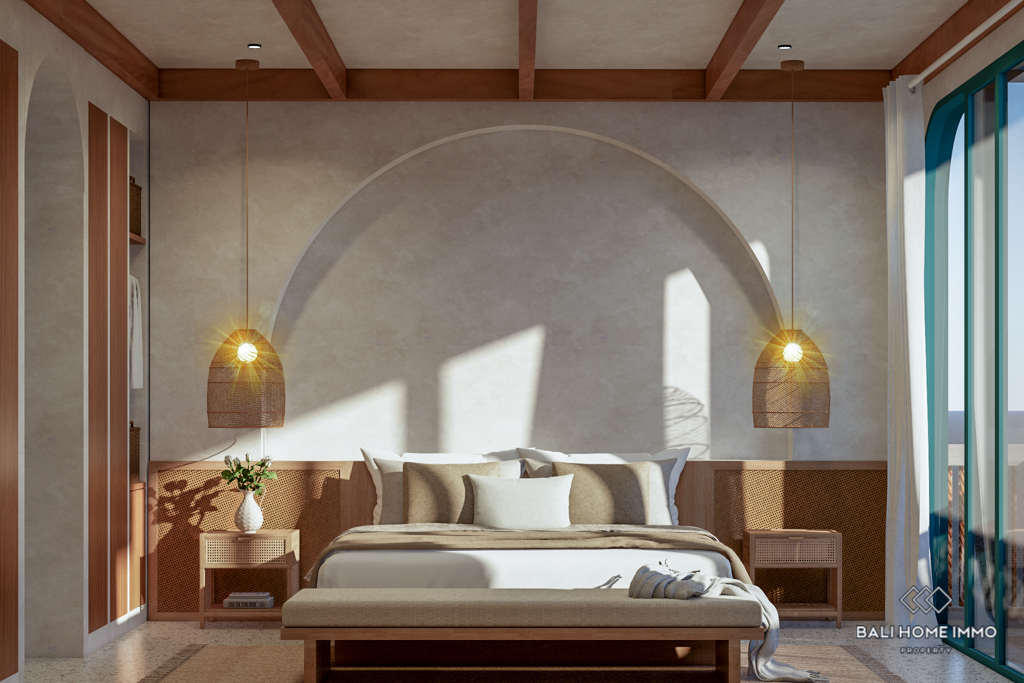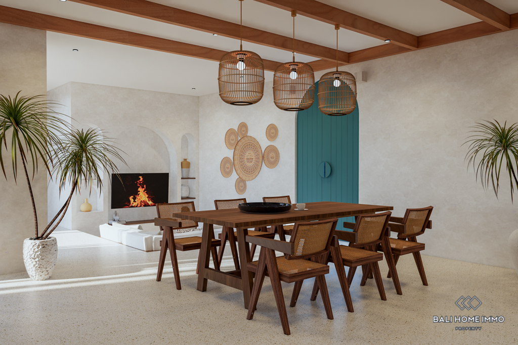 Nestled within a private villa complex influenced by Balinese spiritual culture, this off-plan property offers a unique blend of Mediterranean styling and modern, luxurious amenities. Boasting 259 square meters of living space on a 1,8-are plot of land, this villa is strategically located in a serene area of Tumbak Bayuh, Pererenan, just a 5-minute drive from Canggu and 10 minutes from the beach.