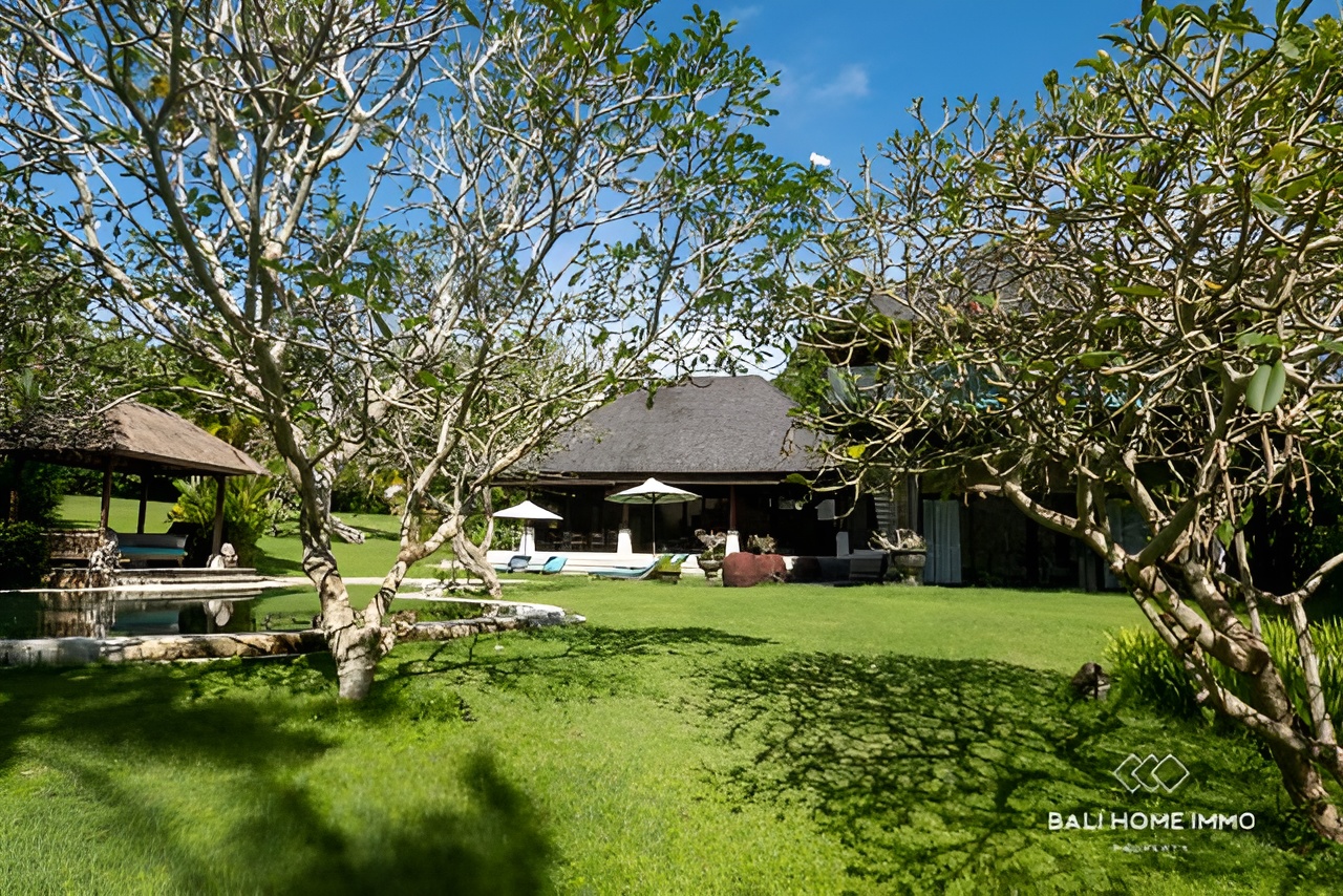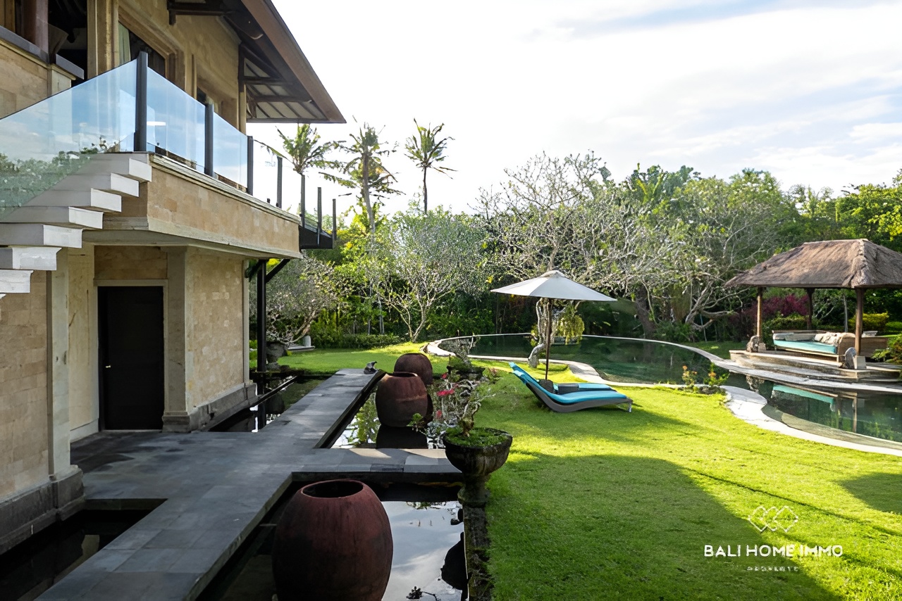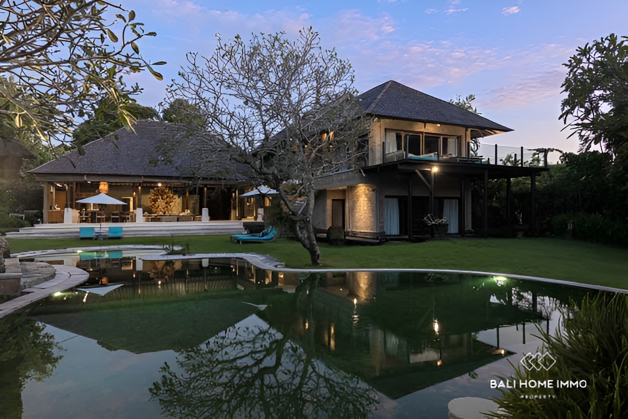 This luxurious leasehold villa, located in the sought-after area of Pererenan, Bali, offers a rare opportunity to live just 10 minutes’ walk from the iconic Pererenan Beach, a hub for surfers, beach lovers, and those seeking the perfect blend of modern living and tropical paradise. Situated on a generous 4500 sqm (45 Are) land, this exceptional villa spans 600 sqm (6,000 sq ft) and is set amidst lush, manicured gardens, providing ultimate privacy and tranquility. The villa offers a spacious and thoughtful layout with five beautifully designed bedrooms, each featuring en-suite bathrooms. The two expansive master bedrooms are located on the second floor, while the first floor hosts one master bedroom and two additional smaller bedrooms, perfect for family or guest accommodations.