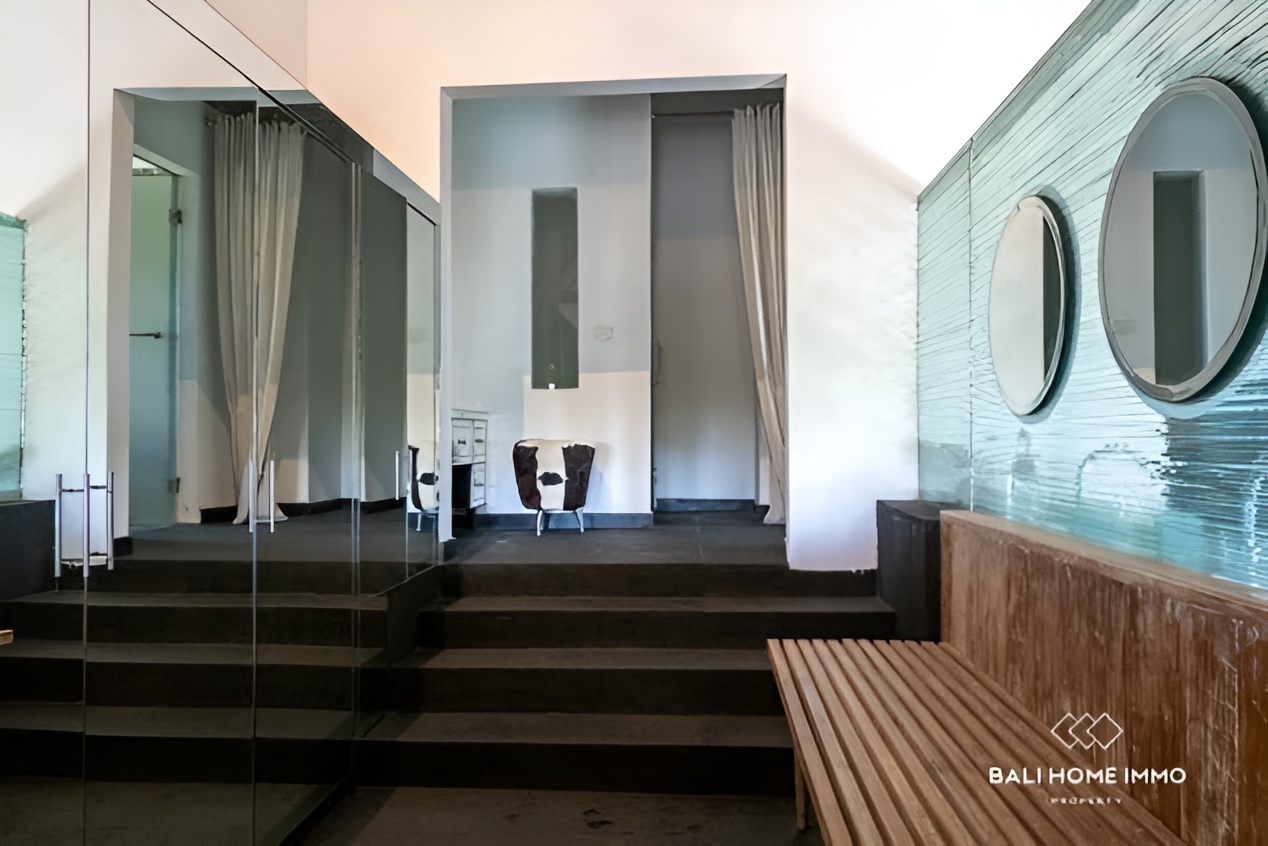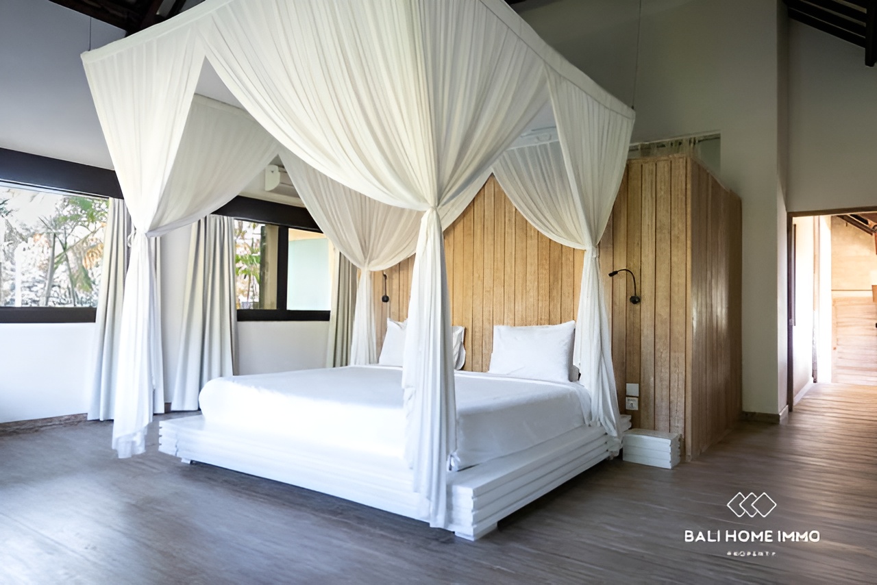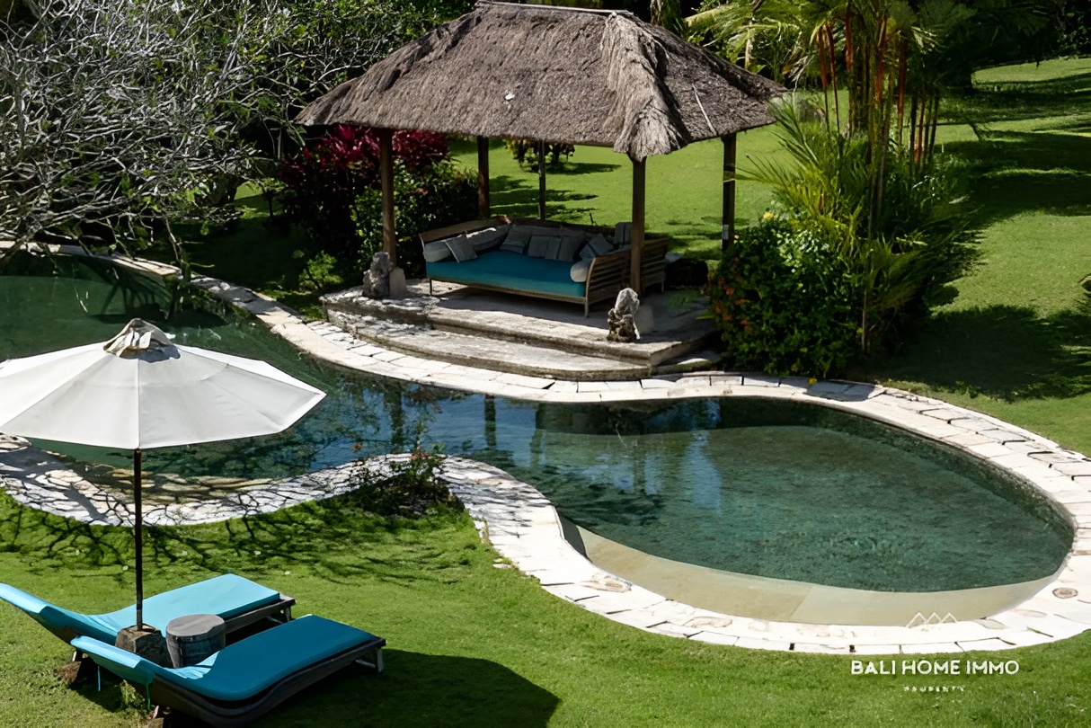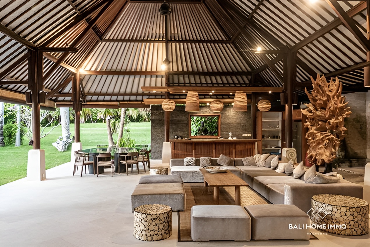 This luxurious leasehold villa, located in the sought-after area of Pererenan, Bali, offers a rare opportunity to live just 10 minutes’ walk from the iconic Pererenan Beach, a hub for surfers, beach lovers, and those seeking the perfect blend of modern living and tropical paradise. Situated on a generous 4500 sqm (45 Are) land, this exceptional villa spans 600 sqm (6,000 sq ft) and is set amidst lush, manicured gardens, providing ultimate privacy and tranquility. The villa offers a spacious and thoughtful layout with five beautifully designed bedrooms, each featuring en-suite bathrooms. The two expansive master bedrooms are located on the second floor, while the first floor hosts one master bedroom and two additional smaller bedrooms, perfect for family or guest accommodations.